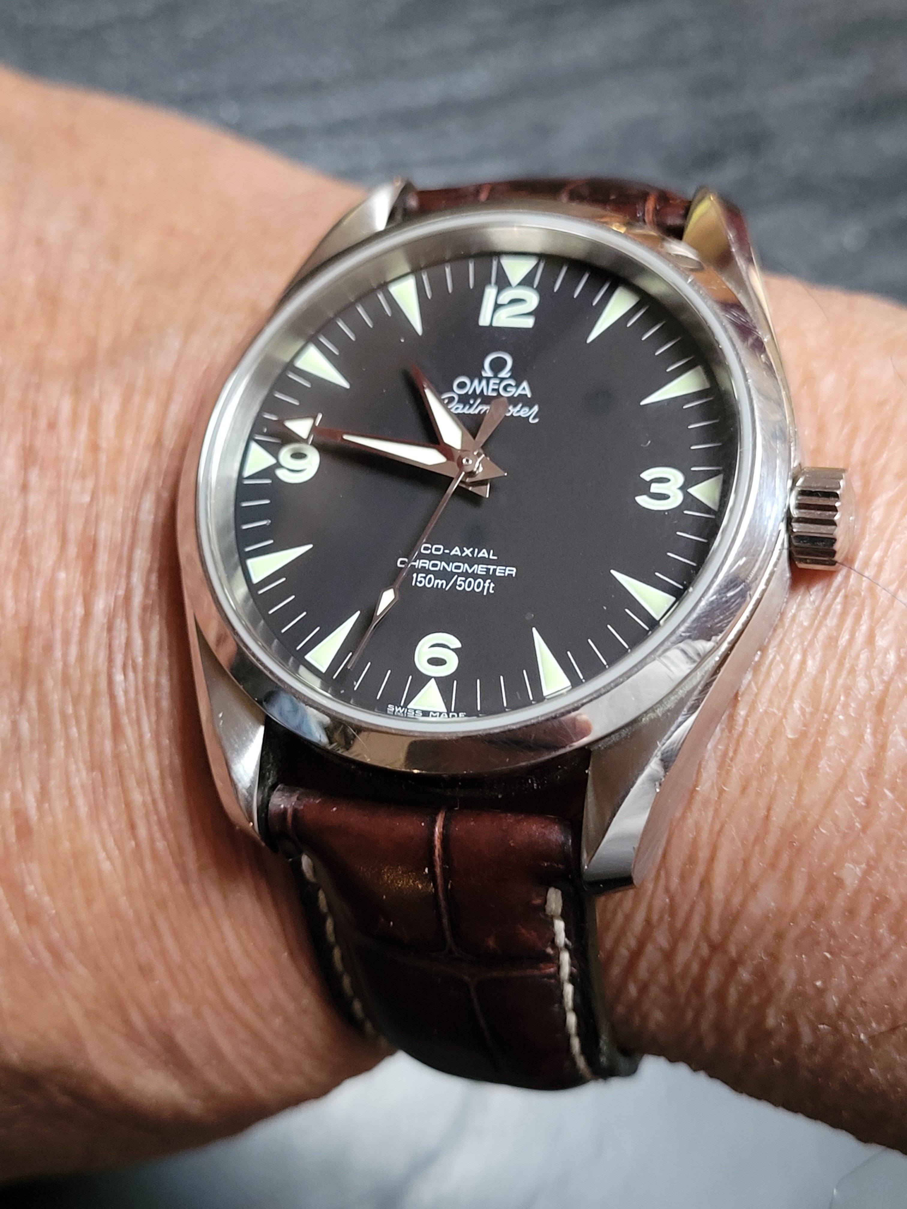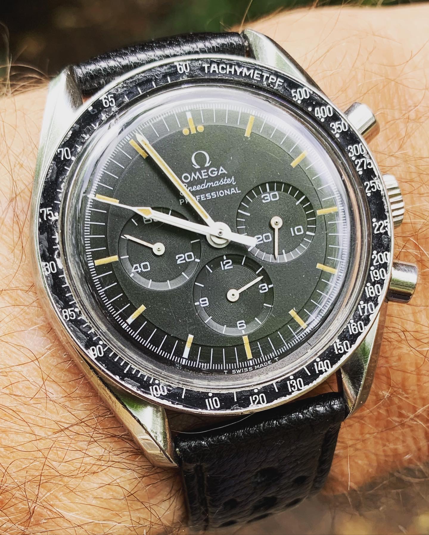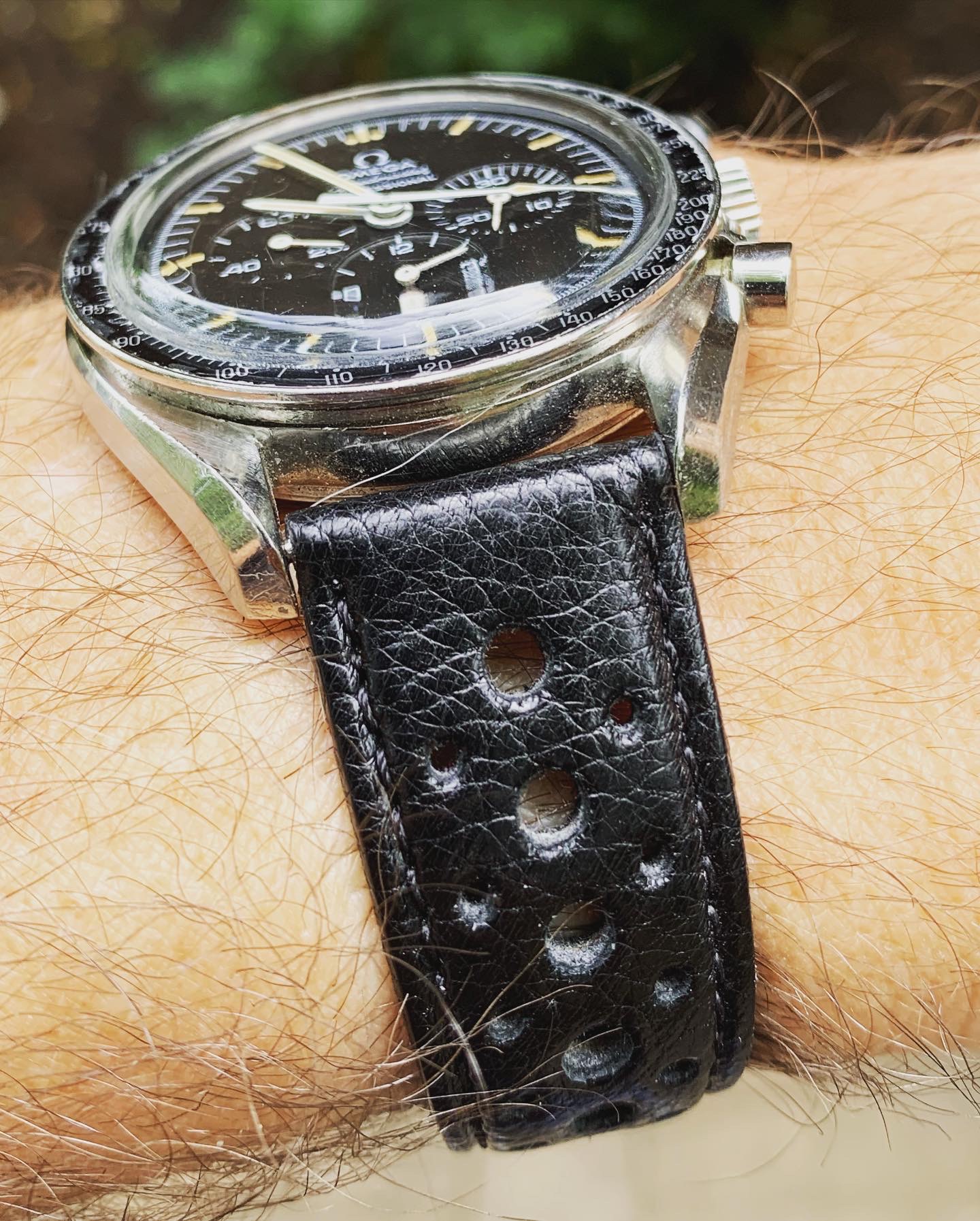 1969 Speedy going slightly brown now. Paired with my @ralstrastraps Driver in Nero Black Italian Lambskin. 20mm. Straps available at $99 (normally $149) for OF members. Message me for a discount code to use at www.rallystraps.com.