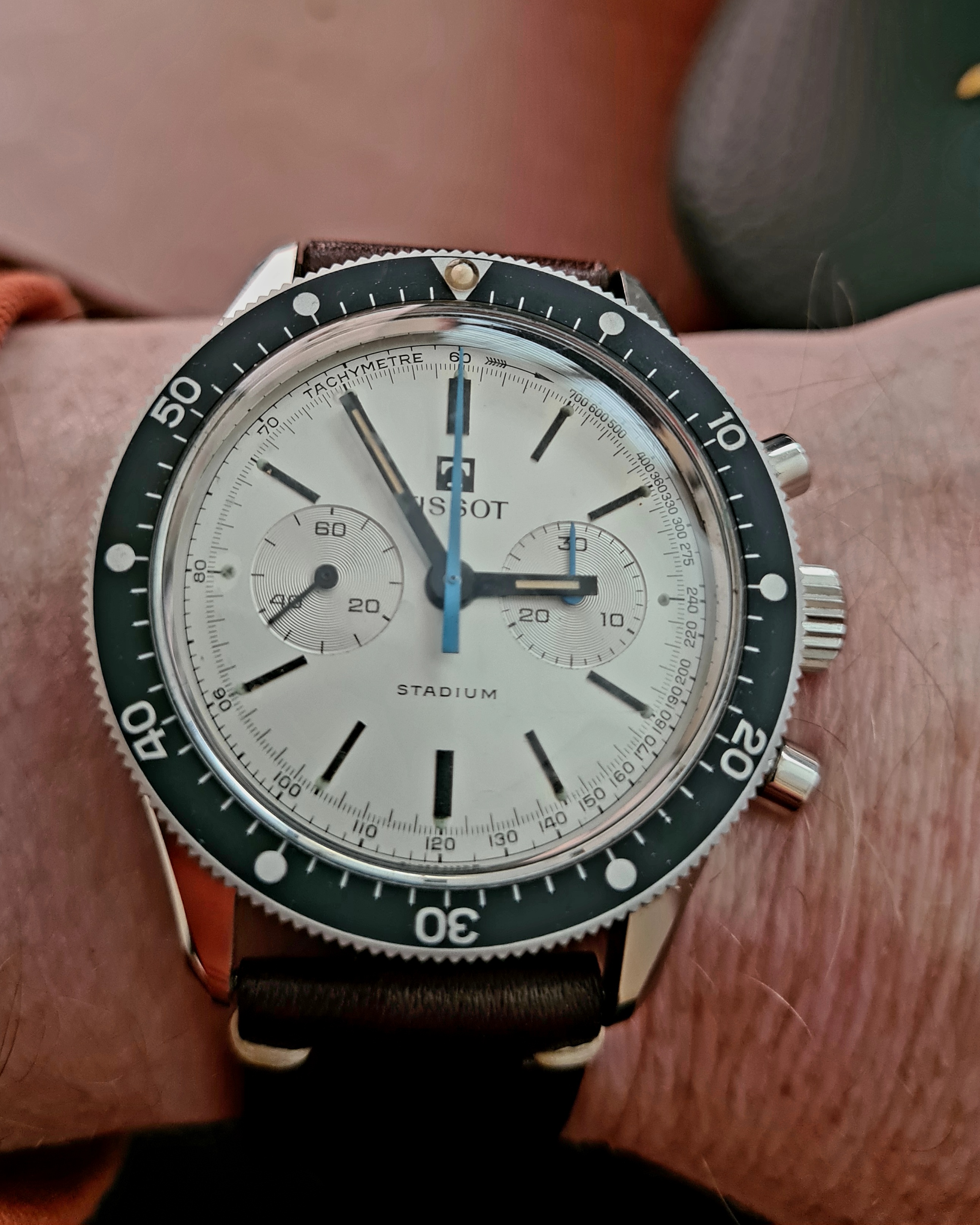 Posts 9,565 Likes 52,919 gbesq ·May 25, 2023 Good morning all. 1961 Omega Seamaster 14761 with a curtain dial catching first light. Former eBay project watch, now fully restored. 😀 Edited: May 25, 2023