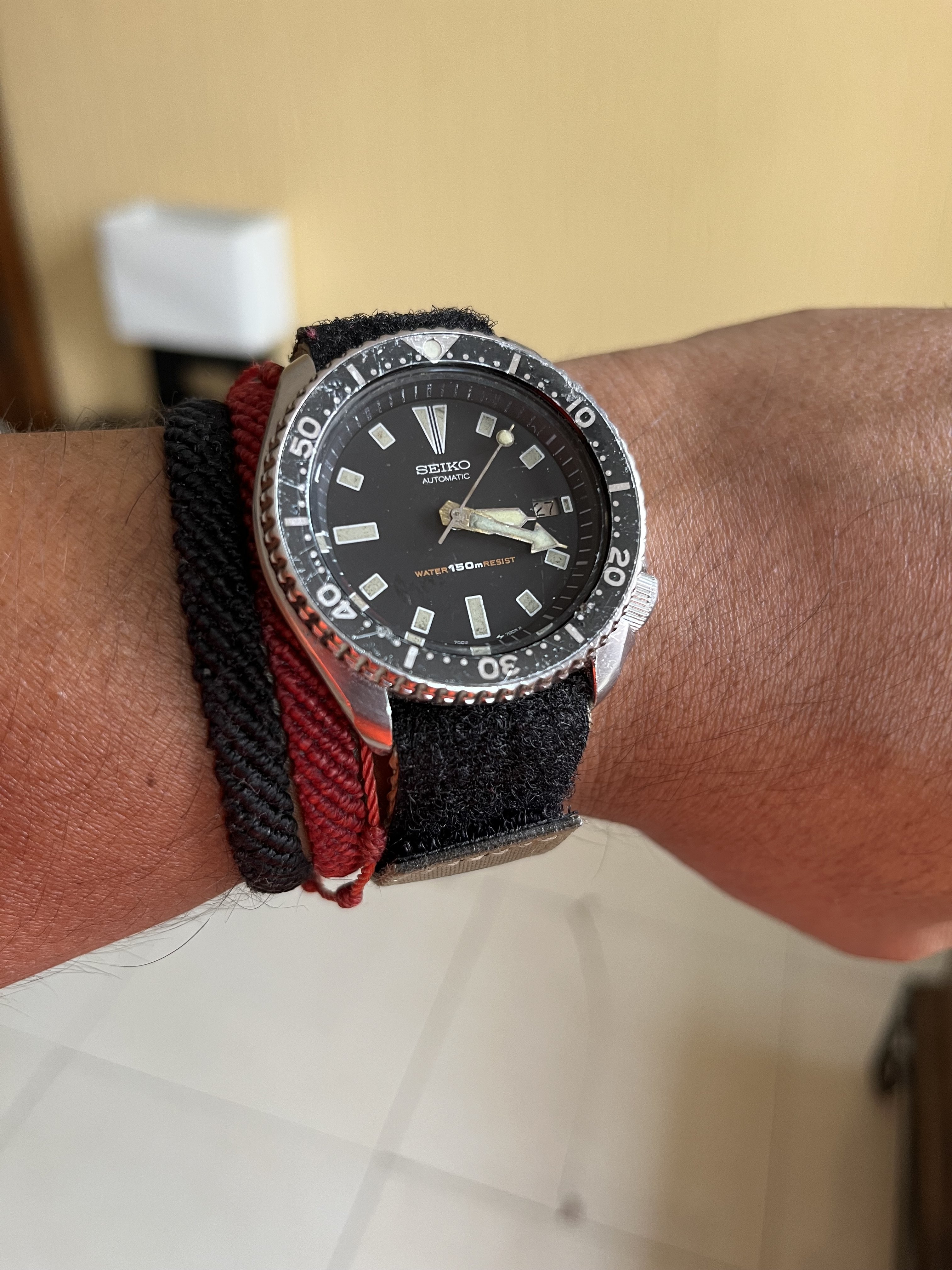 Had to slip into something less comfortable to do some concrete work. I broke a couple seiko bracelets I think I have a leather replacement on the way for one. I should probably go back to my Vostok for the tough jobs I like these seikos too much to abuse them like I have been