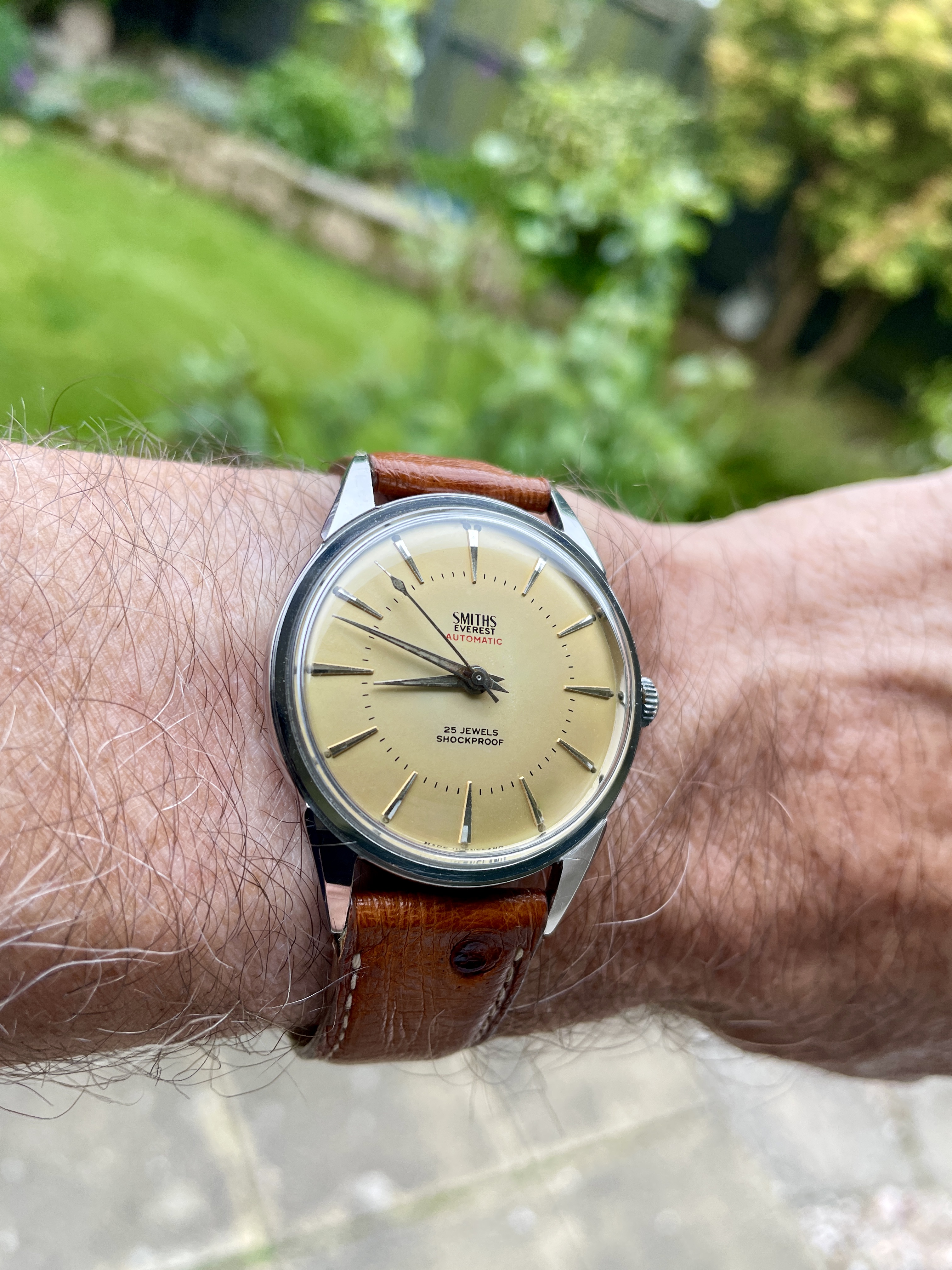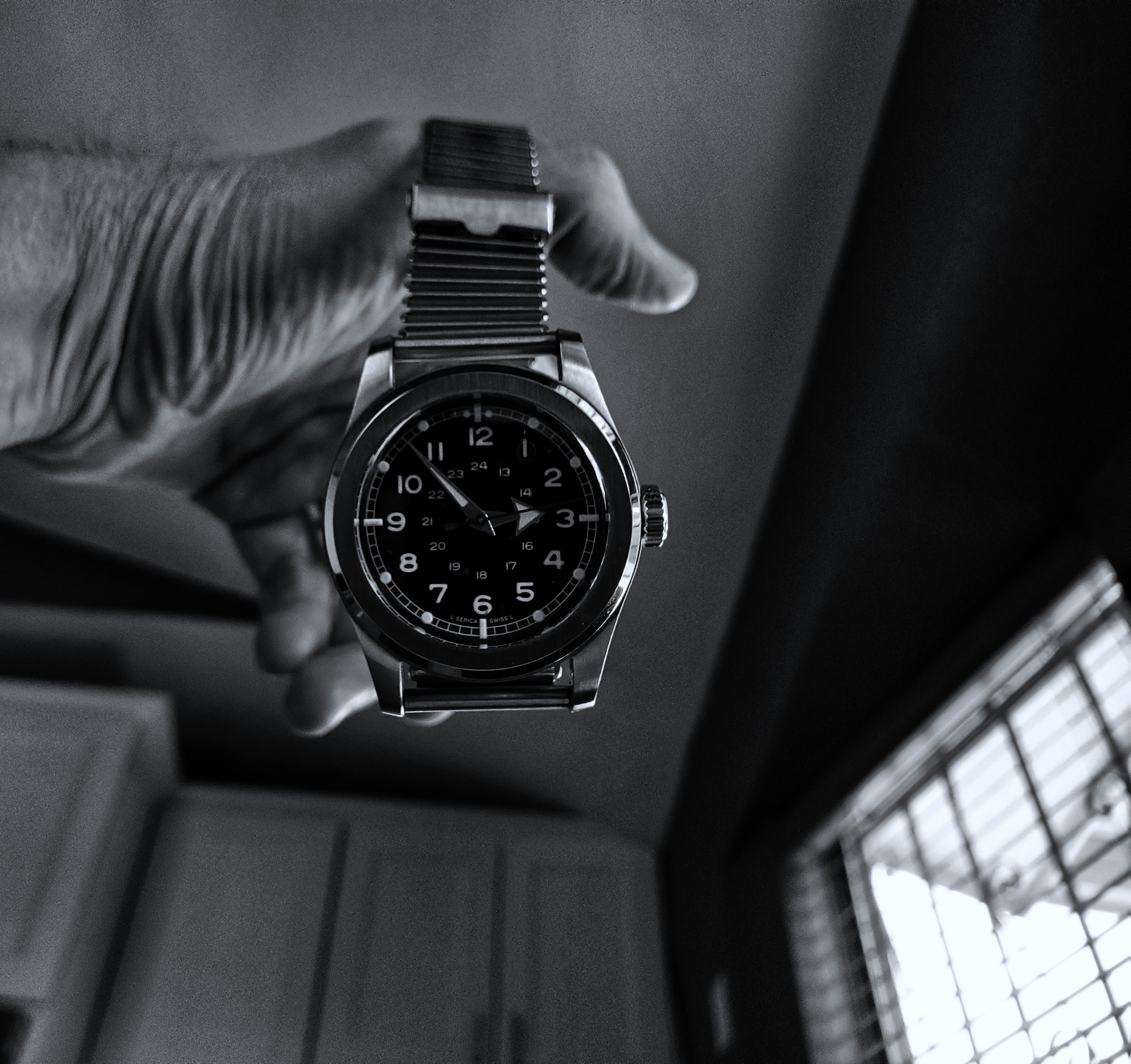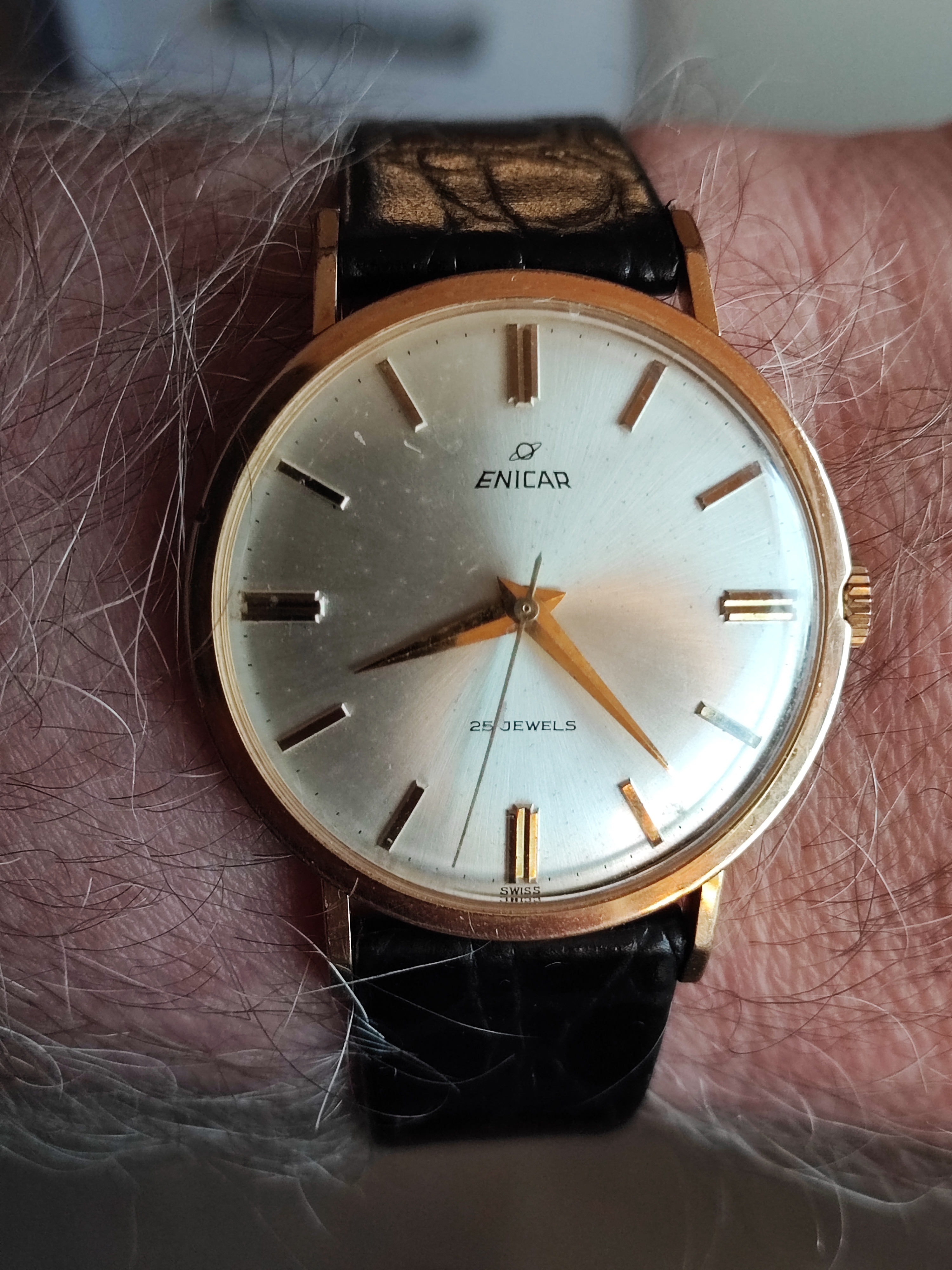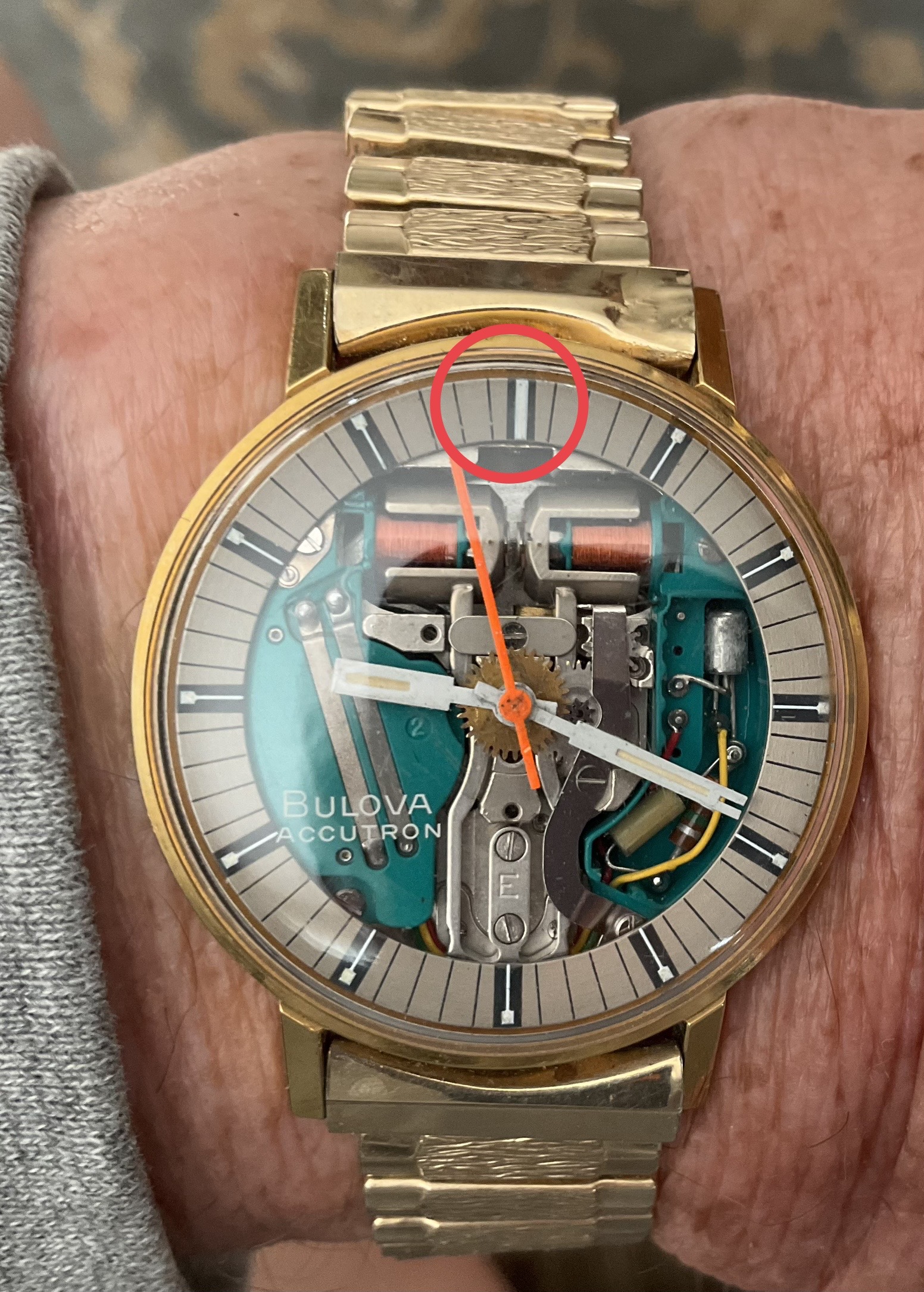 Time to rest the late 1950s Gruen Auto-wind which I have enjoyed for the last ten days. Time also to choose another watch to wear for a few days. My Accutron 214 Spaceview. This one was resurrected from parts acquired from a deceased member of the collector fraternity who loved taking Accutrons apart, but was not able to put them back together! Movement, case, case back, hands, I plucked everything I needed from his accumulation, serviced it, replaced the crystal, and this is the result. I suppose it is from the mid to late 1960s, but the case back is not original to the case, so that is a guess. Anyway, I love it!