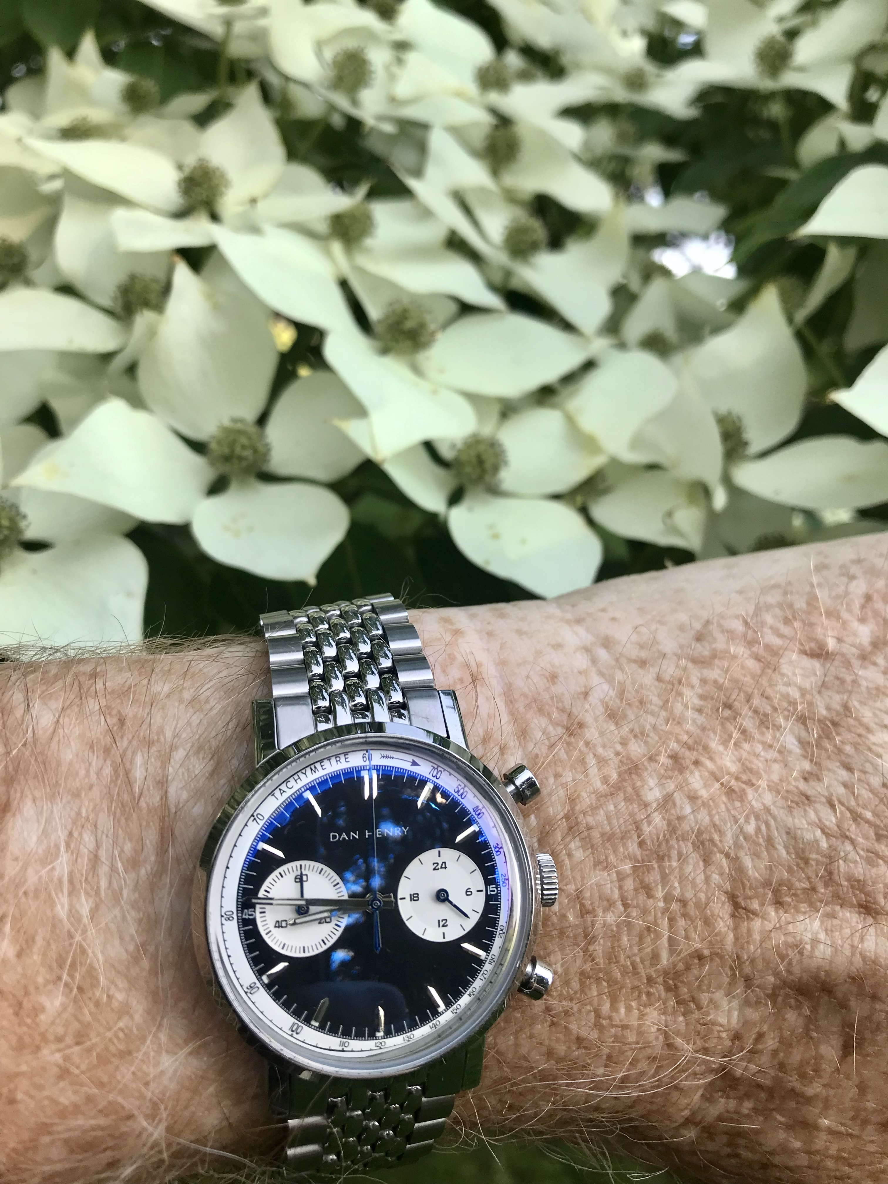 Posts 3,060 Likes 32,610 peatnick ·Jun 1, 2023 Thorsday Chrono Dan Henry 1964 bi-compax Seiko meca-quartz inside, Aston Martin DB5 outside