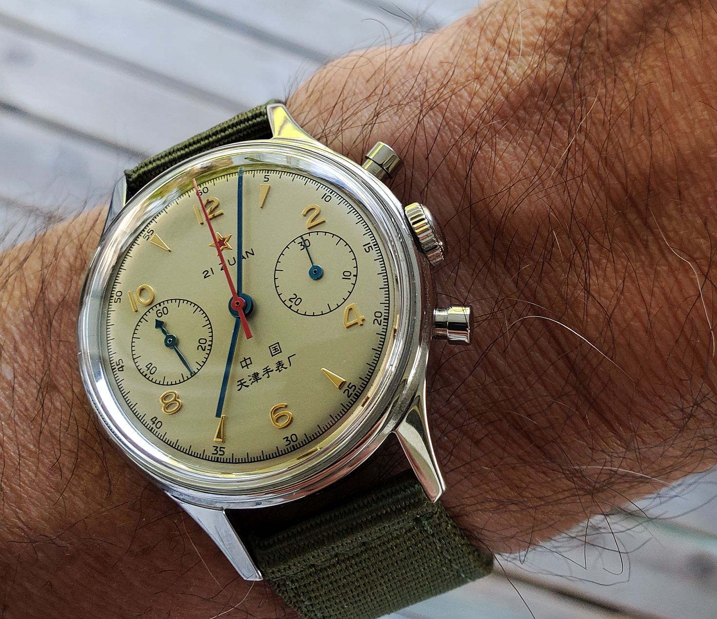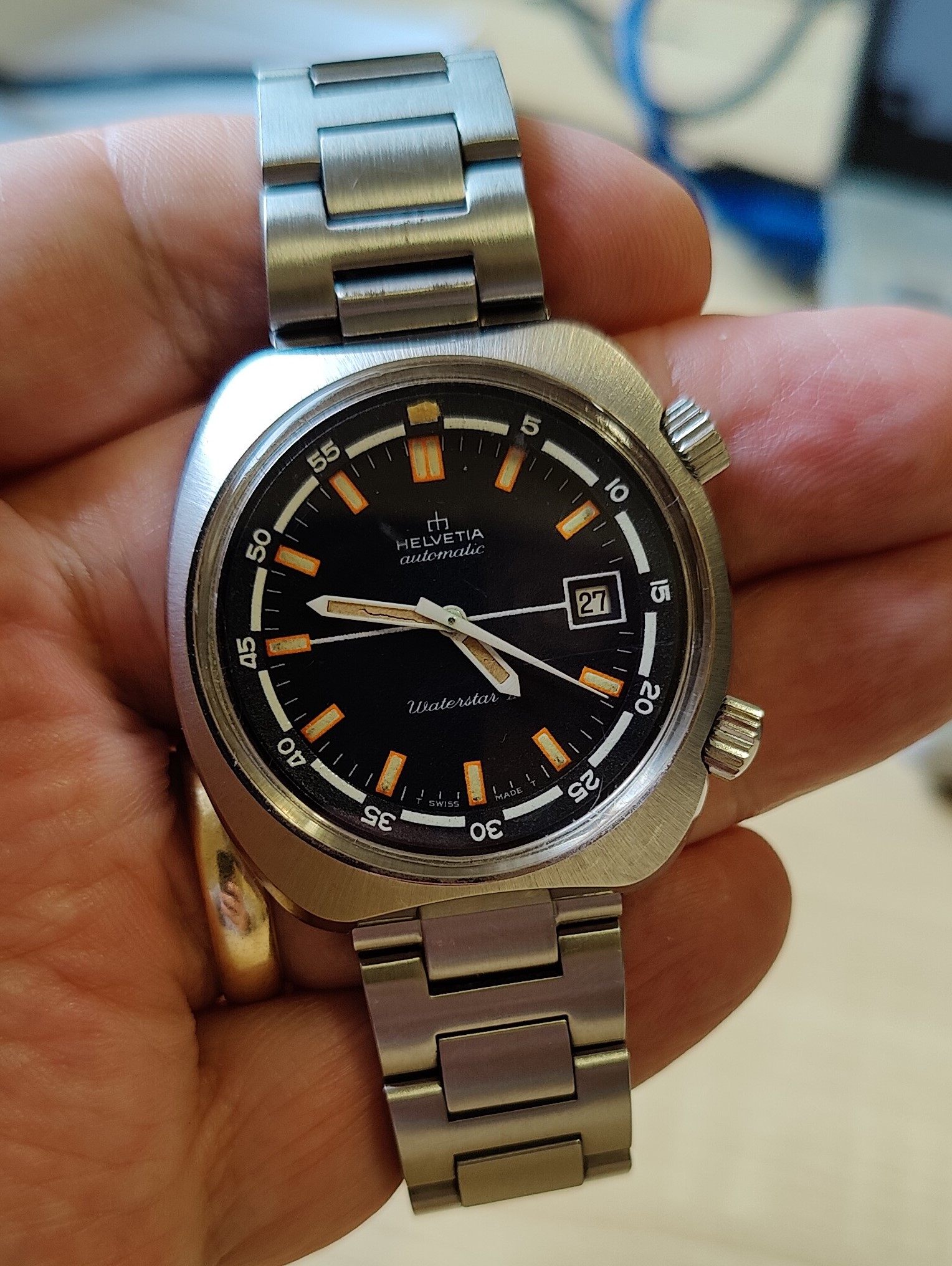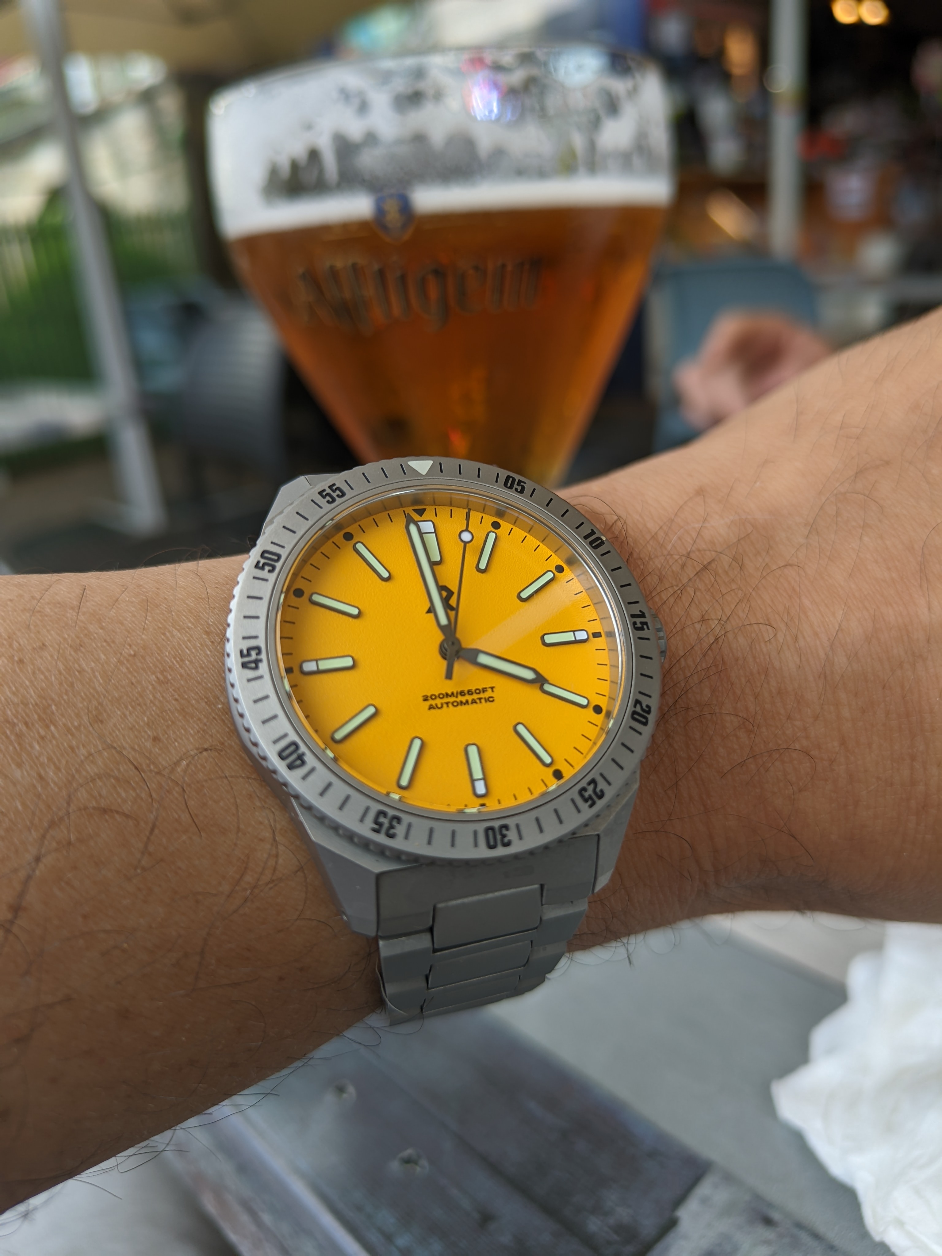 That’s a nice hiking color dial. My alpanist has become my official hiking watch a I like using the inaccurate compass see if I can get lost and return but a bright colored dial may help search and rescue or help identifying my corpse if the elements are at me too long.