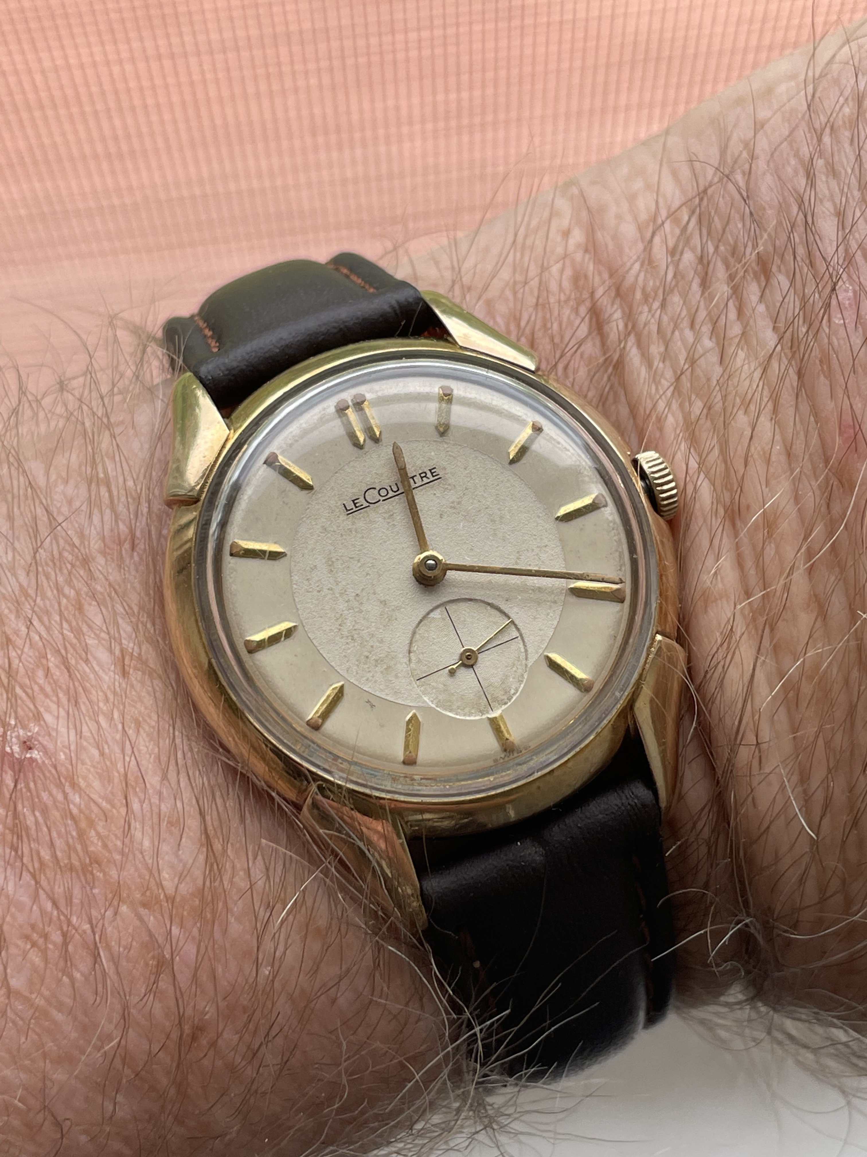 Got my little junk shop LeCoultre serviced. I still question why I did as I may use it as trade or sale locally but I am becoming fond of it I’m pretty sure it’s my only non chrono with a subdial second hand and I always liked that look. See what happens I’ll just enjoy it for now. I can only wear non date watches on the weekends or I screw up all my paperwork at work.