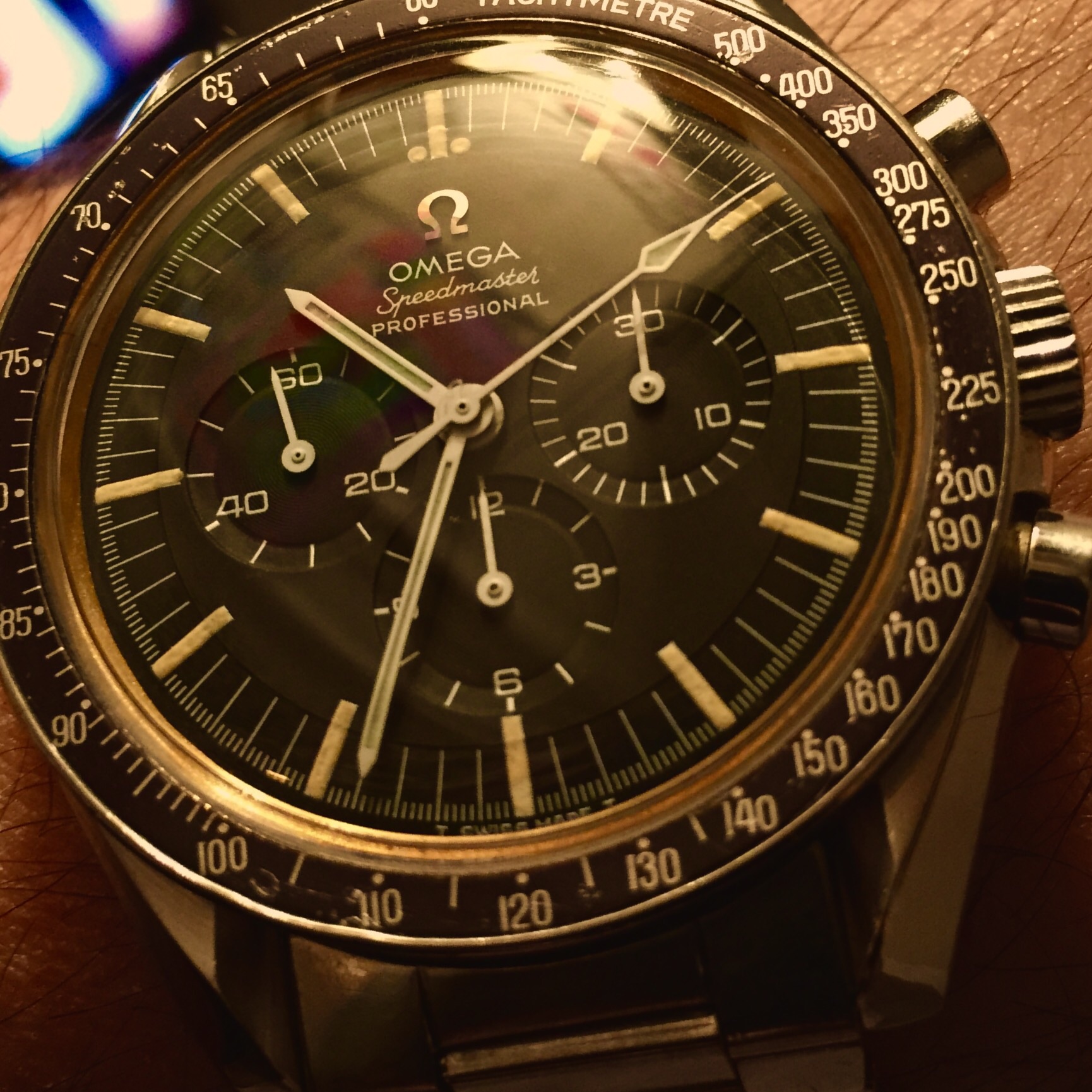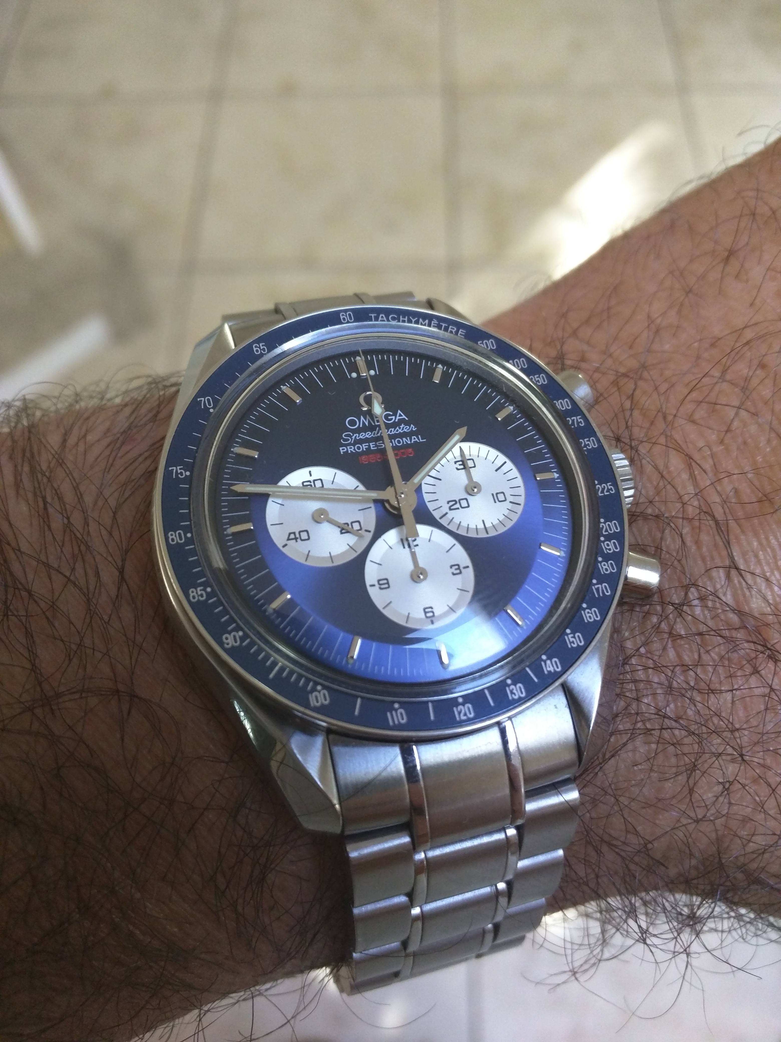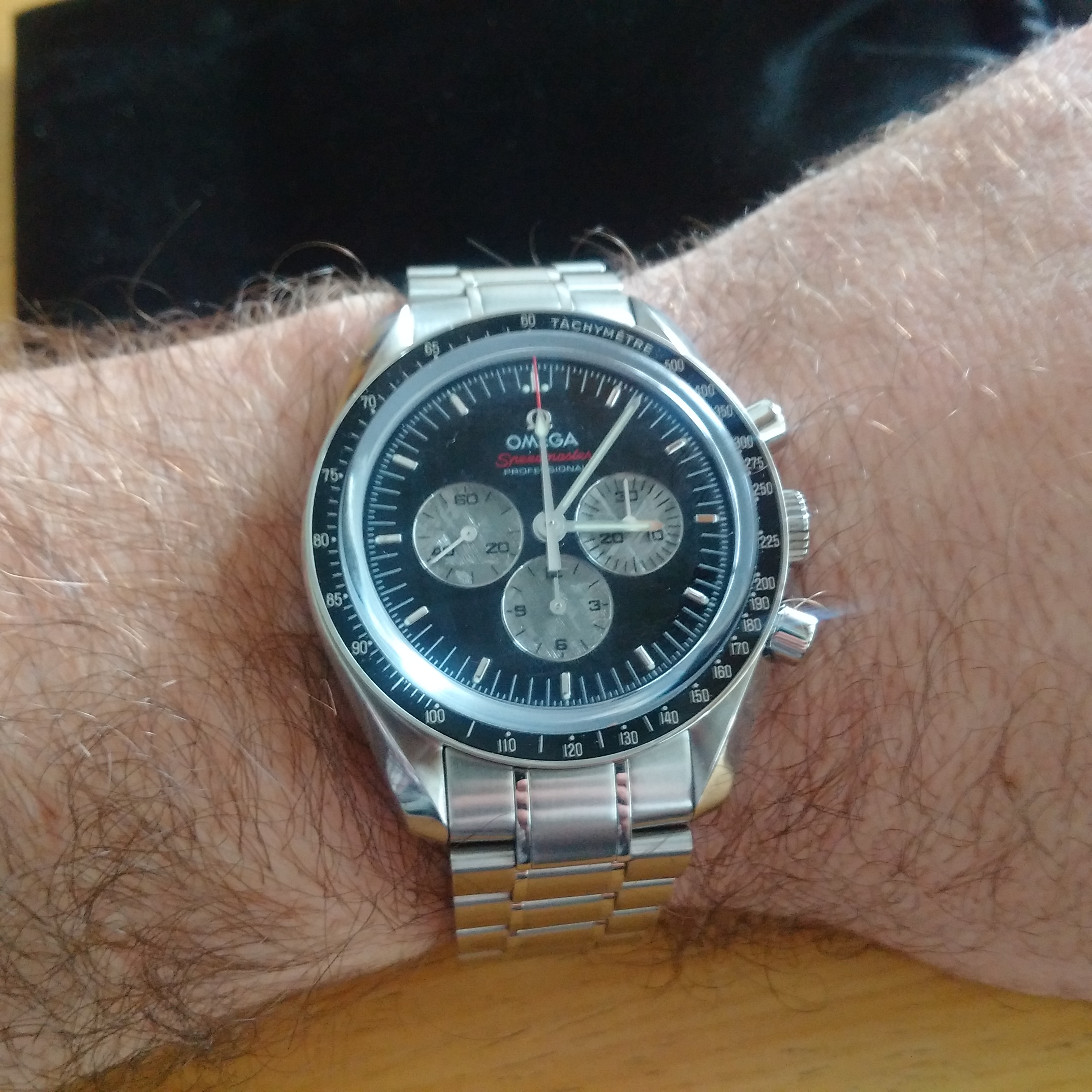 This is one of those not so rare days that I am wearing two watches. Two wrists, two watches! Why not? Especially when you are unable to decide which watch to wear! This one is to commemorate the 20th anniversary of the moon landing. I ordered it in 1990, and waited weeks for it. One of 2000 commemorative Speedmaster Professionals issued in 1989, with the factory sapphire back. I am eternally fascinated by it!