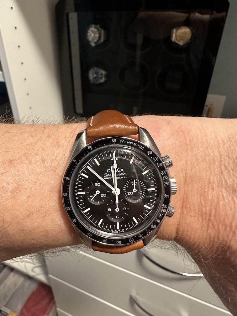 Posts 53 Likes 189 http410 ·Jun 3, 2023 Moonwatch 3861 on the Omega golden brown strap with folding clasp (9452.18.93).