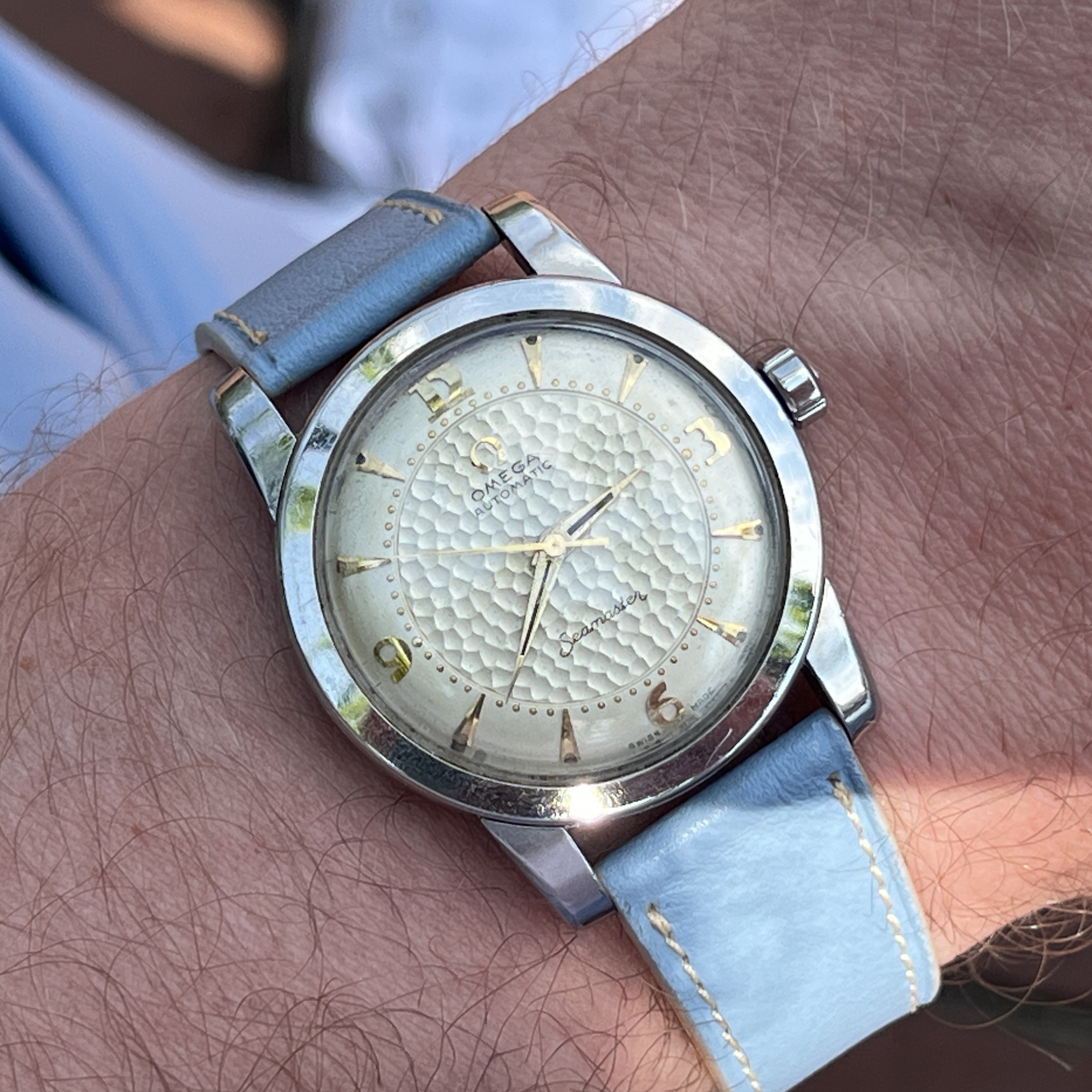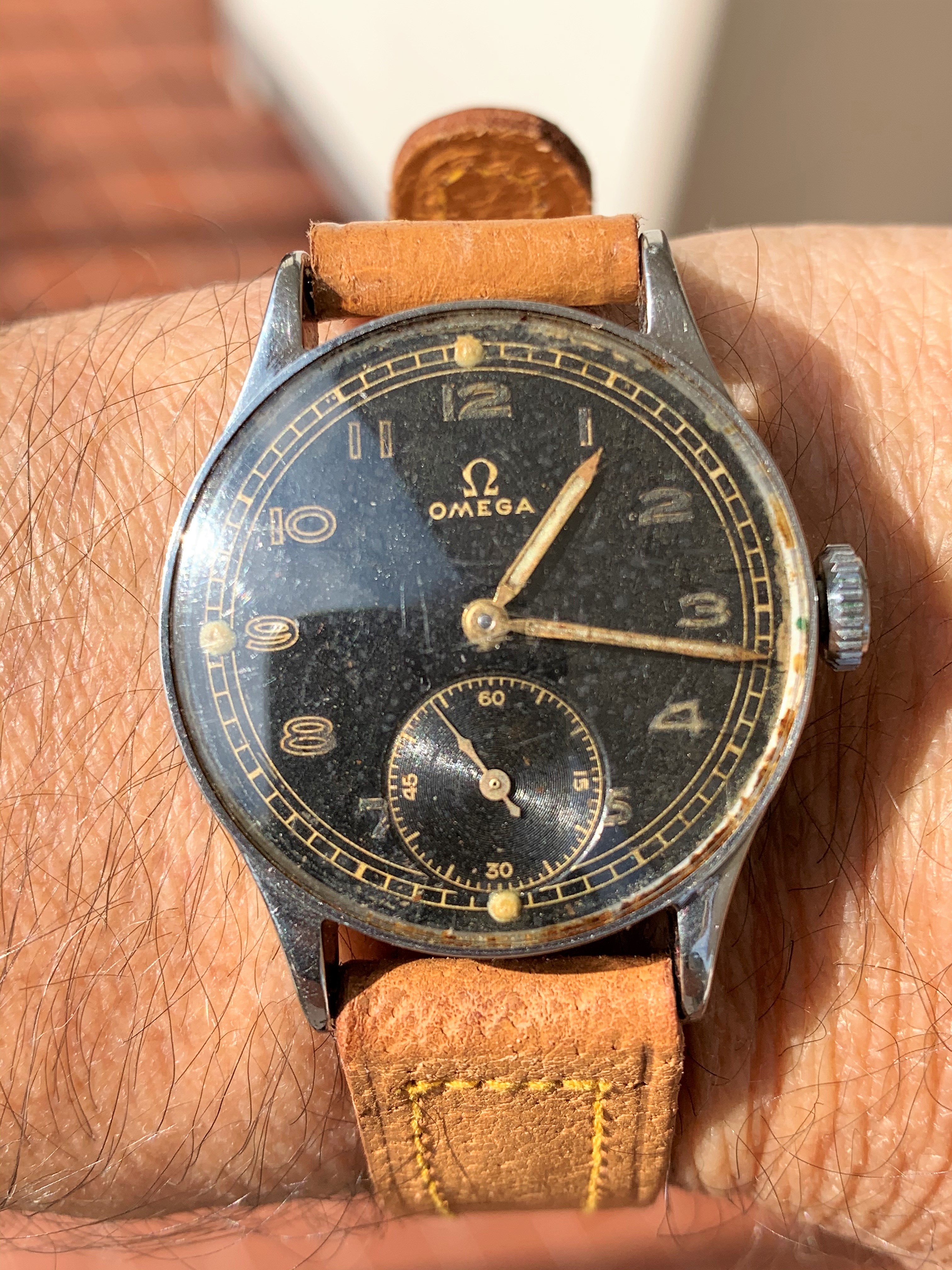 I'm always enthused to remember and reflect on D-Day 1944 and the enormous sacrifice of toil and blood. After lunch a switch was made to this 1944 vintage Omega. Not a military contract model, but this watch was produced during a trying time. It very well could have a story of its own to tell.