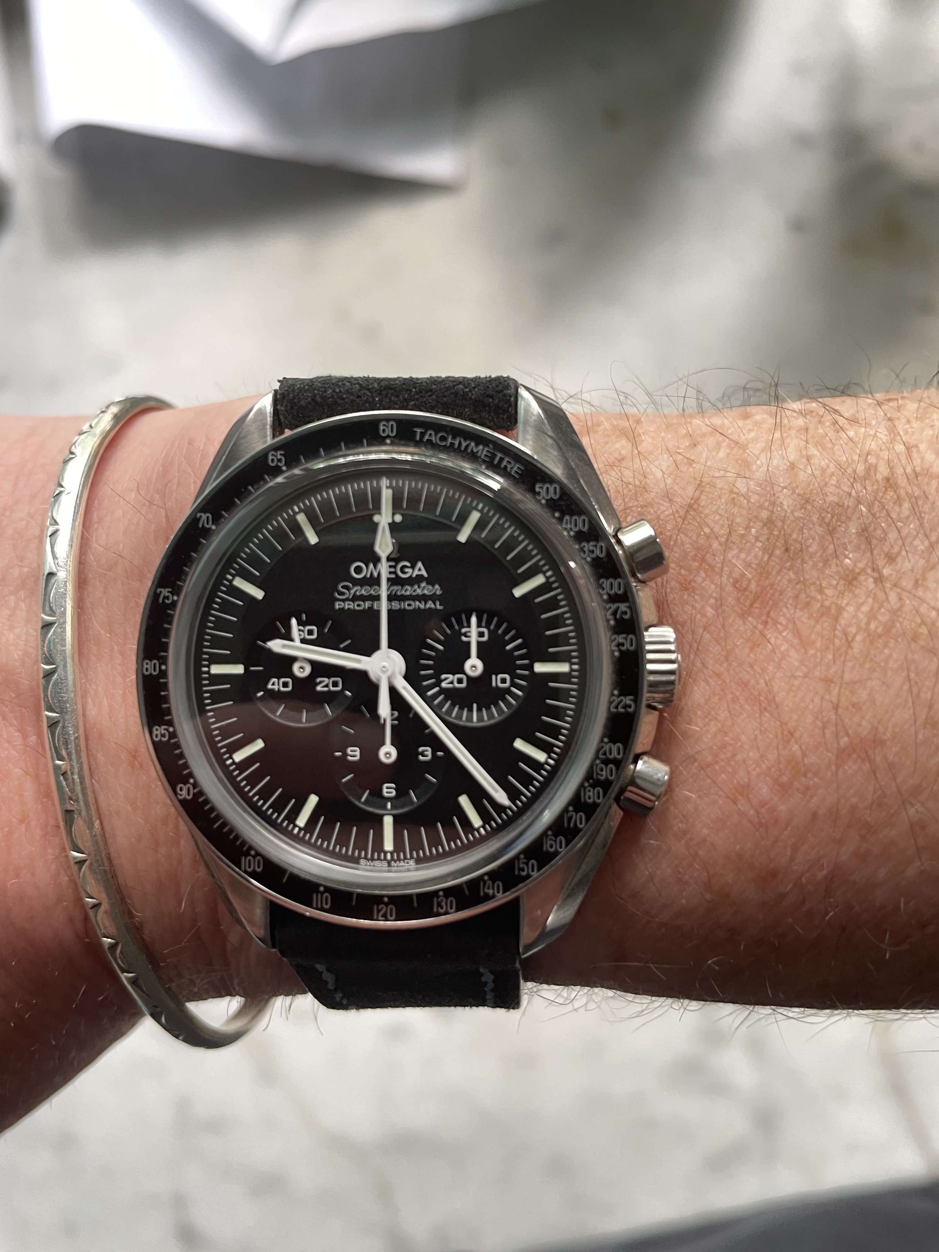 ·Just back from four days camping in the Rocky Mountains. Perfect trip! No rain, no wind, no smoke, cloudless skies, but hot! 30° C on Wednesday (mid-80s F°). Time to doff the Caravelle transistorized Electric, and back into my one-owner (me) 32 year old Speedmaster 345.0808. Sapphire back and all. This was the first Speedmaster model with a sapphire back, apparently.