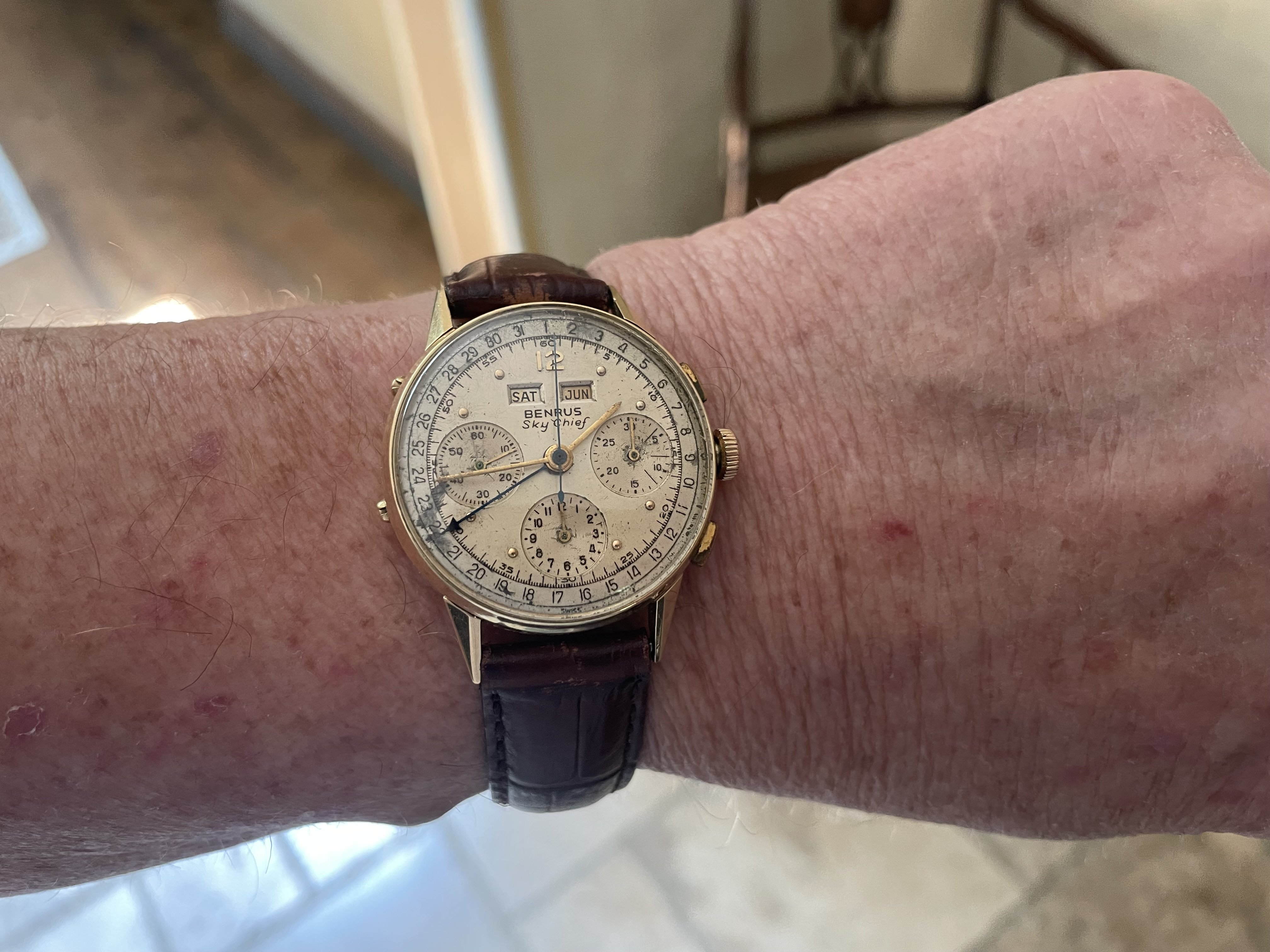 Posts 920 Likes 3,833 OneTwo ·Jun 10, 2023 Happy Saturday OF! I wear this one sparingly just due to its age and my sentimentality for it; it was my great uncle’s watch. At minimum though, I wear it today (production date in 1946), my Uncle’s birthday and Christmas. 77 years young and still tickin’.