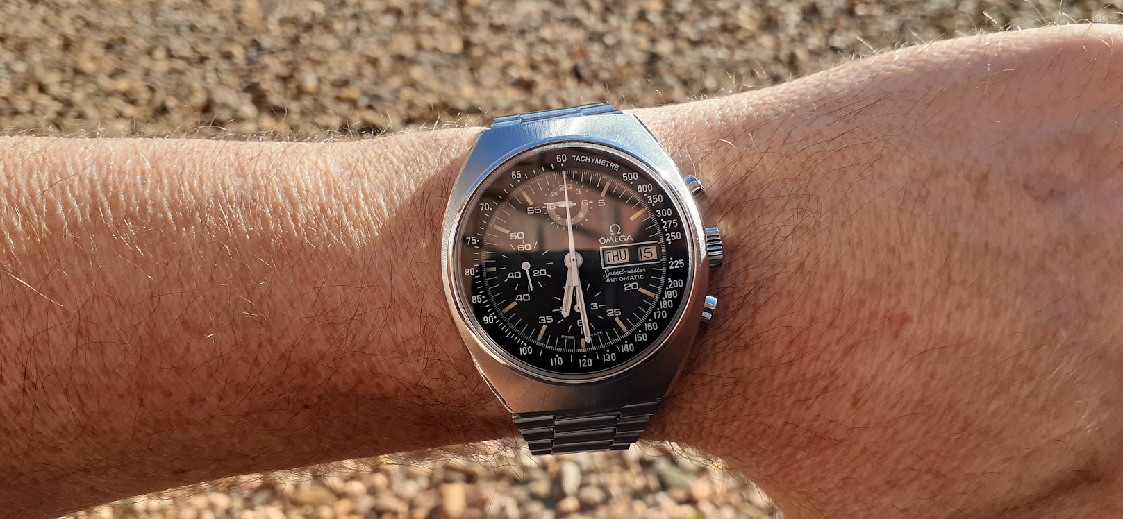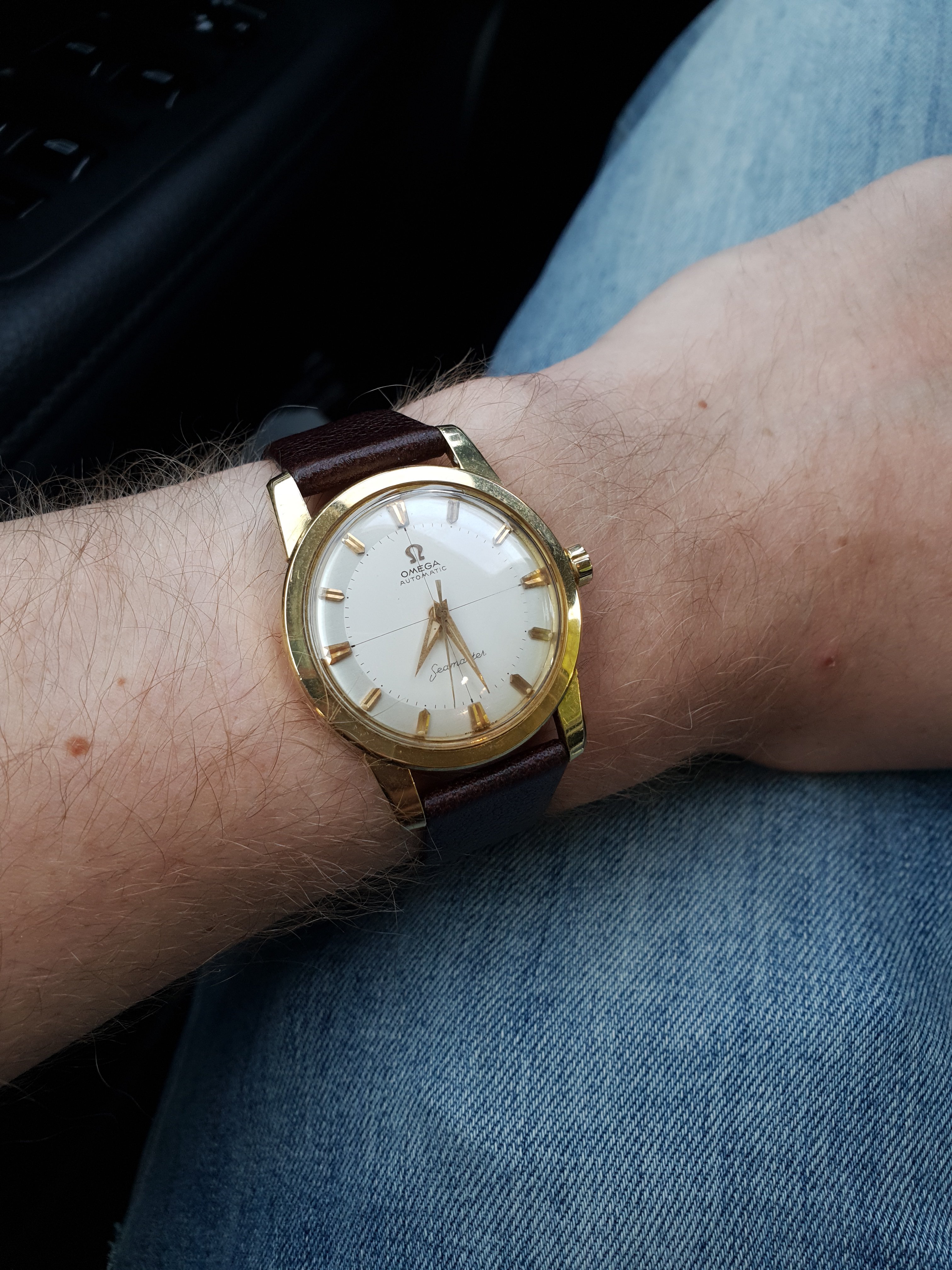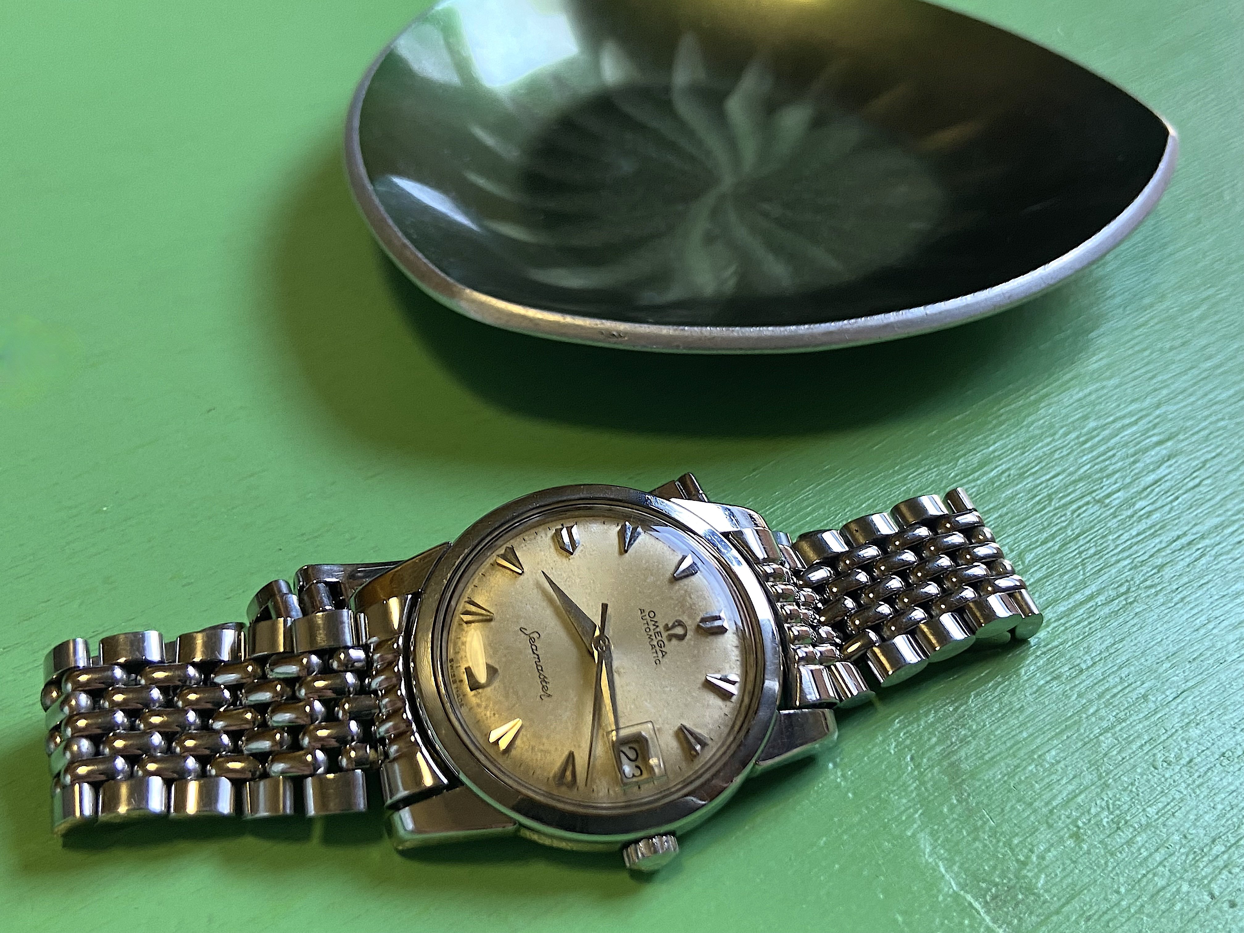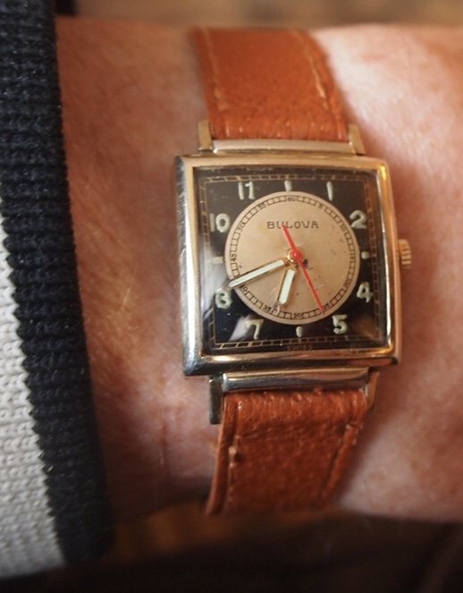 Newly acquired, 1943 Bulova “Blackhawk”. One of a series run by Bulova in the early 1940s. Original selling price was $41.95.Aimed at servicemen with the red sweep seconds hand. This one needed conditioning, crown, sweep seconds hand, re-lume hands, and NOS glass crystal. An exact match I had in my stash of 30,000 glass watch crystals. Coffee today with the guy I bought it from. I wonder if he will want it back when he sees it! 🙄