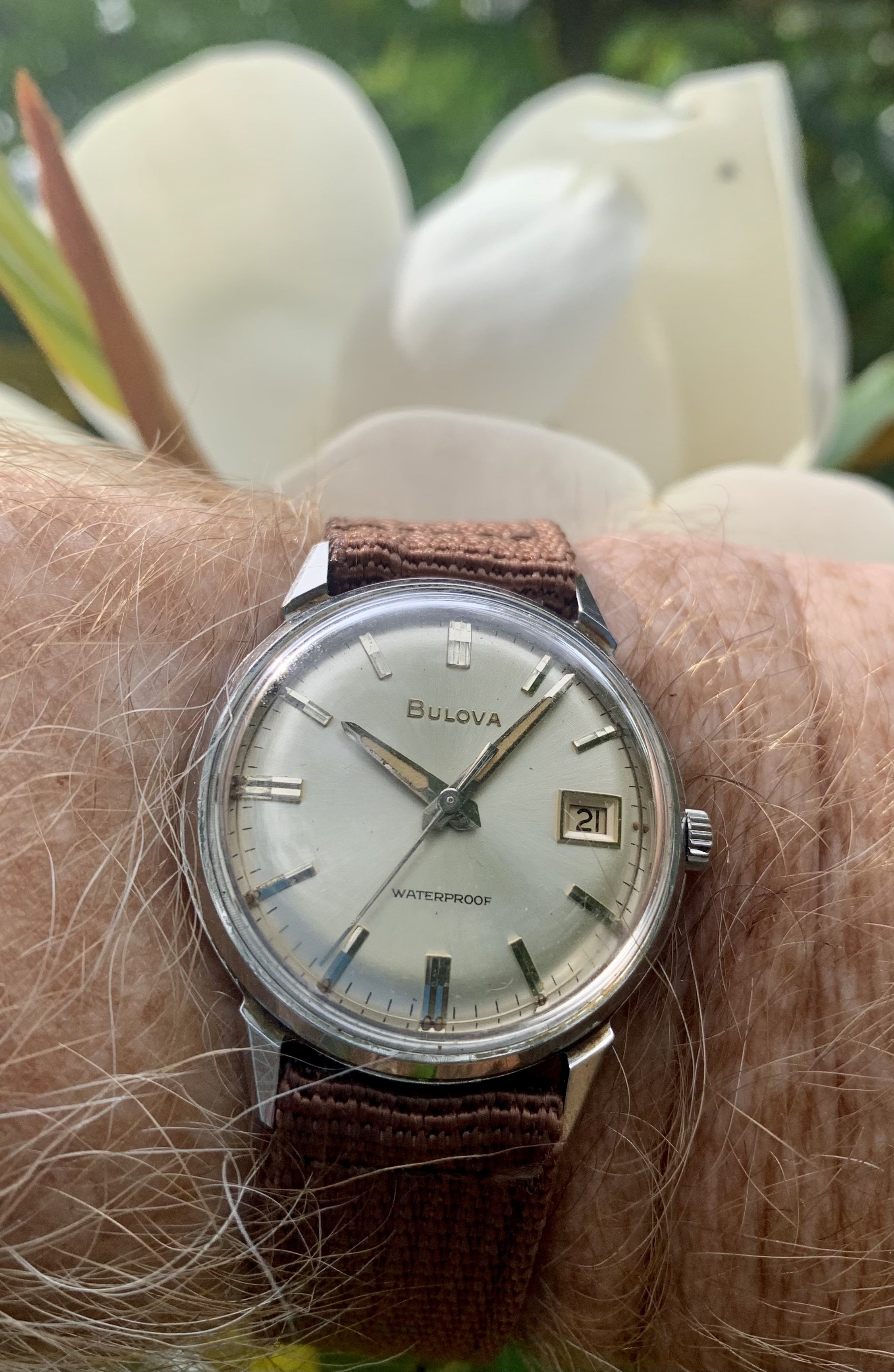 Posts 3,085 Likes 32,968 peatnick ·Jun 21, 2023 Wind up Wednesday Bulova Date King calibre 11AL circa 1966 Background busy bees