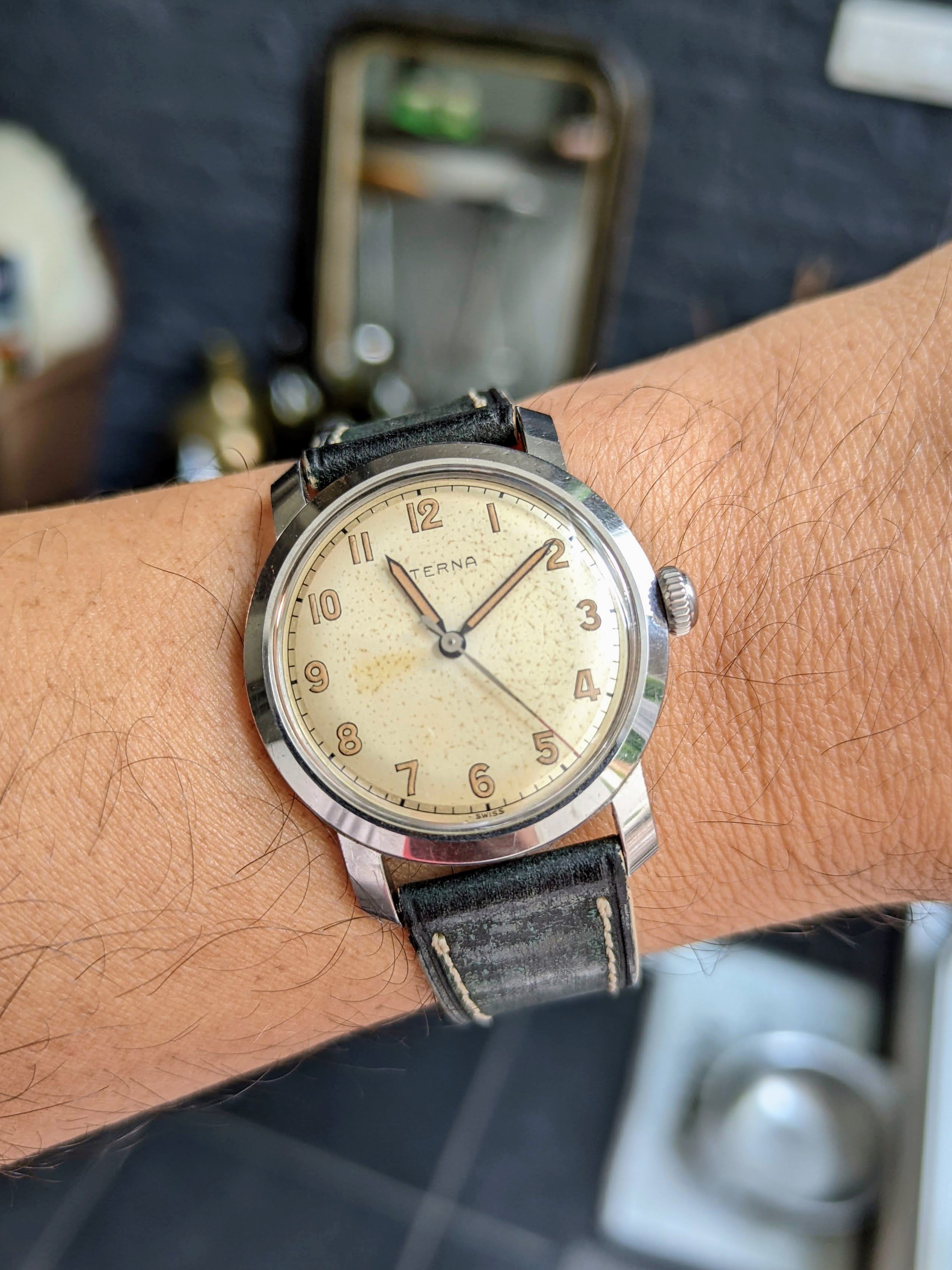 Posts 17,419 Likes 164,525 Alpha ·Jun 21, 2023 Not wearing but a JLC travel alarm from 1944 sitting on the desk this evening 👍