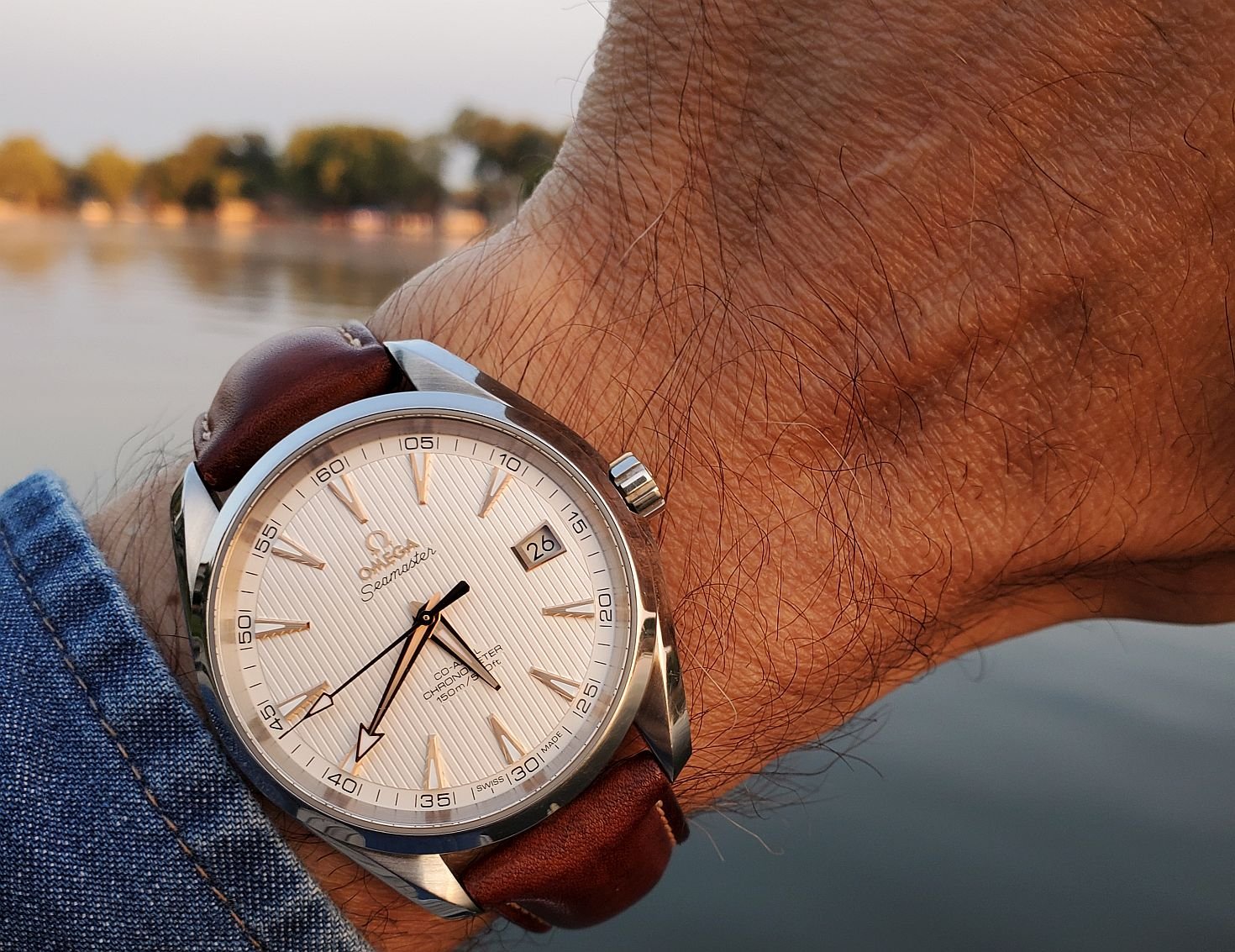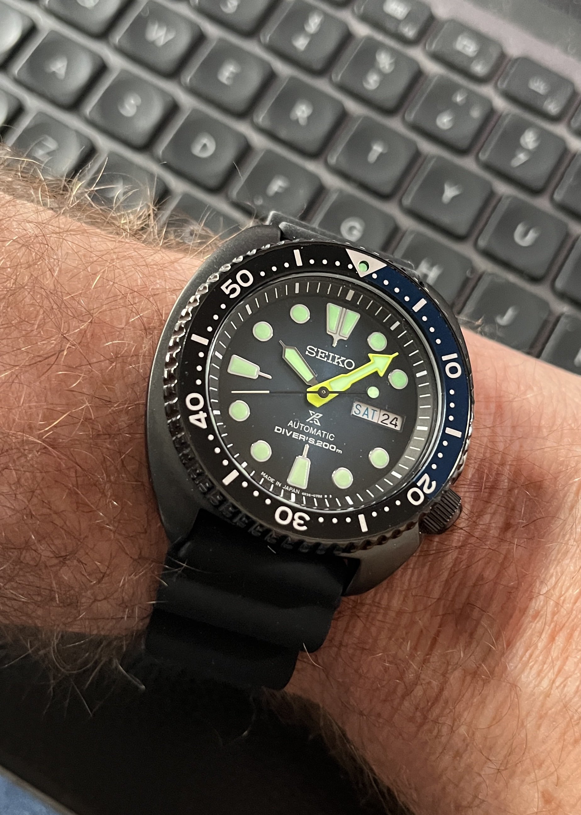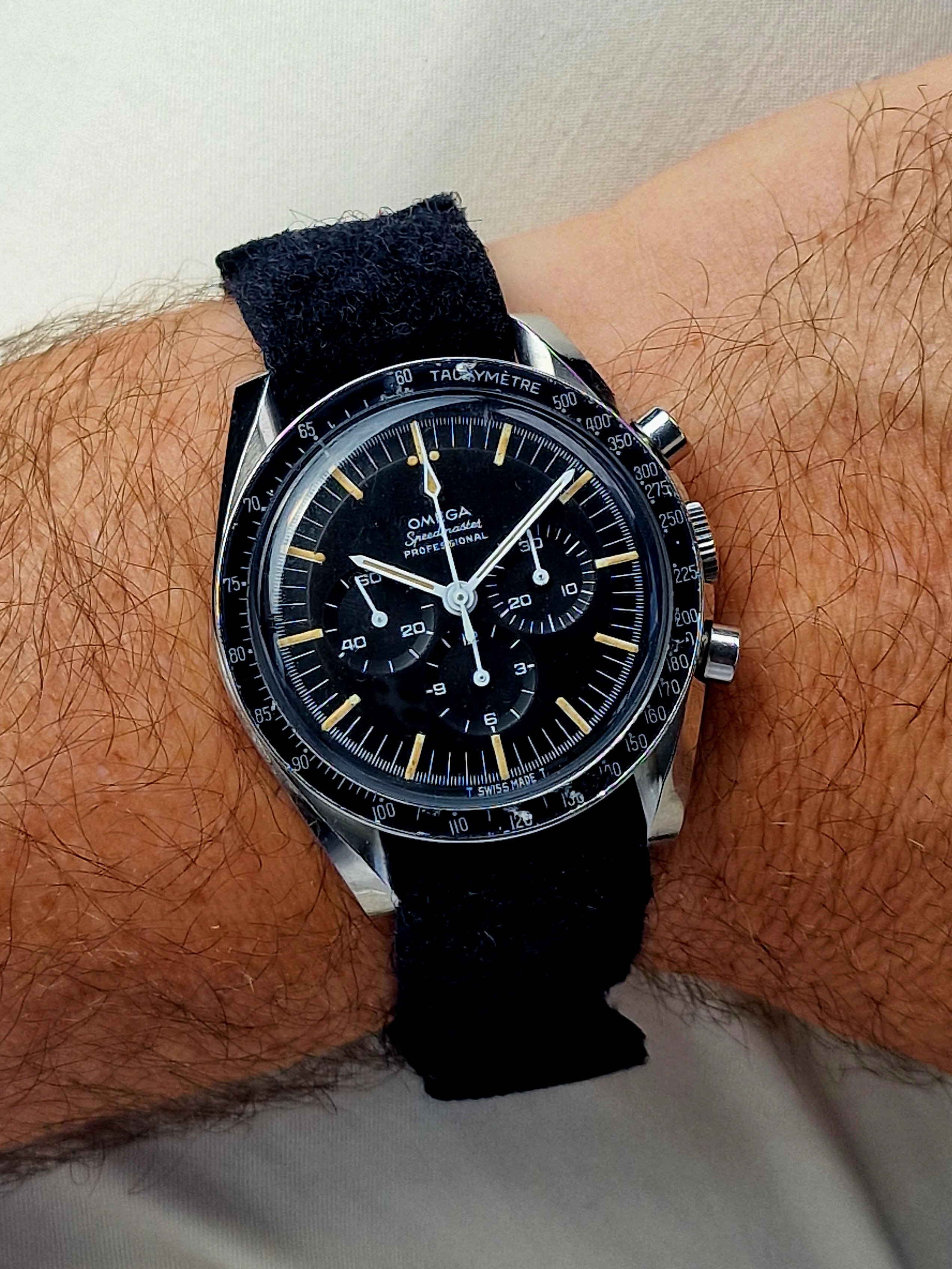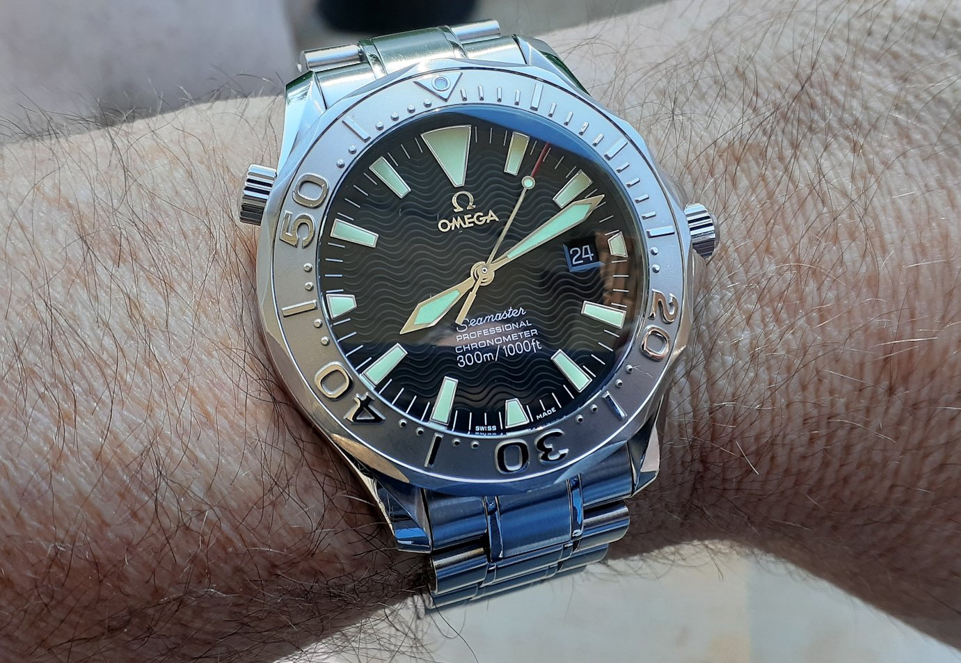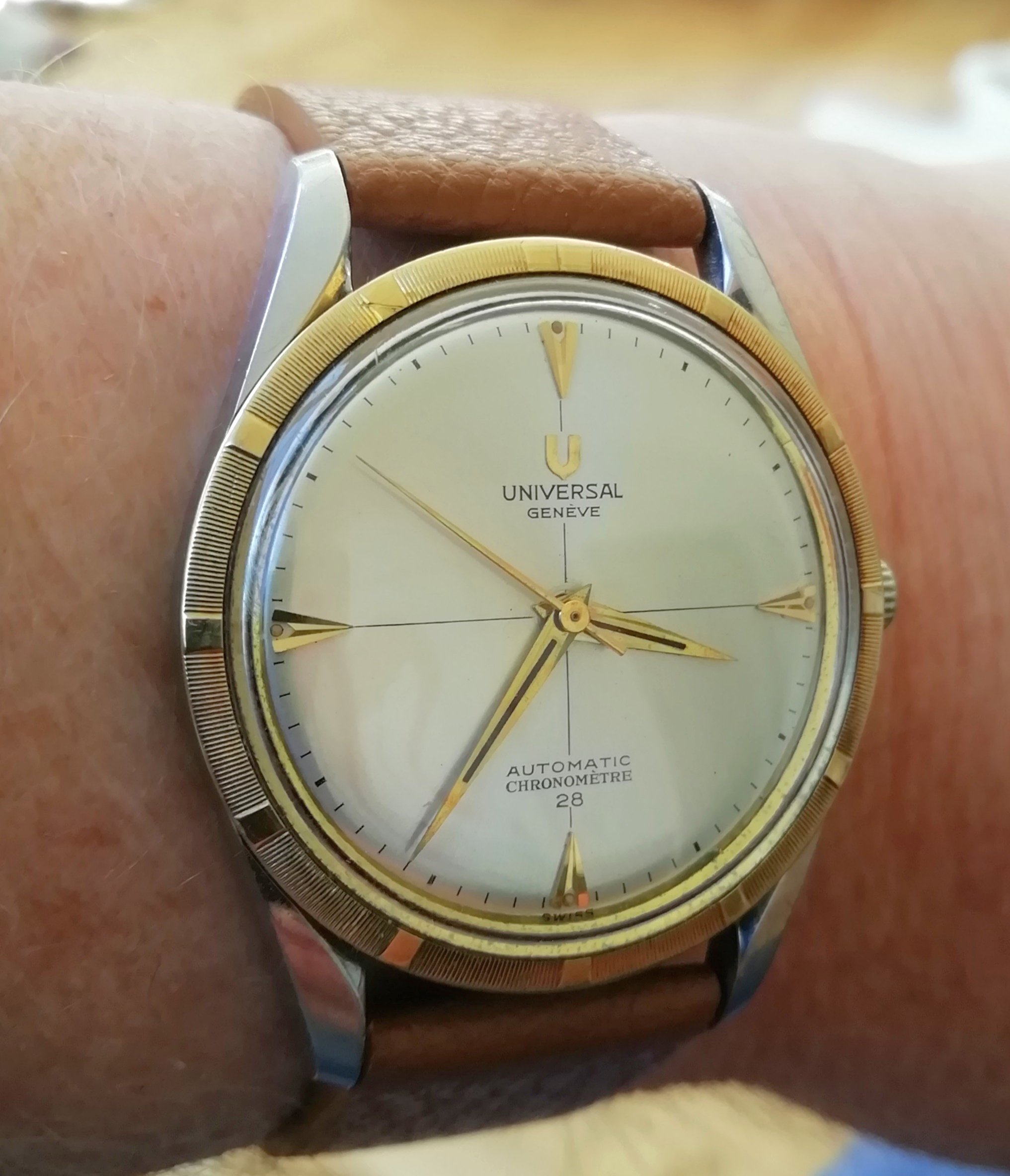 Back to my Rolex Date-Just. One owner (me) for the past 34 years. The bandage is the result of a mis-step while working on a carpentry project. Concrete floors are very hard,