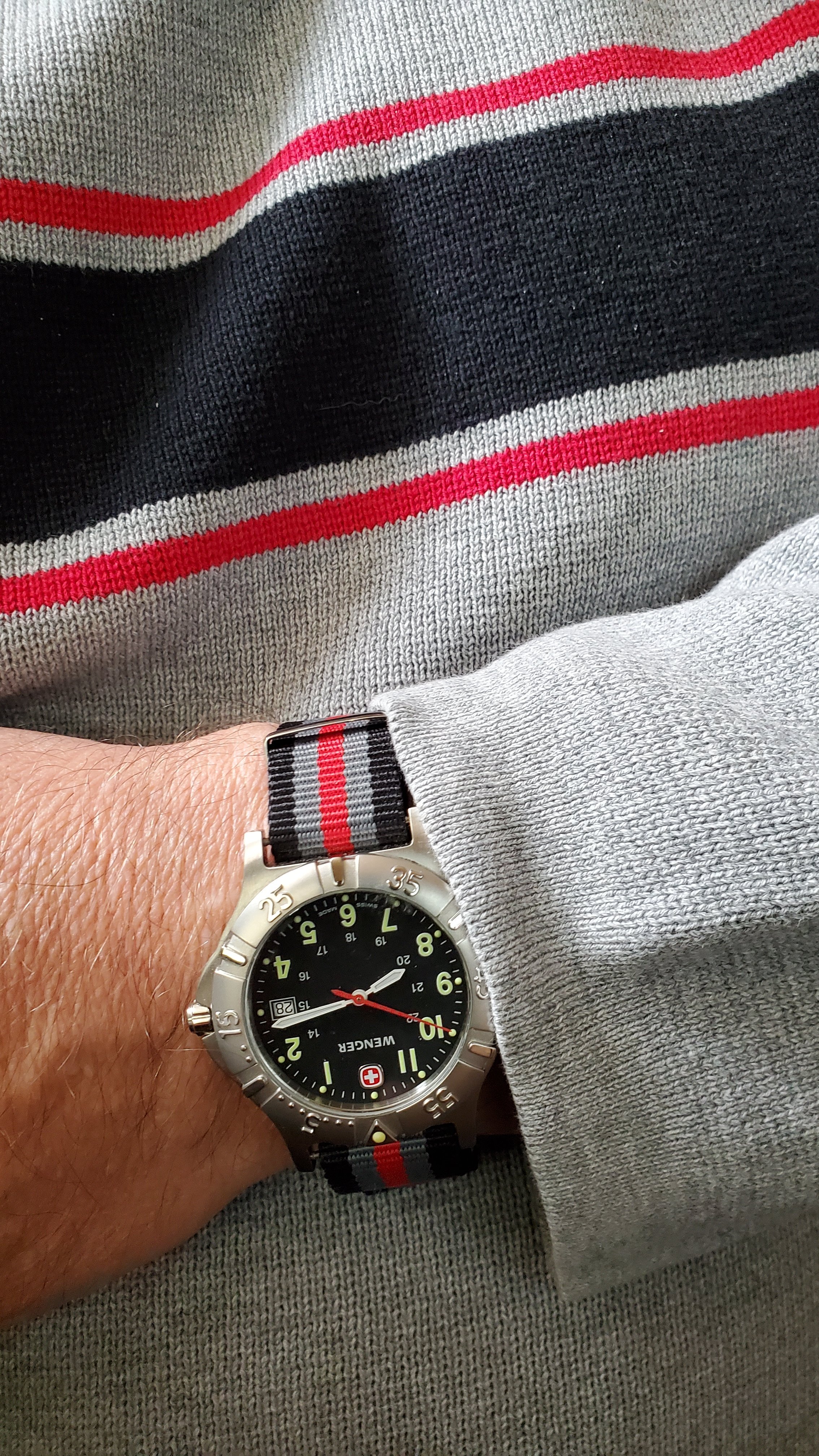 I choose the watch first, then a few minutes later I put on this sweater. They match, isn't that cute. It wasn't intentional, however the strap and sweater a pretty close.