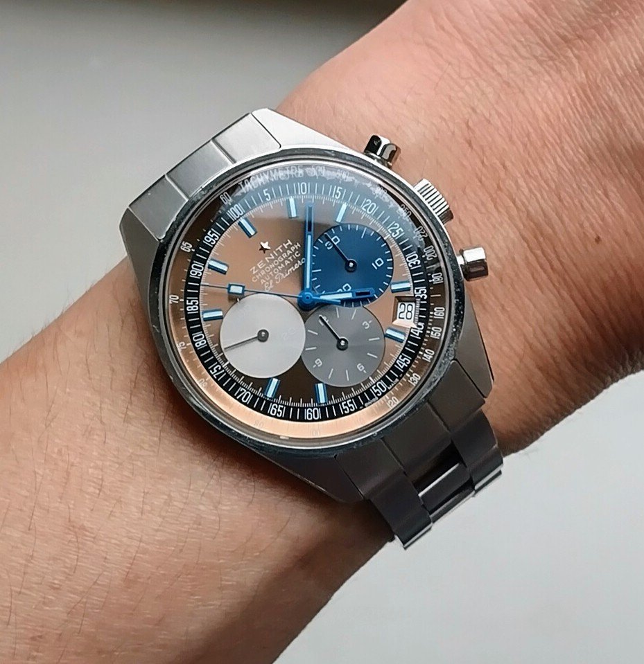Been awhile for this little guy. Thanks to the “concentric circles” thread I couldn’t help breaking out the loupe on this dial. Also, found a stopwatch in another of the MIL’s watch stashes. Pretty fun to play with.