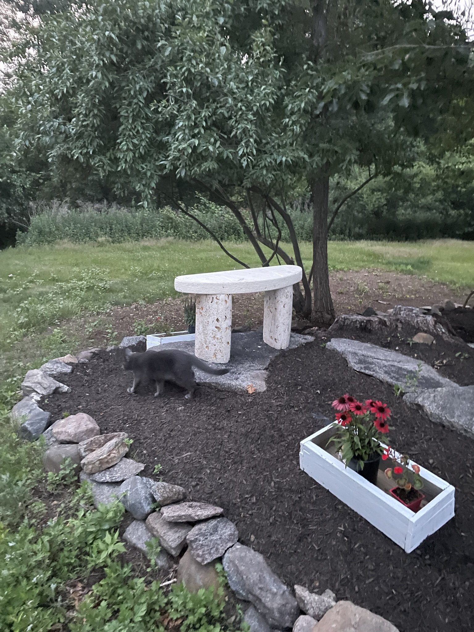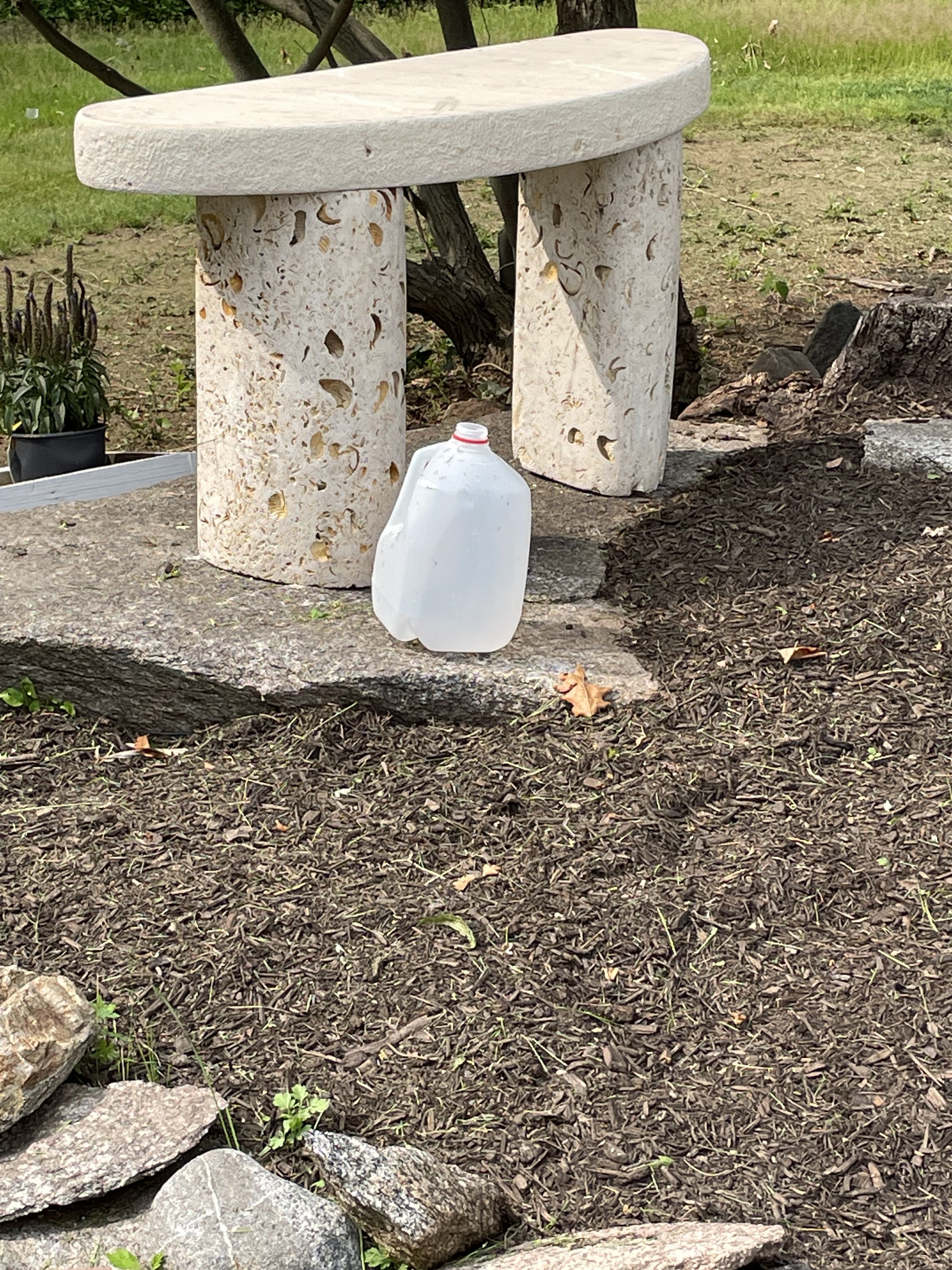·I’m rushing to tidy everything up as I’m expecting to be Covid positive by tomorrow unless I actually now have immunity after 5 bouts. But I’m realizing I really lack design ideas I put this thing in one of my rock gardens and I’m not even sure exactly what it is but I guess it looks ok. I have a bigger one out front that was a real bitch to move. Excuse the empty jug I was watering flowers. Perhaps I should think these things out better.