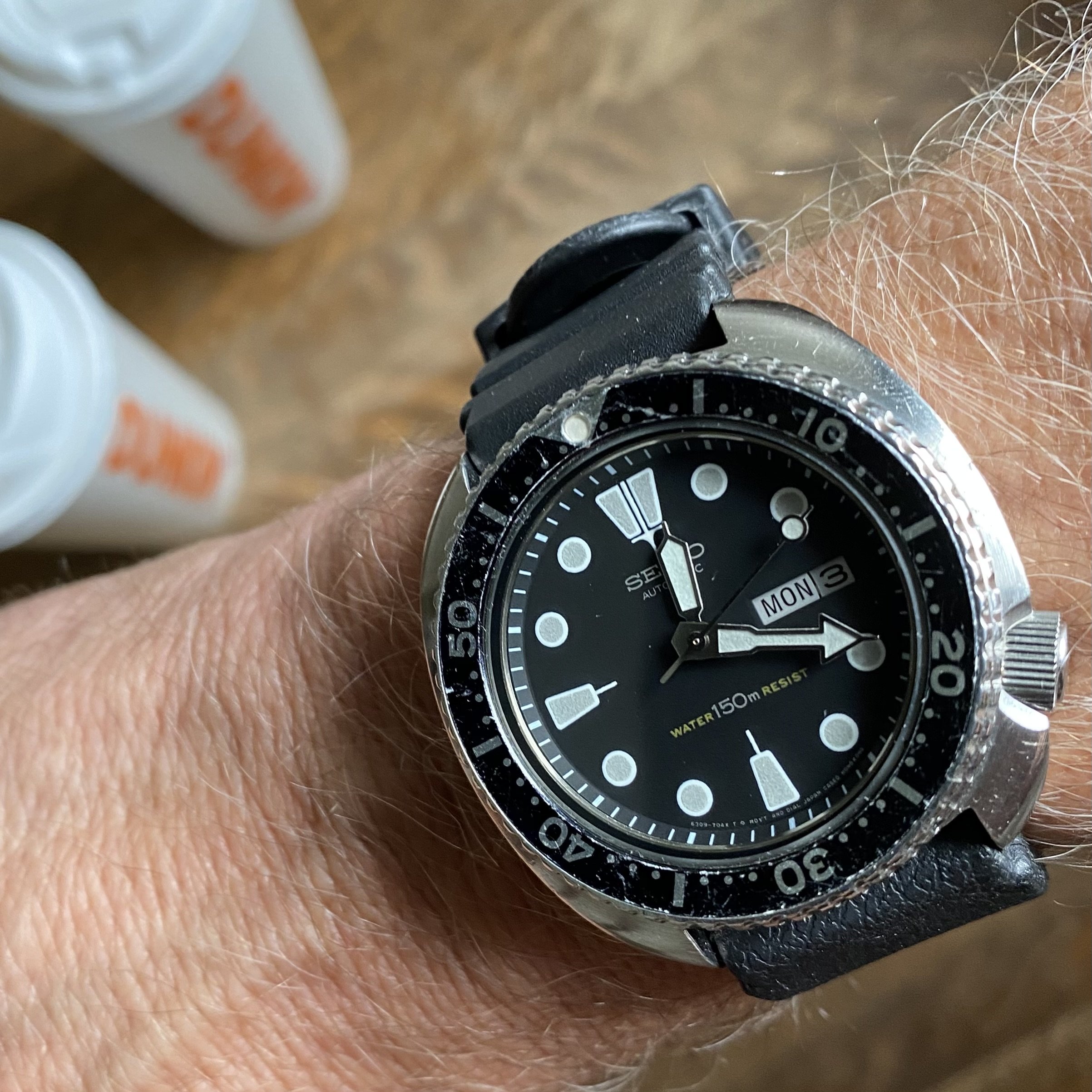 Posts 6,581 Likes 78,213 Mad Dog ·Jul 3, 2023 Double dog Seiko automatics and Dunkin’ XLs for today…6309-7049 [1986] and SRP777 [2016] respectively…