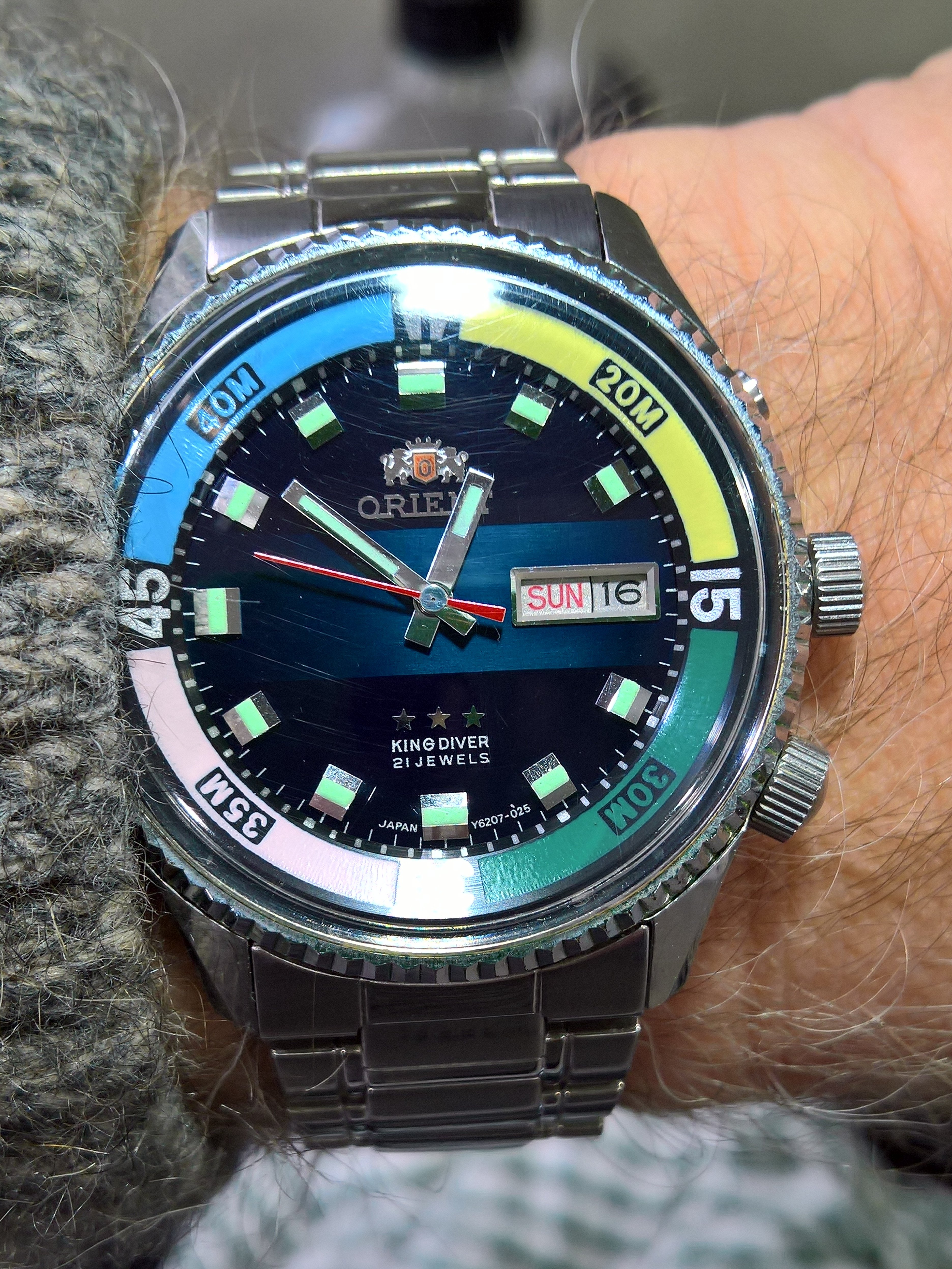 I managed to track its history back to a collector /seller in the UK who had stumbled on a cache of NOS Orients which were offered thru one of the online forums some where back in the early 2010's.