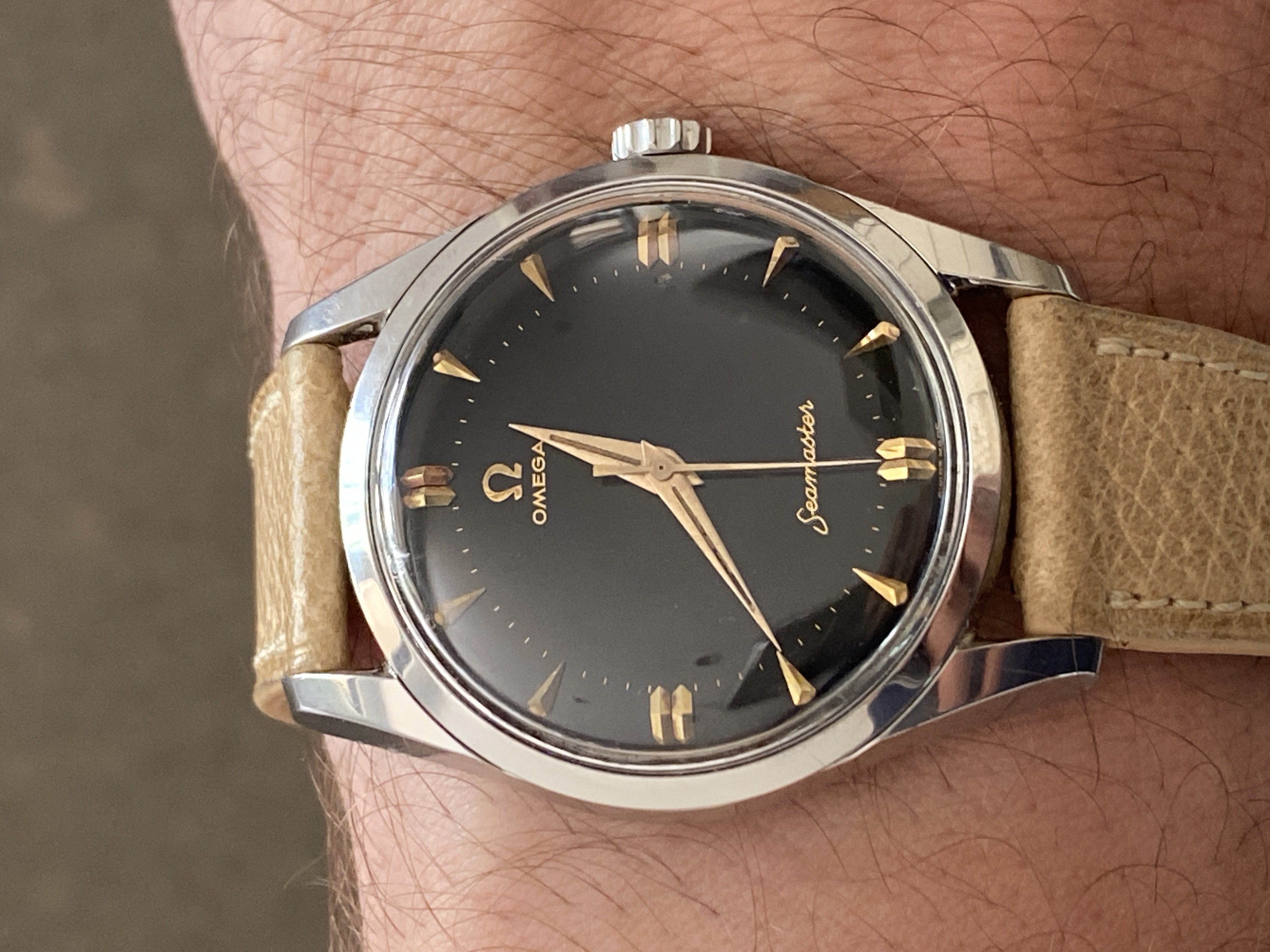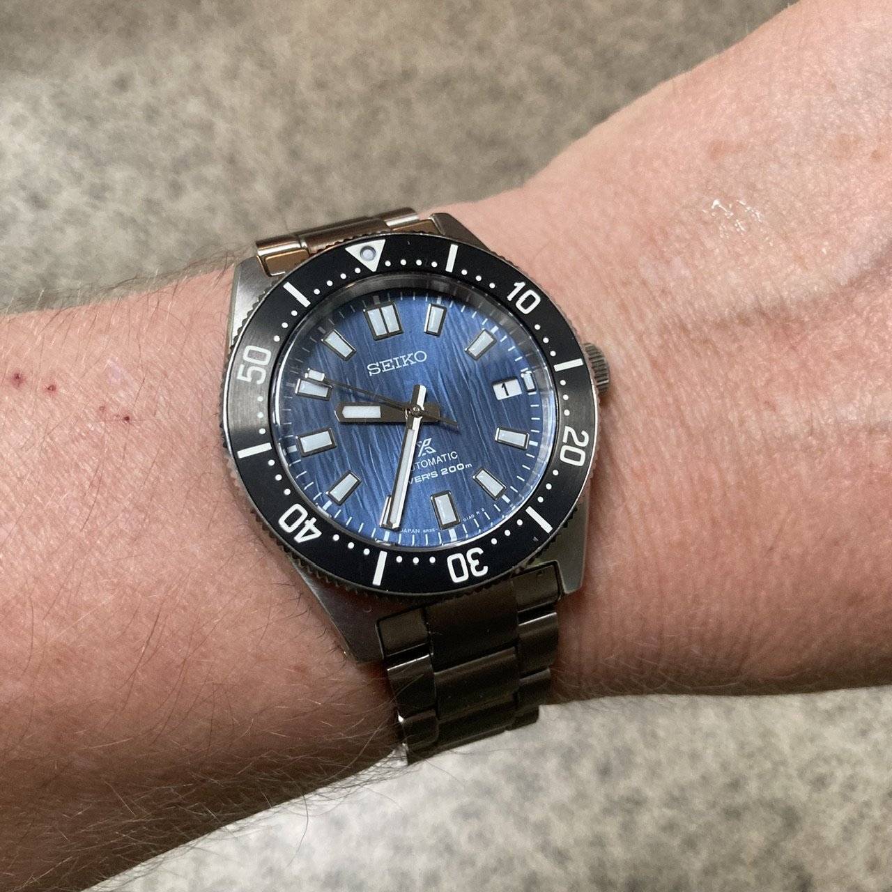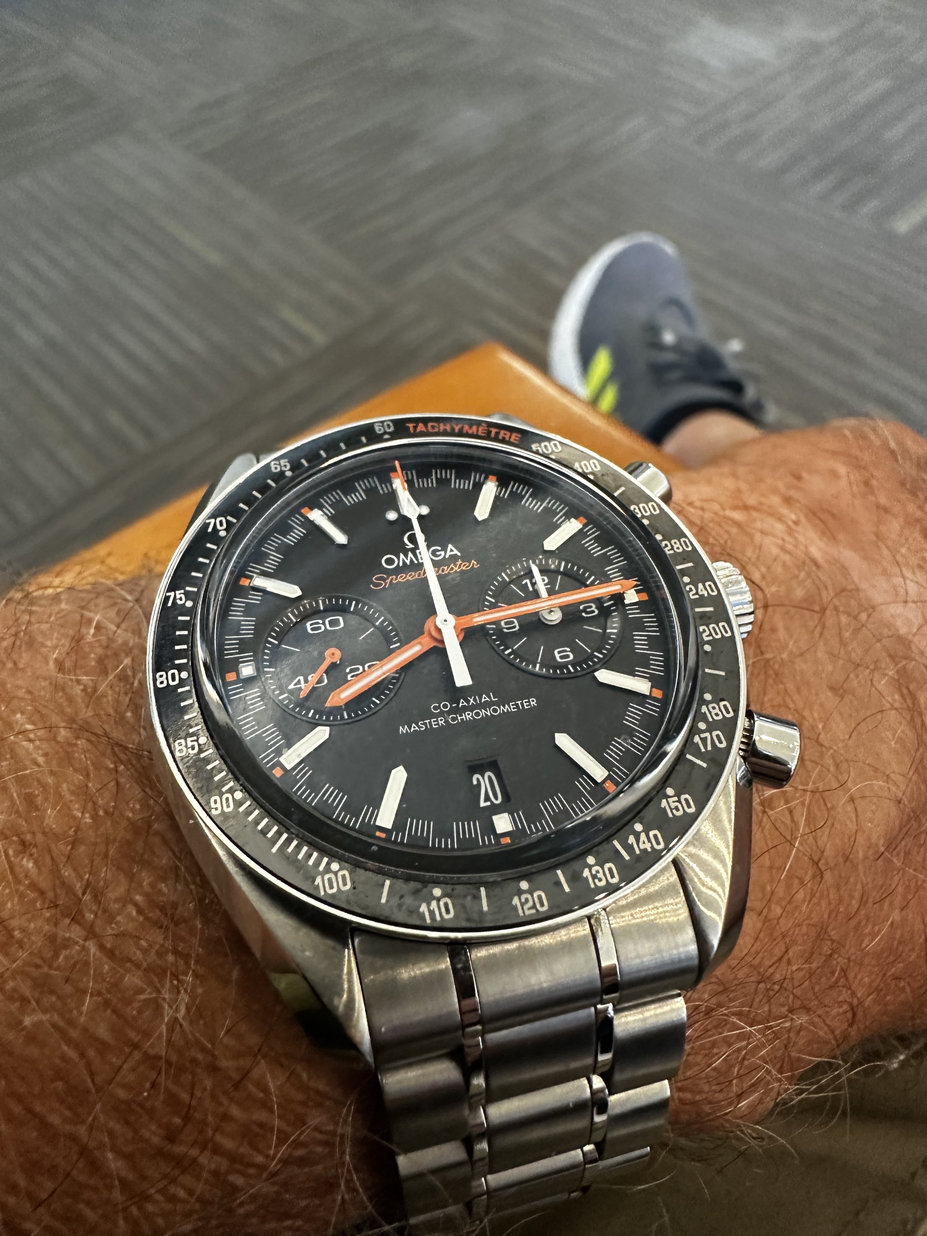 Im wearing my Italian dial Speedy a lot this summer. It鈥檚 a mod with a fully satin-brushed case with pushers and crown a la ST1, paired with the brushed bracelet from the new hesalite Speedmaster 3861, and a color-matched anthracite grey decimal bezel.