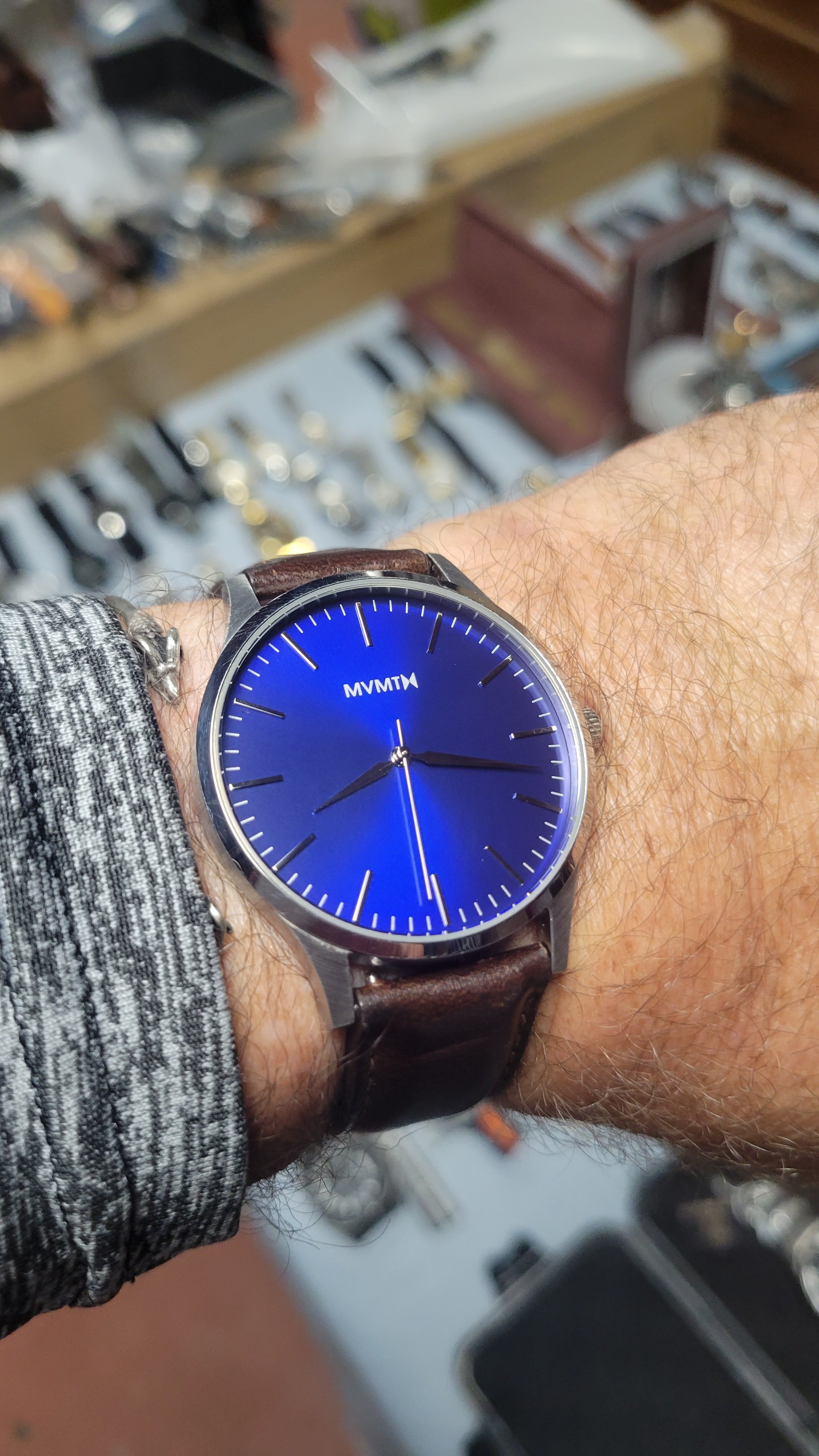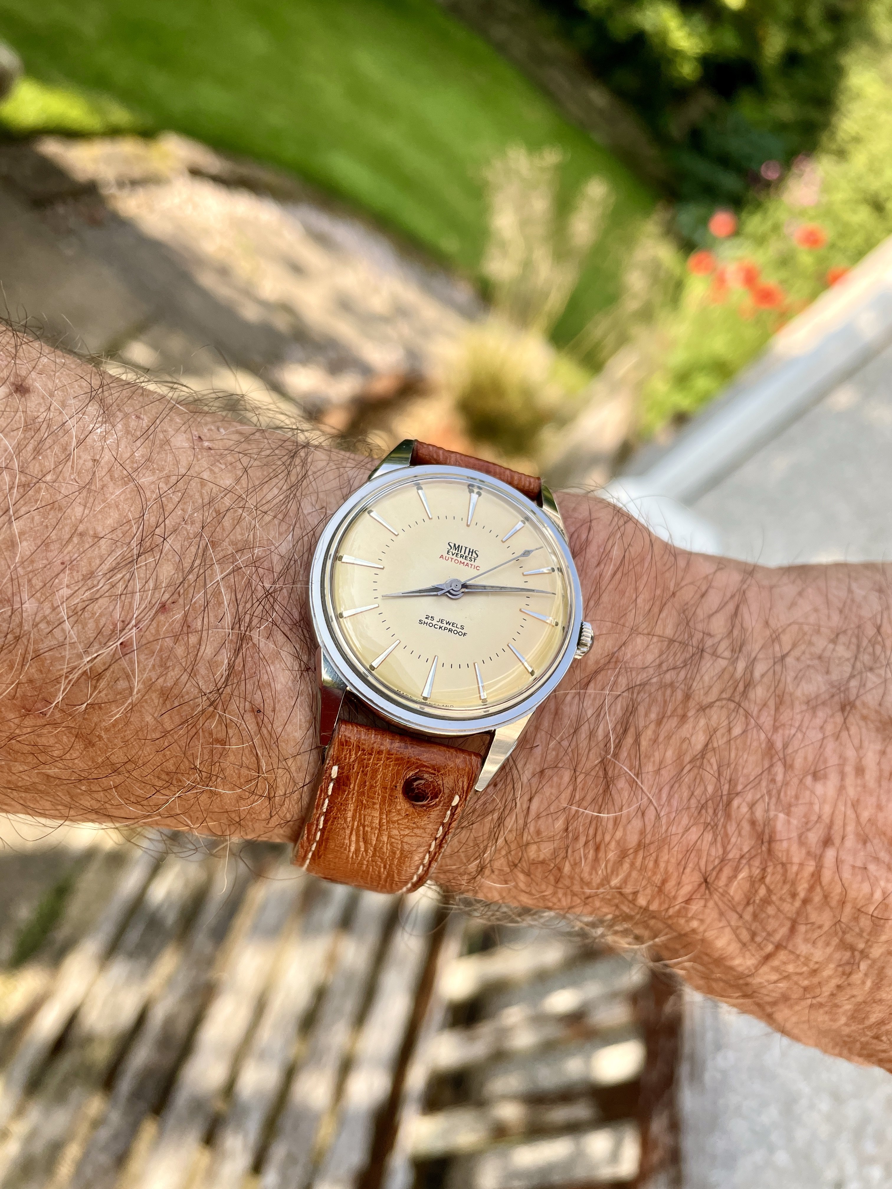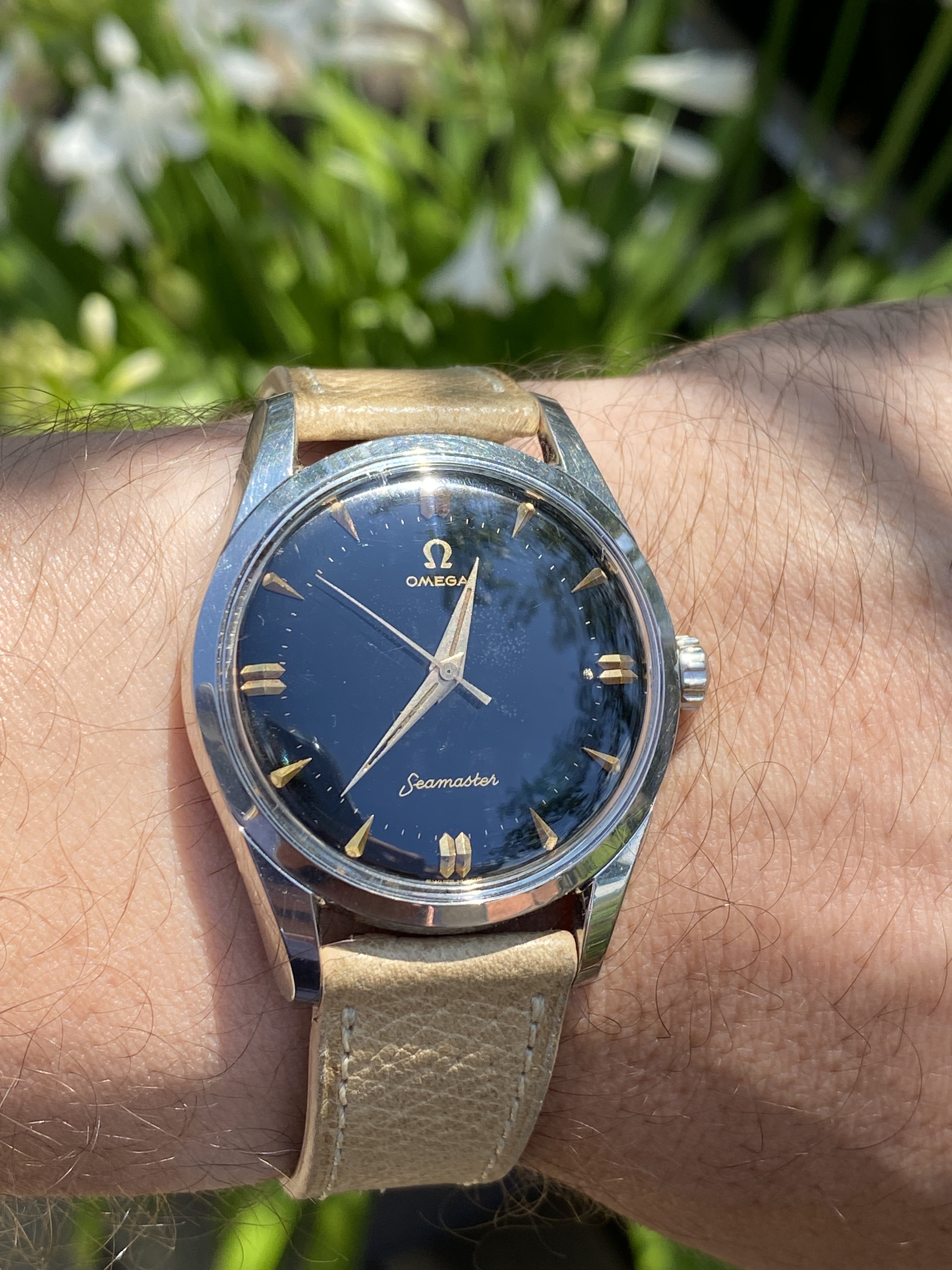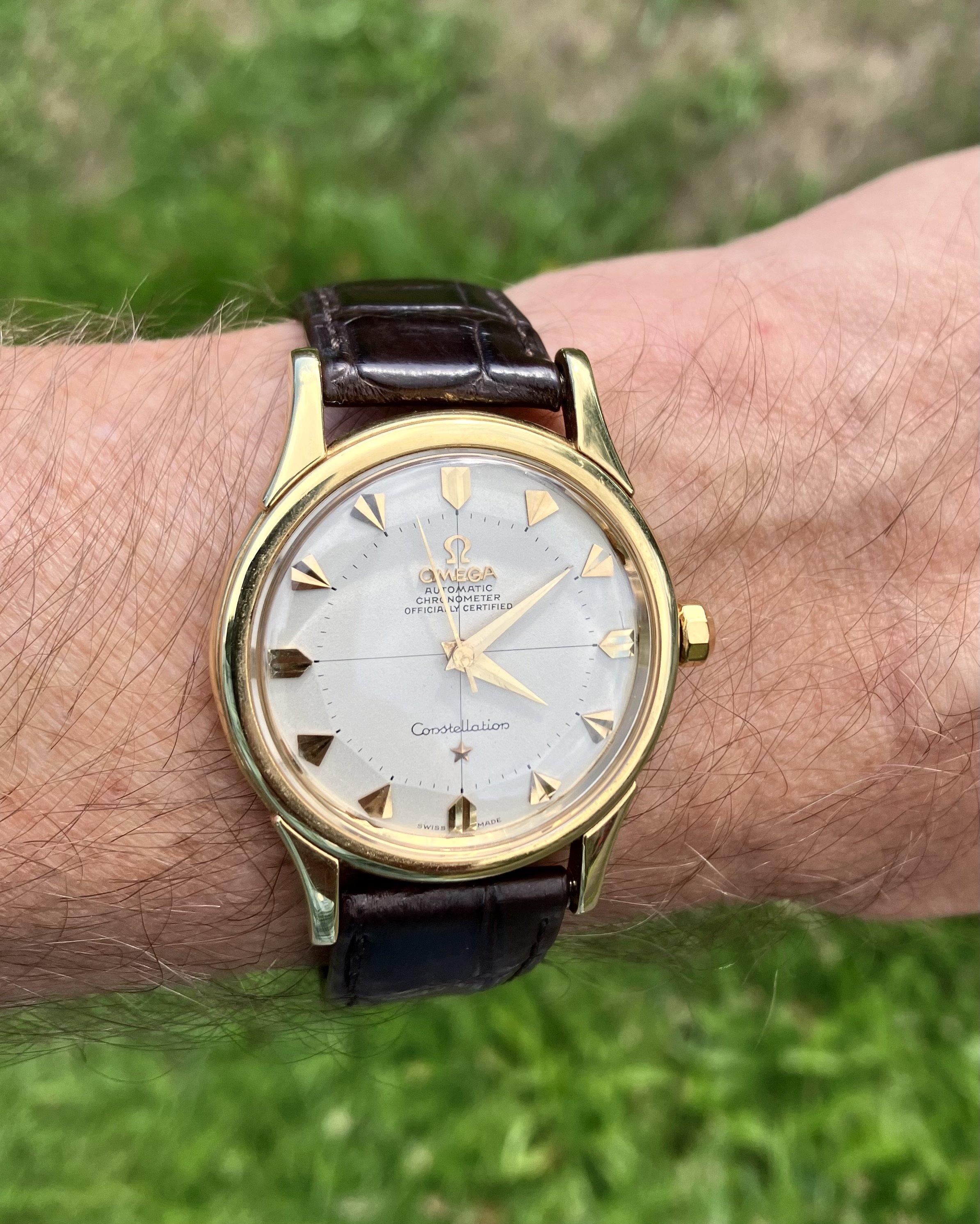 Im wearing my Italian dial Speedy a lot this summer. It鈥檚 a mod with a fully satin-brushed case with pushers and crown a la ST1, paired with the brushed bracelet from the new hesalite Speedmaster 3861, and a color-matched anthracite grey decimal bezel.