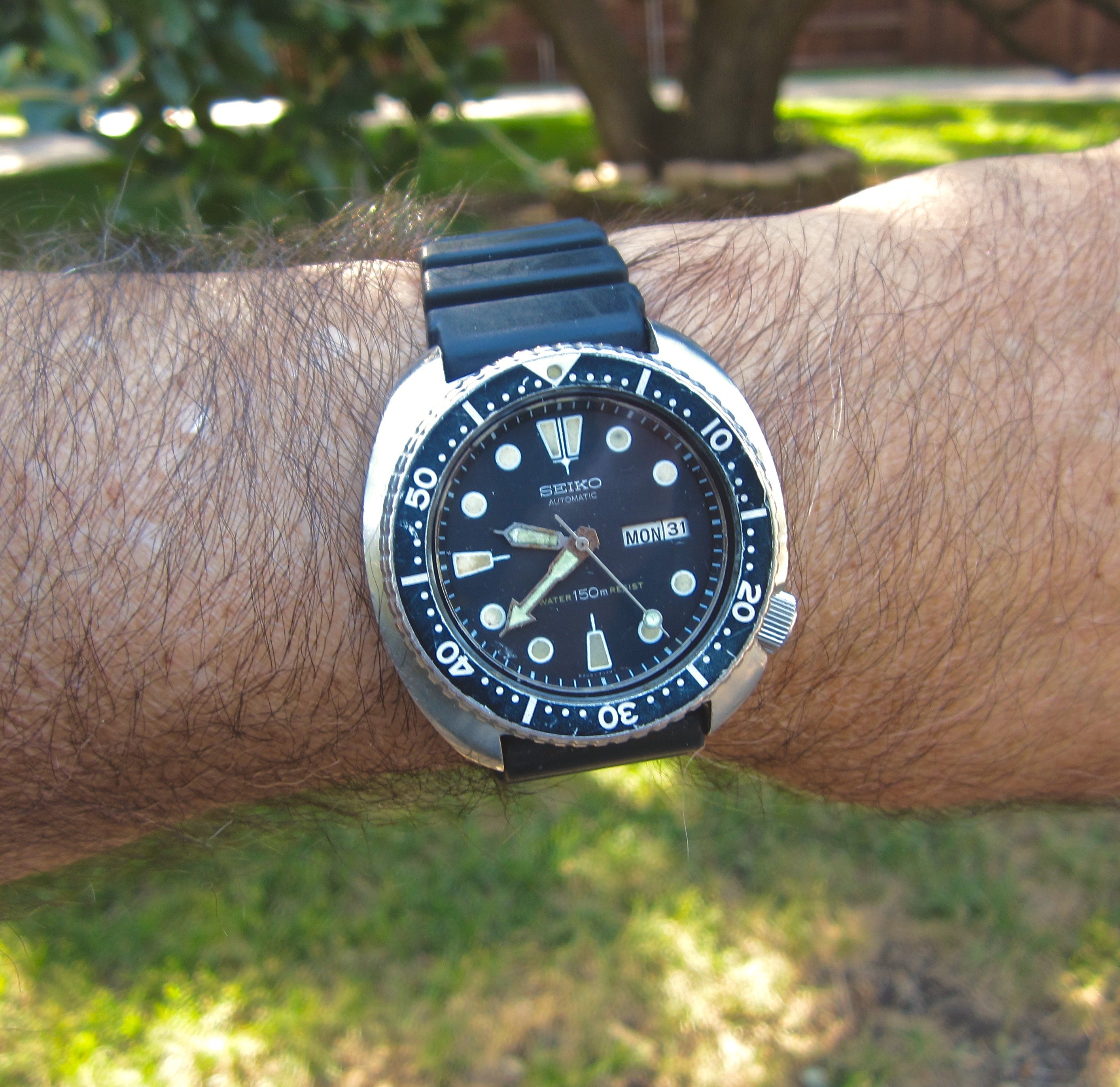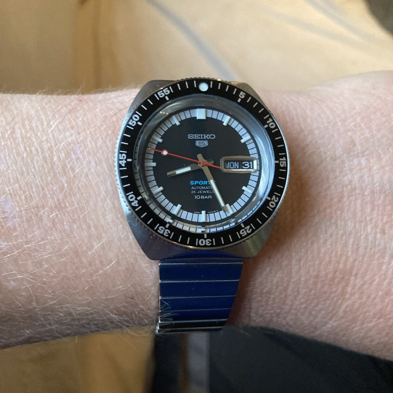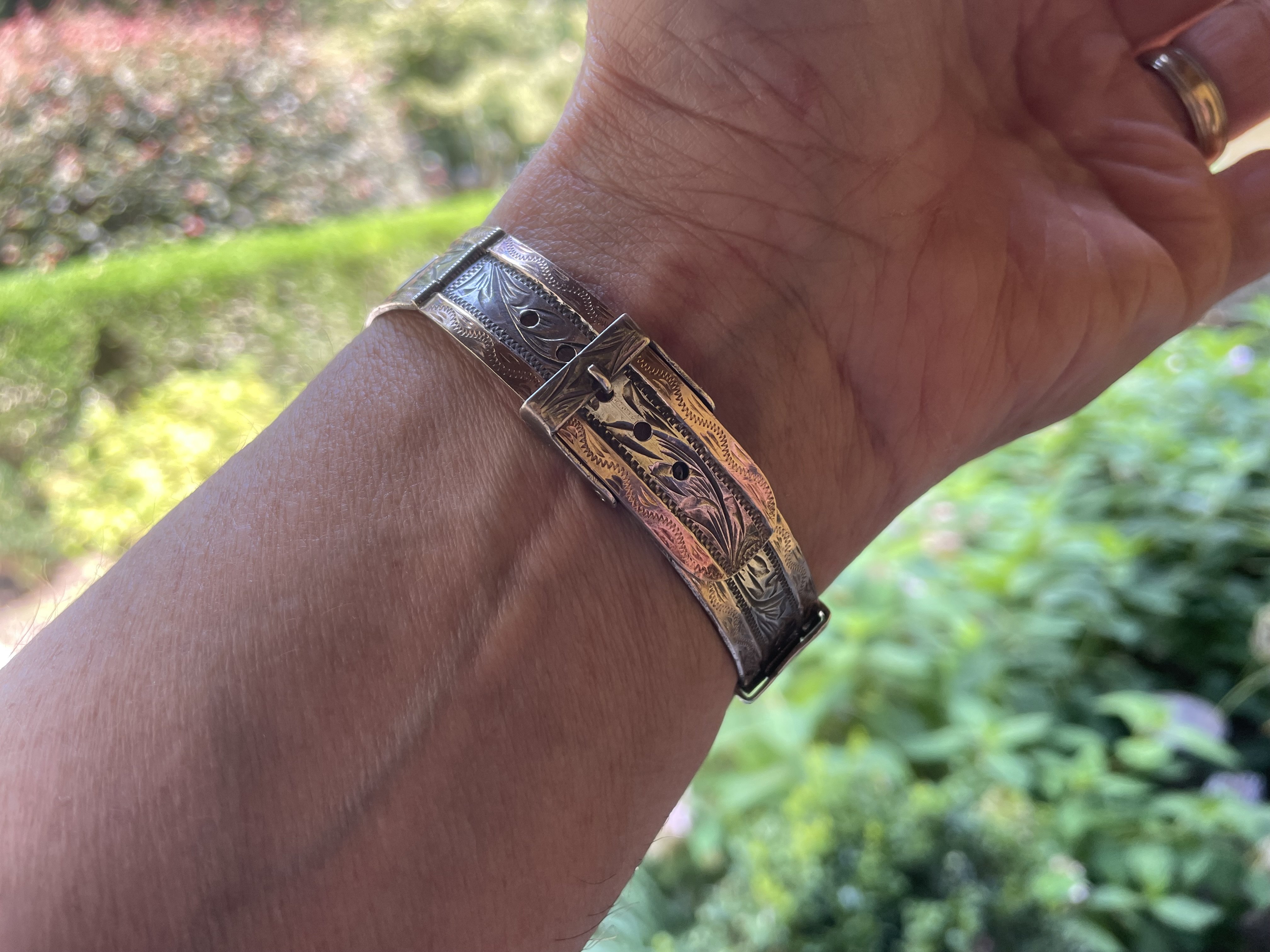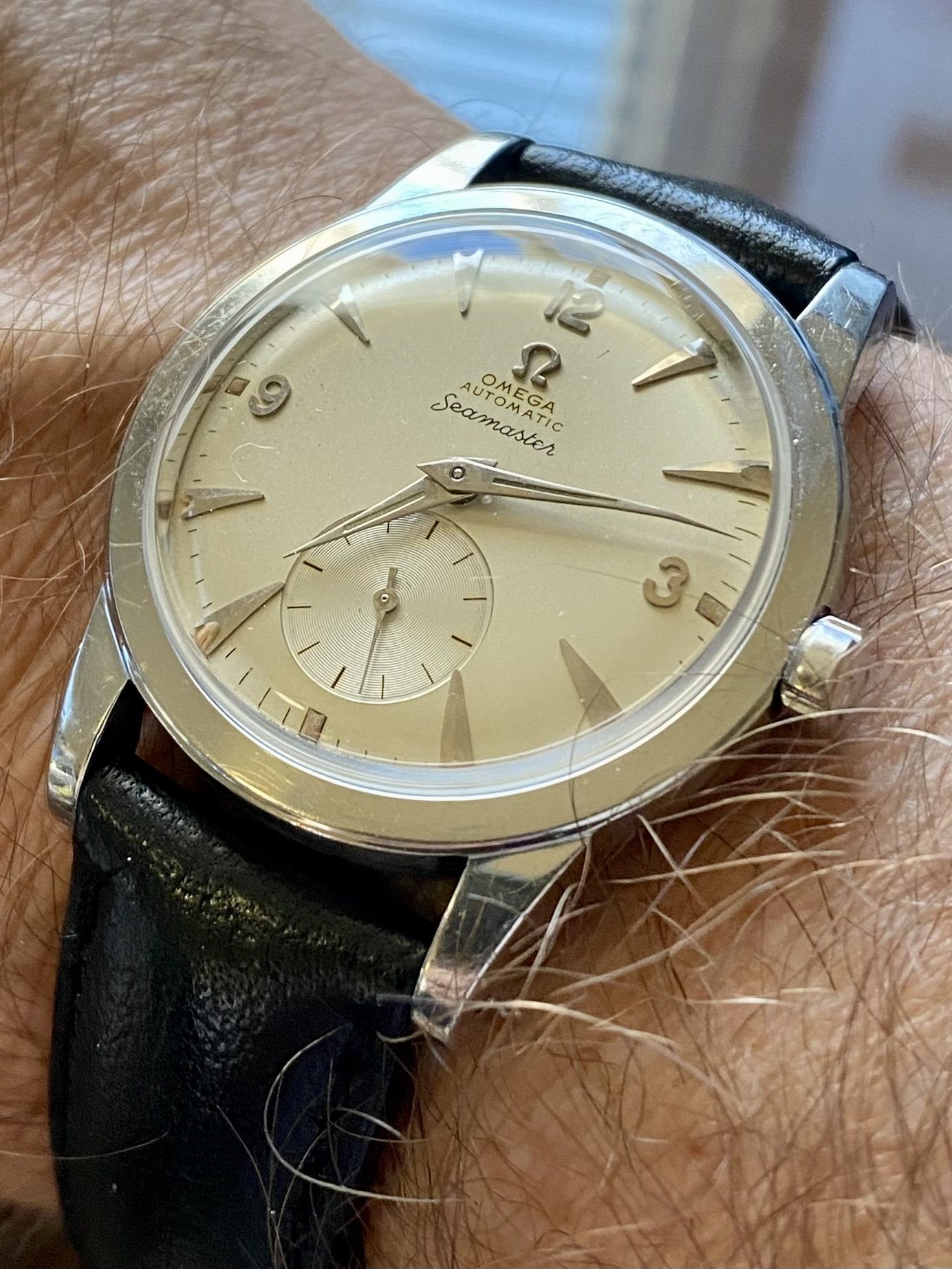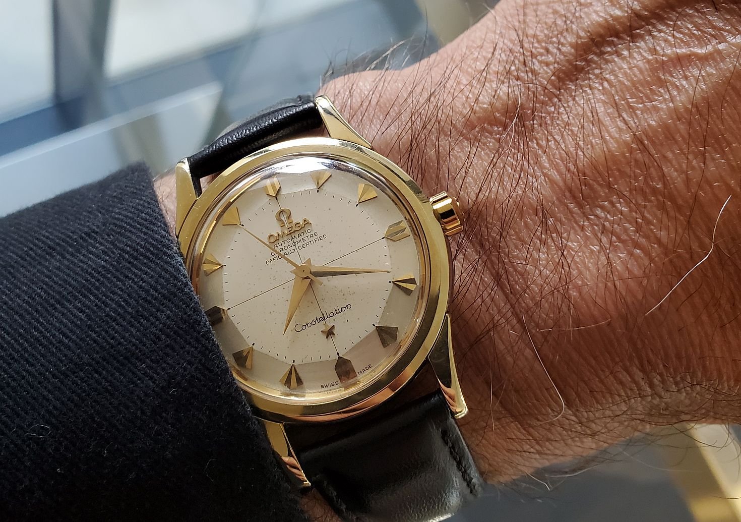 Gave into being a U.S. male senior citizen and recently purchased a Mexican carved silver and gold watch bracelet, coupled here with a 1946-47 LeCoultre bumper.