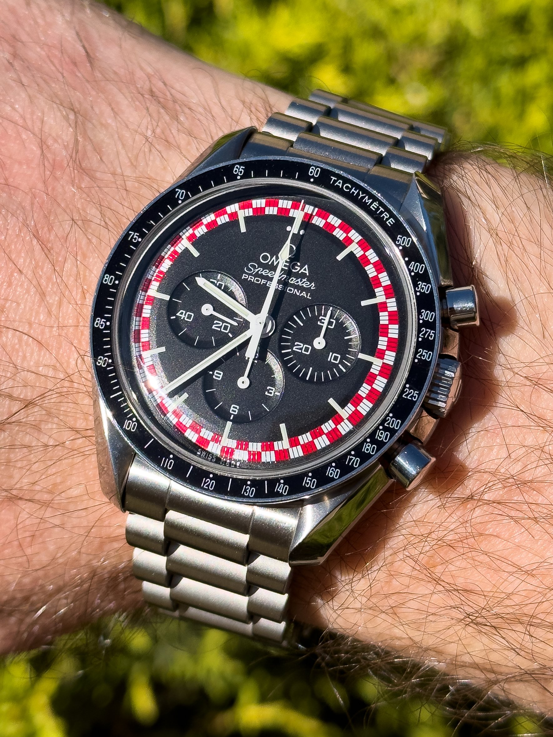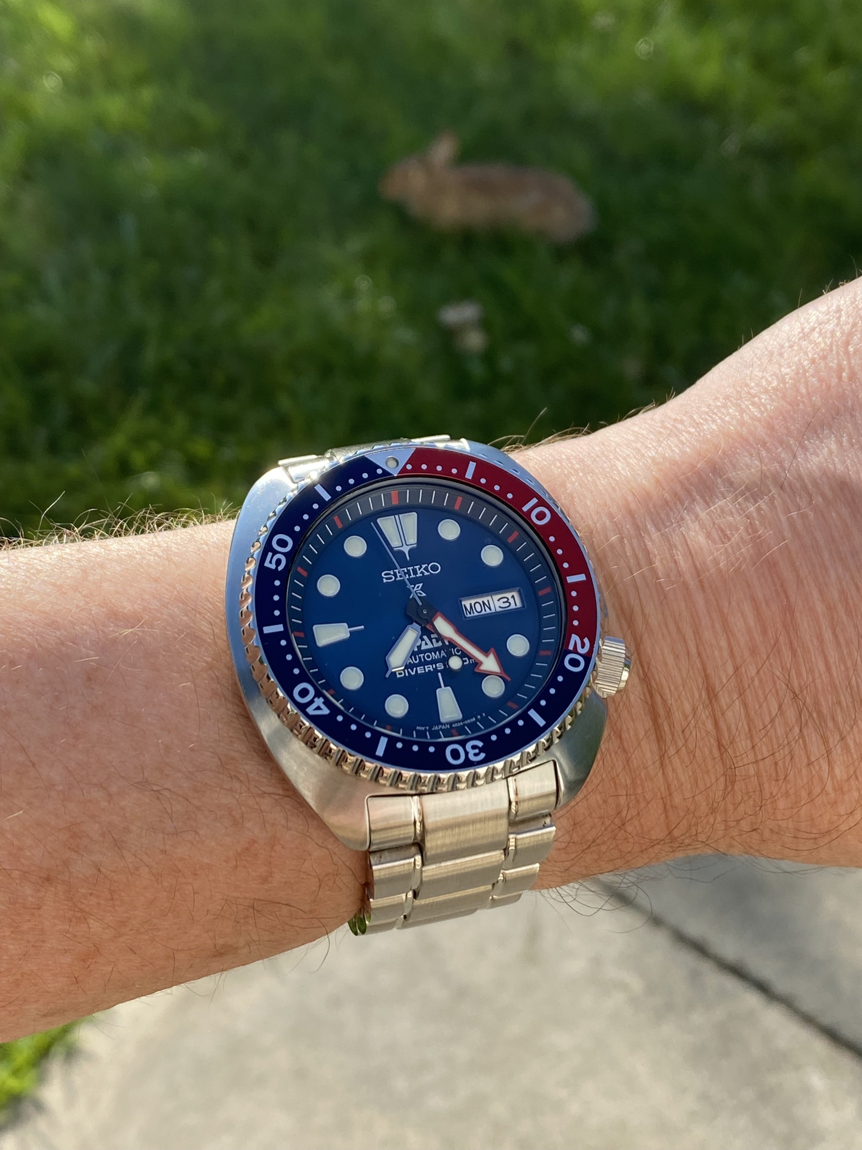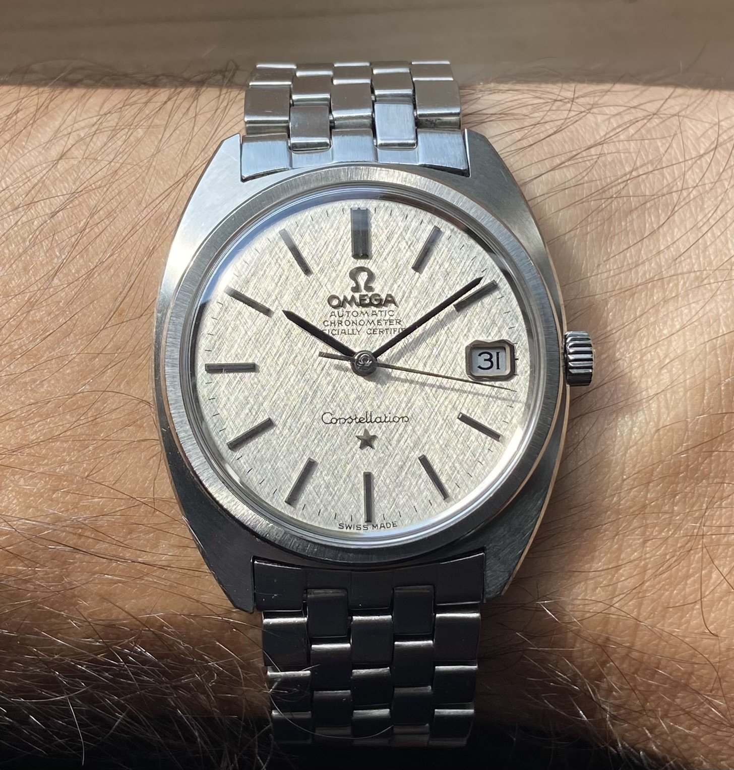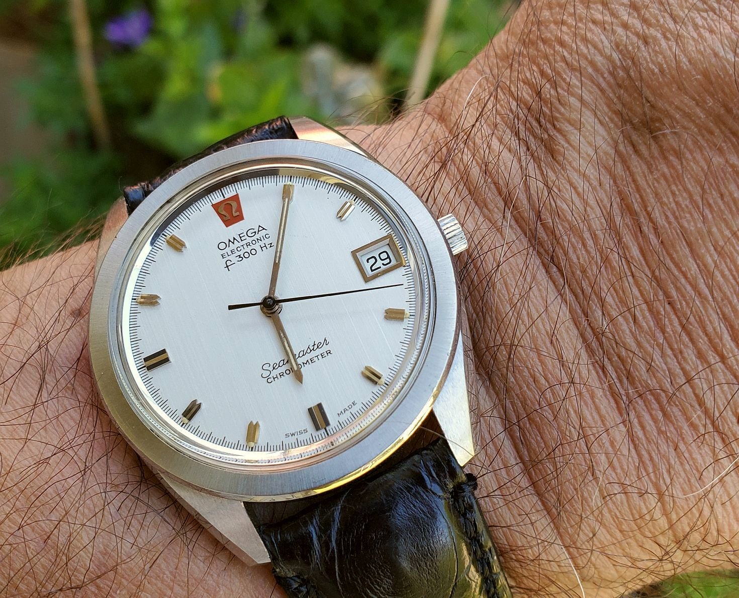 Gave into being a U.S. male senior citizen and recently purchased a Mexican carved silver and gold watch bracelet, coupled here with a 1946-47 LeCoultre bumper.