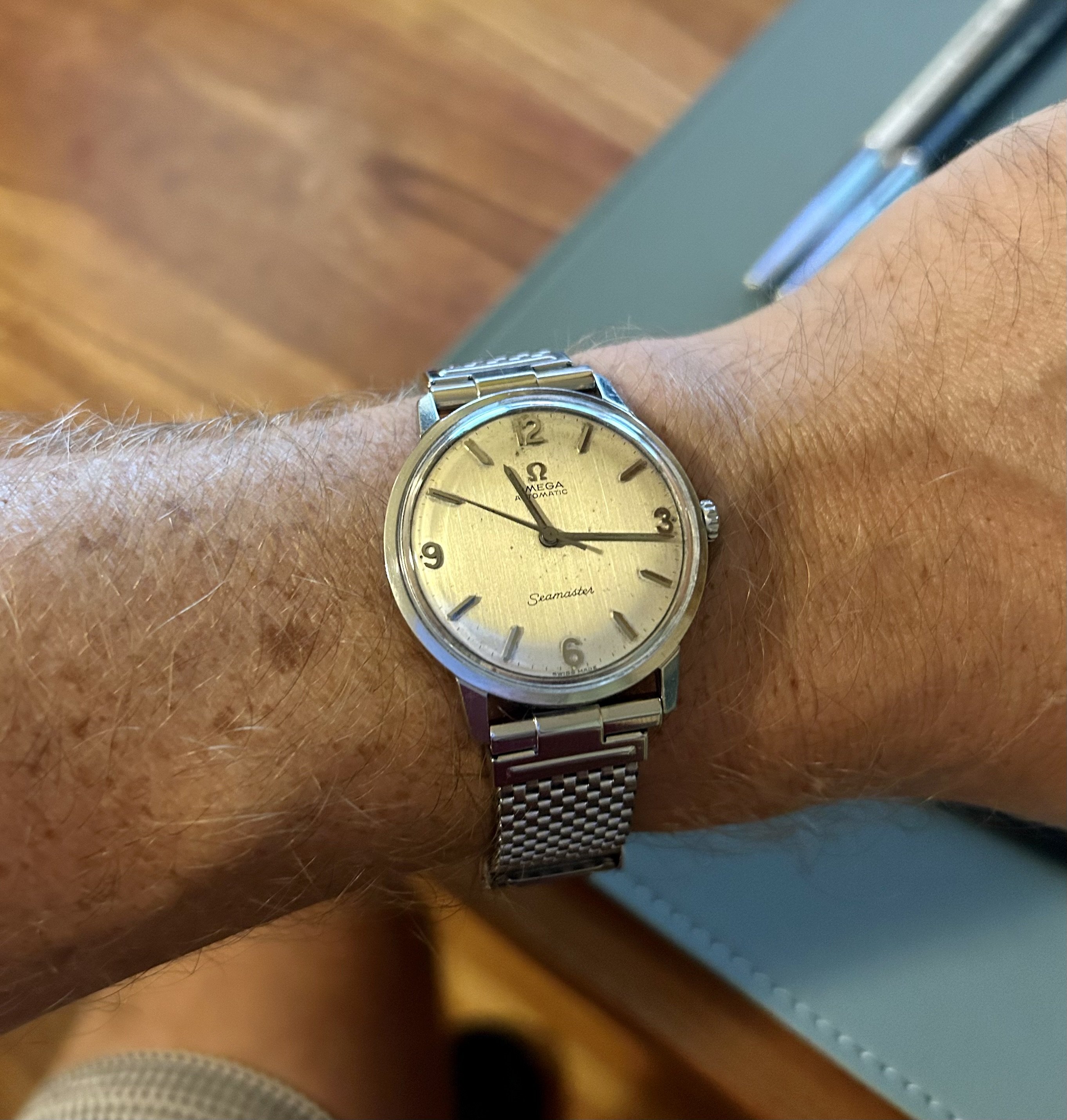 Just back from servicing, my 1966 Omega Türler 'Slim Line' De Ville. It's a Cal. 711 which is supposedly one of Omega's slimmest automatic movements, hence the special lower case extended typeface being used for the word 'automatic', as well as the extremely thin Omega logo. It's not an expensive watch or a watch that draws much attention, but that's why I love it and why I also love Omega who I believe are the masters of understated elegance.