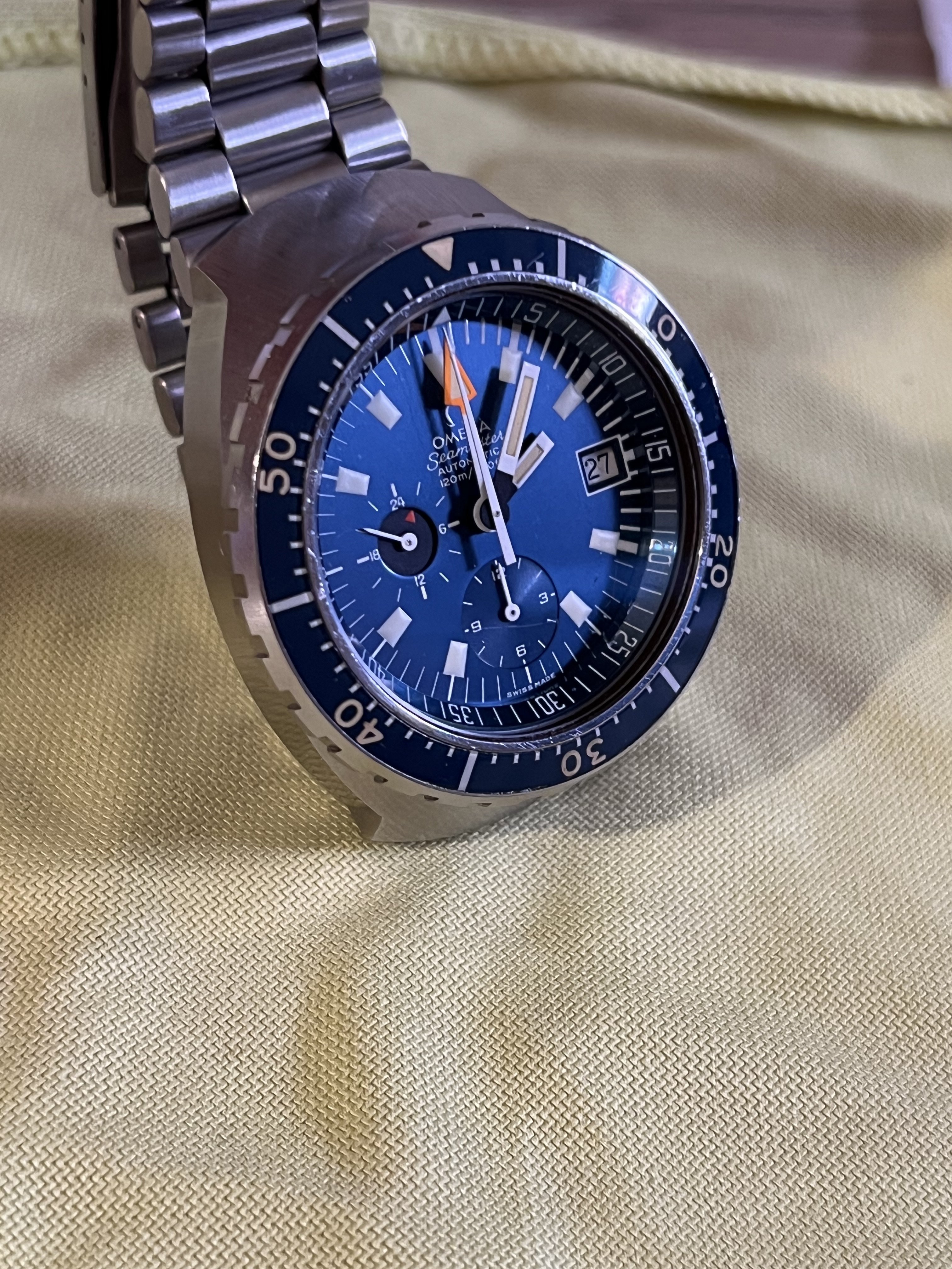 A Super 70’s masterpiece like this, needed a killer bracelet to match. So, what better choice than a full on 70’s coffin-link!! - Ca. 1975 Gruen "Big Triangle" 200M Diver - Ref 754 - powered by a 25J, ETA 2783.