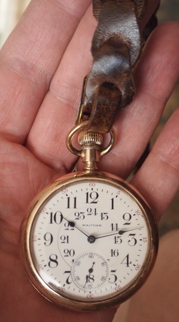 Along with the Rolex I posted on Saturday, Sunday, I will wear my 18-size, 1892 Waltham CRTS (Canadian Railway Time Service), 17-jewels (6 in gold chatons), lever set, 24-hour double sunk enamel dial, 8 adjustments, circa115 years ago. Worn on my @Duracuir1 leather lanyard (thank you Steve). The 1892 model Waltham is a favourite of mine. This is not the original case for this watch. I expect it might have originally been in an A W C Co. (Canadian made American Watch Case Co.) case.