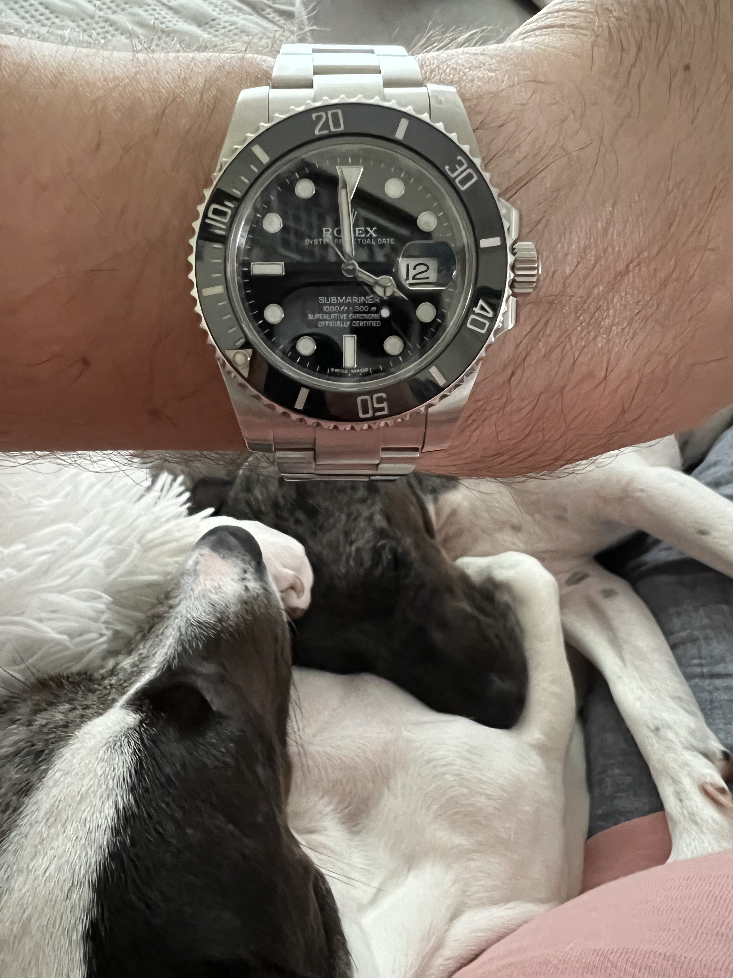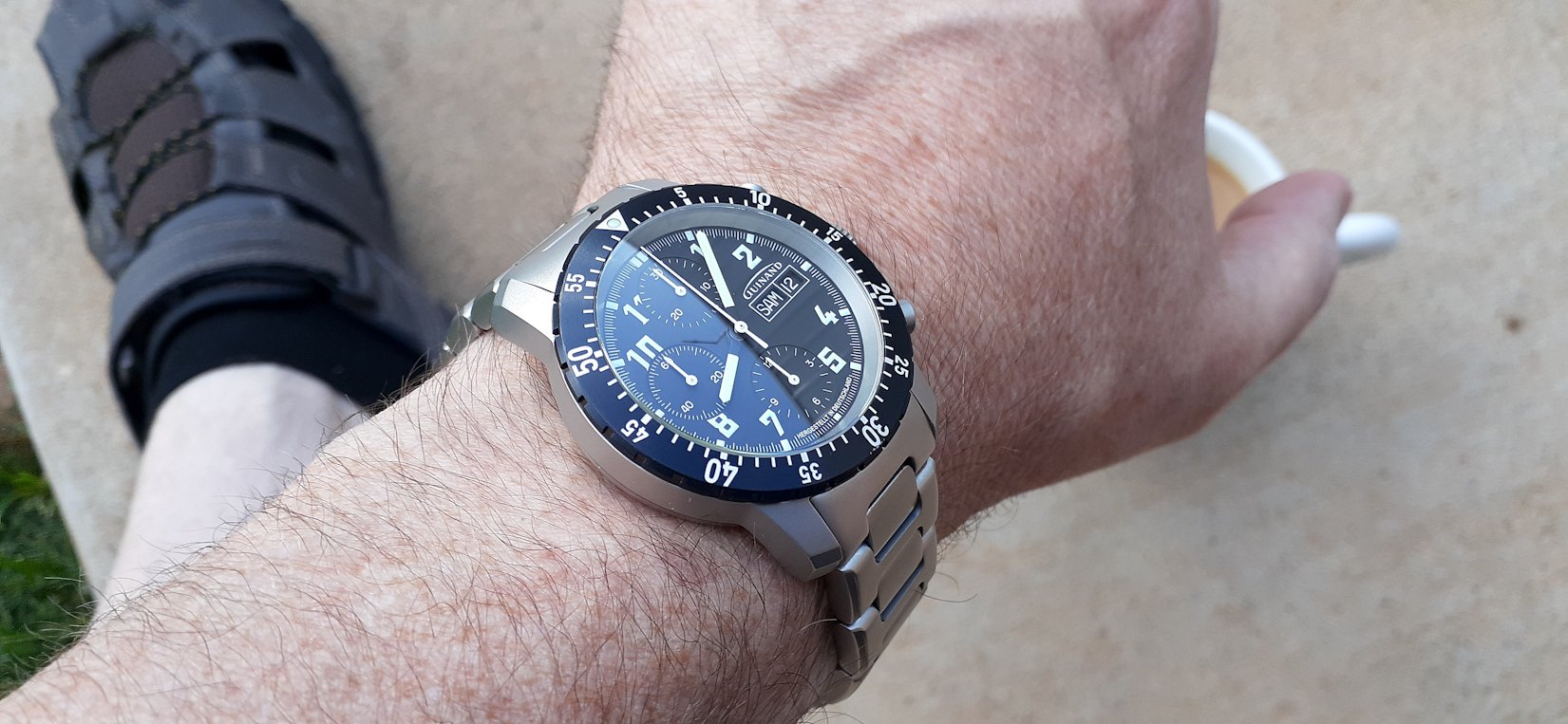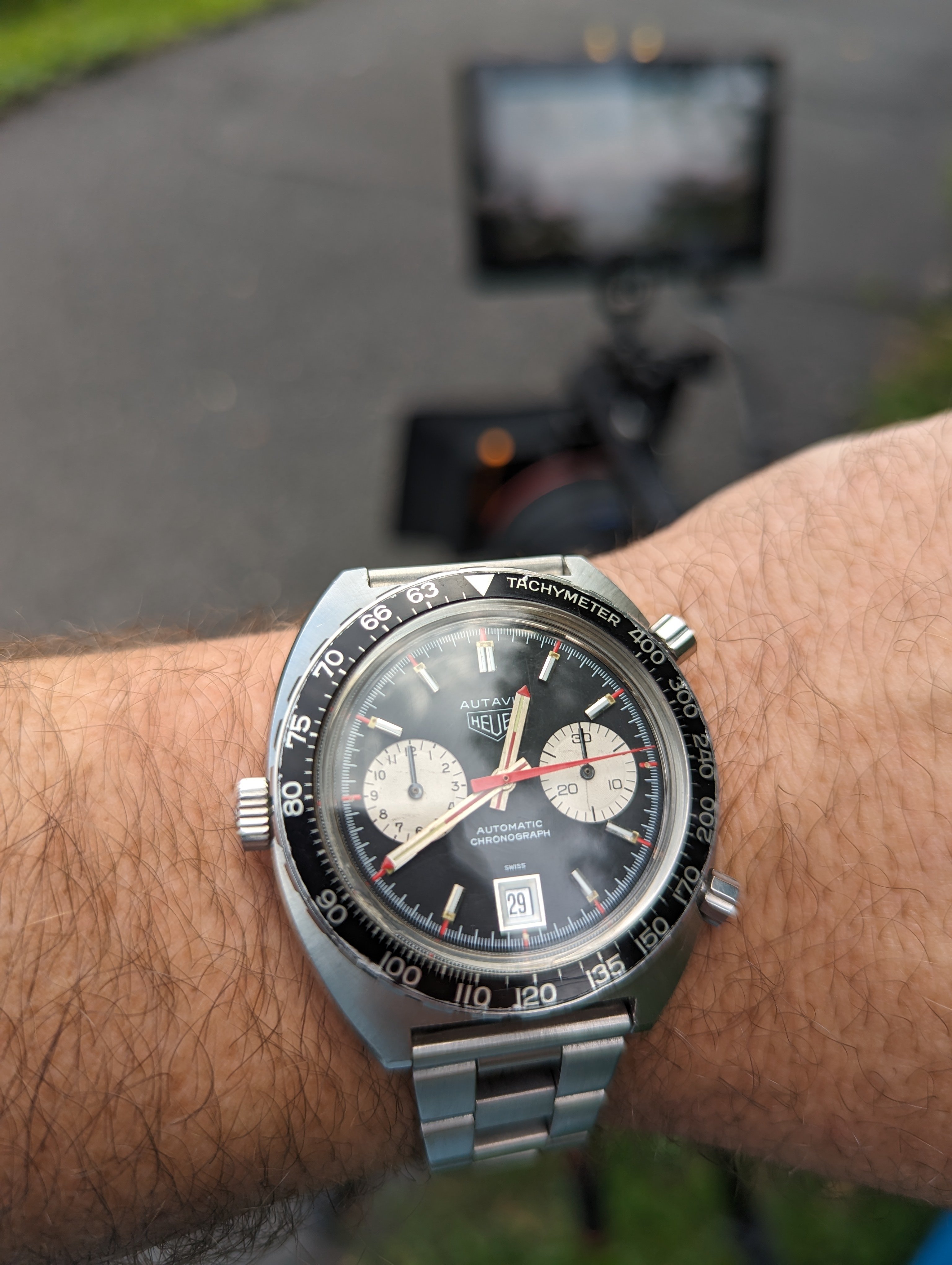 Home! Didn’t take too long for me to check out the watch box, and settle on a brutish chronograph for unpacking duties. I figure the car is more likely to get dinged then the watch if I’m less than subtle unpacking…have a great afternoon/evening OF!