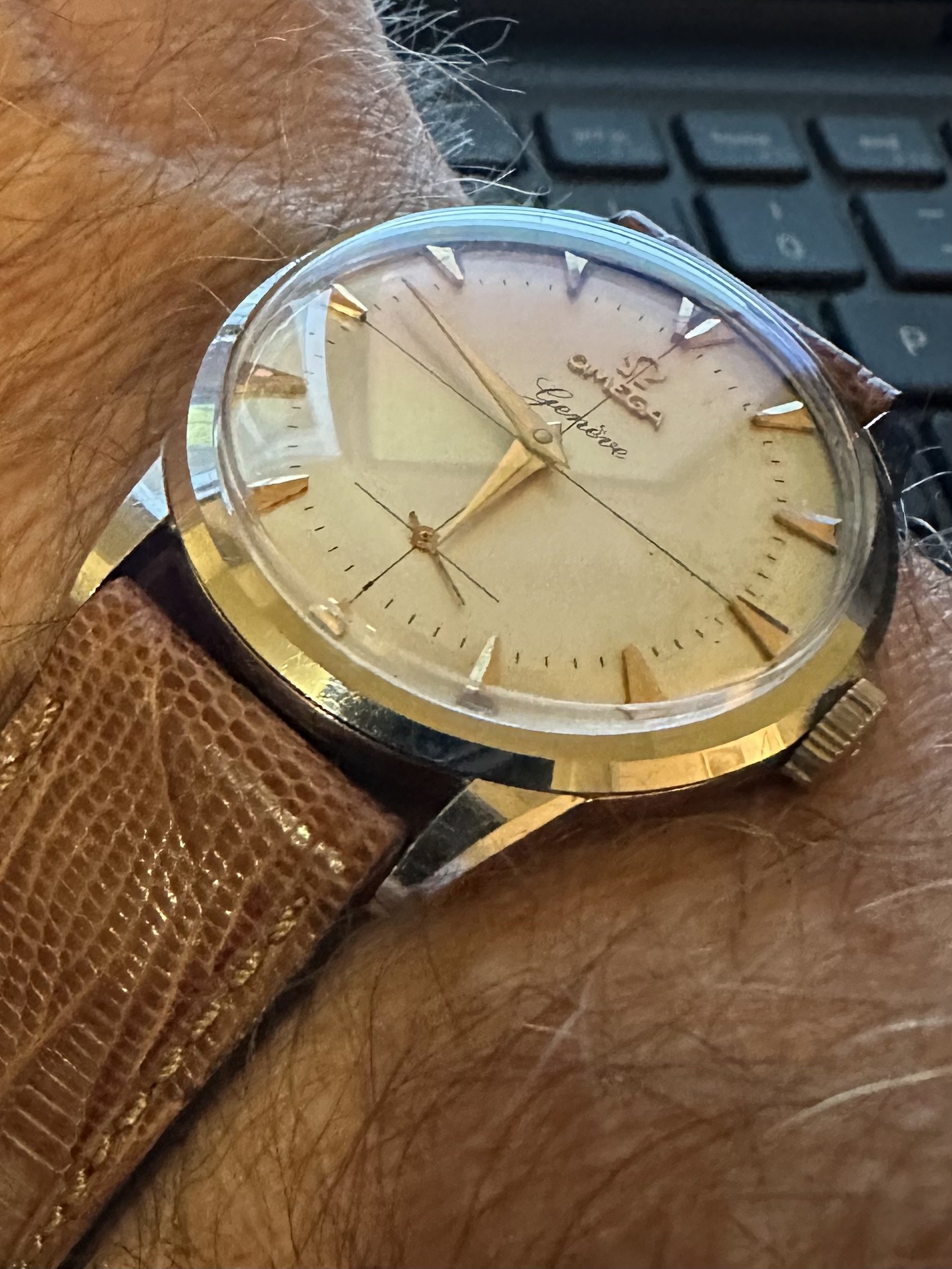 Posts 9,767 Likes 54,803 gbesq ·Aug 14, 2023 Getting an early start today with the 1959 Geneve 2903 on a teju lizard strap. Edited: Aug 14, 2023