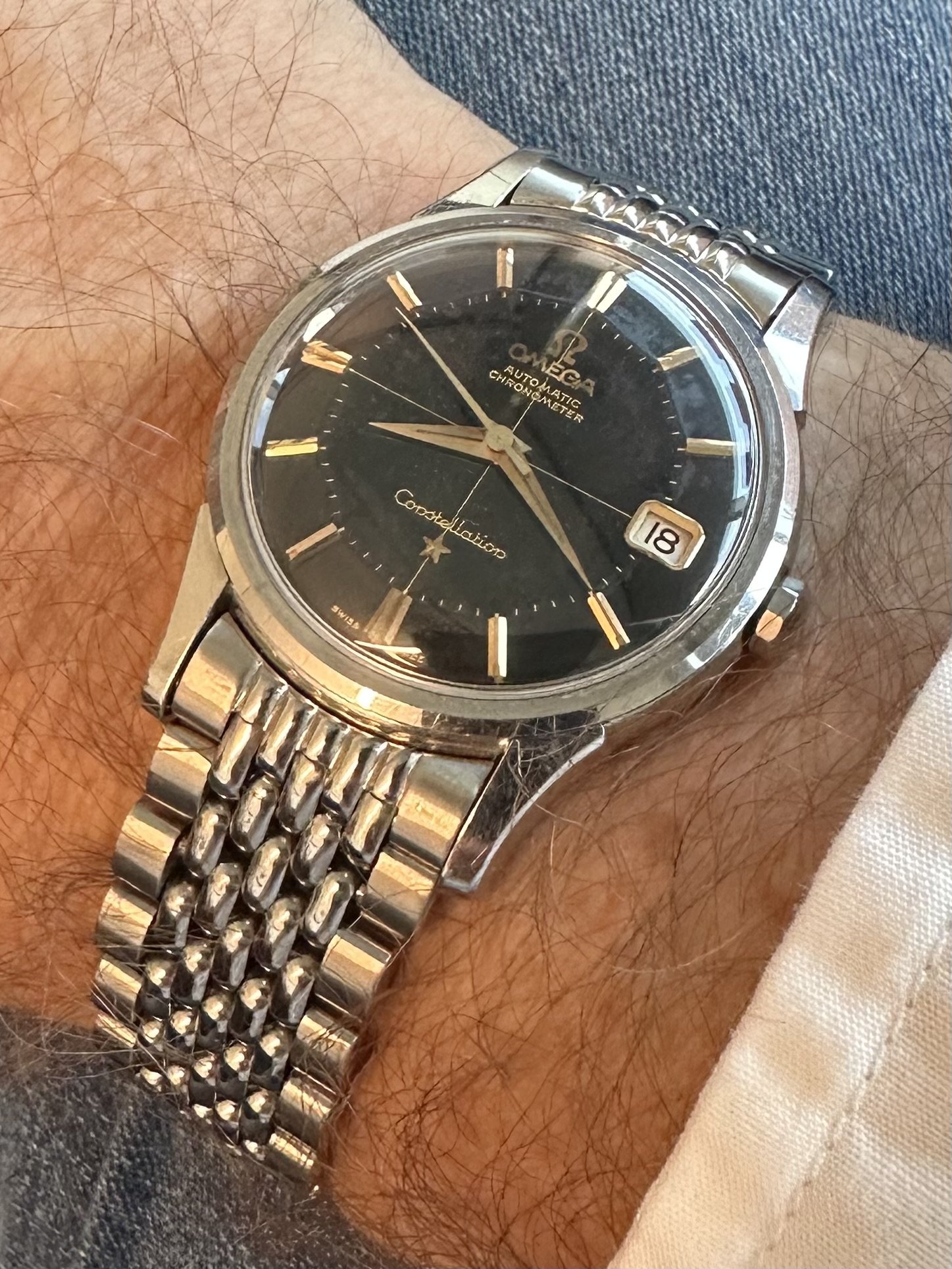 Posts 9,765 Likes 54,775 gbesq ·Aug 18, 2023 Good morning all. Original black dialed pie pan Constellation reference 14393.