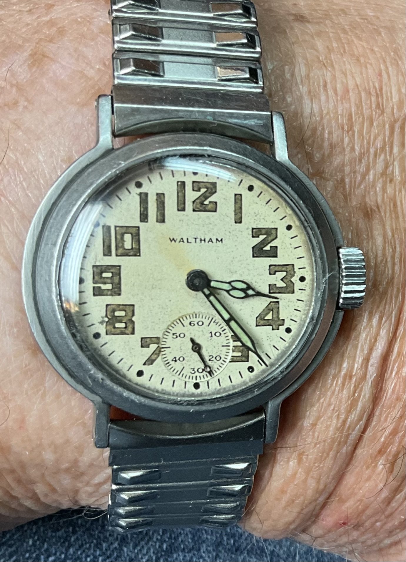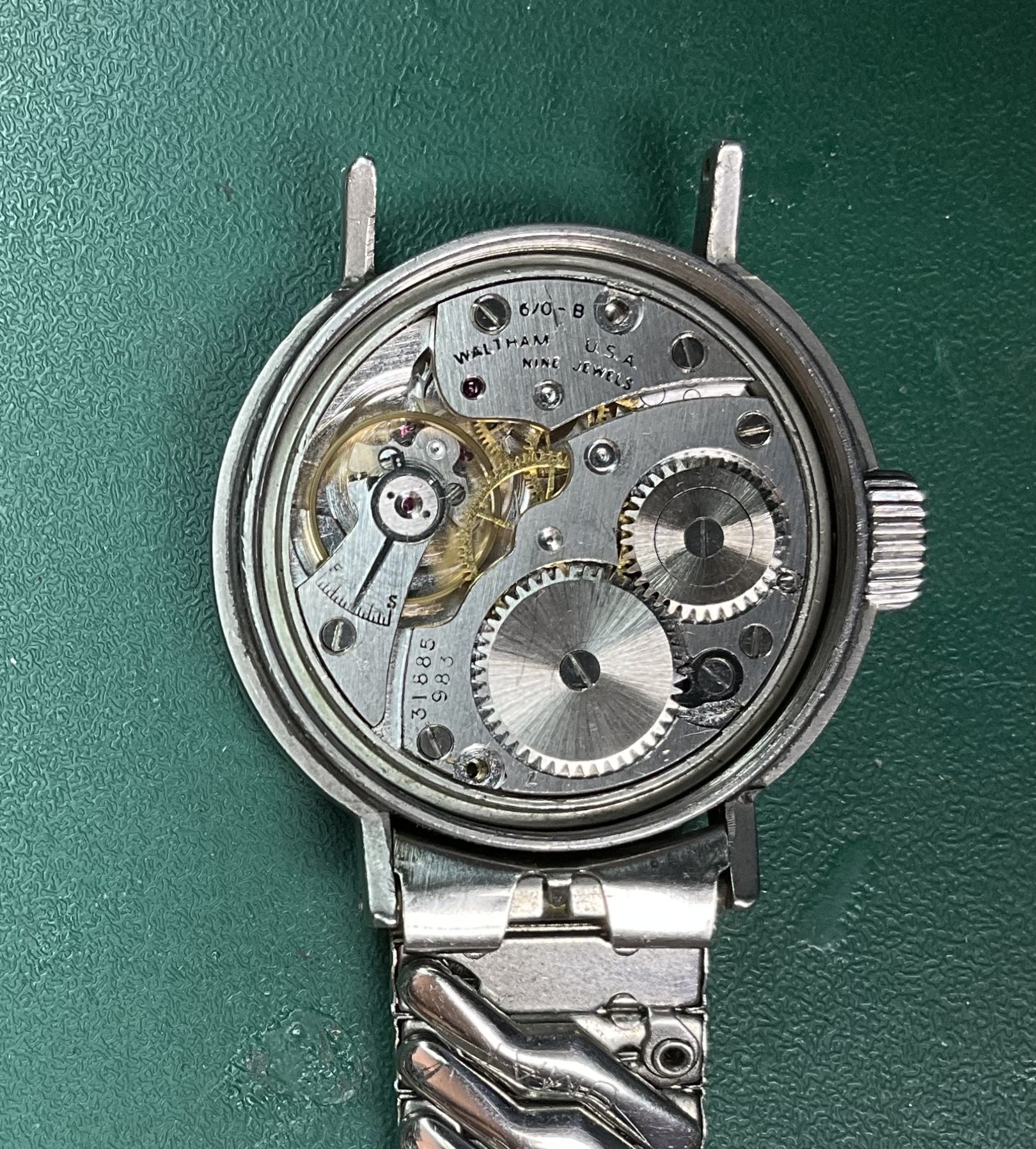 I’ve owned this one for nearly 50 years, and I don’t remember ever showing in this thread. It is a 6/0 size, 9-jewel, 1942 model Waltham made circa 1943 according the the pocketwatchdatabase site. There are no markings to indicate it was military, and I suspect the case back may not be original to the watch. Manual wind, very basic, but a good runner after having been serviced today.