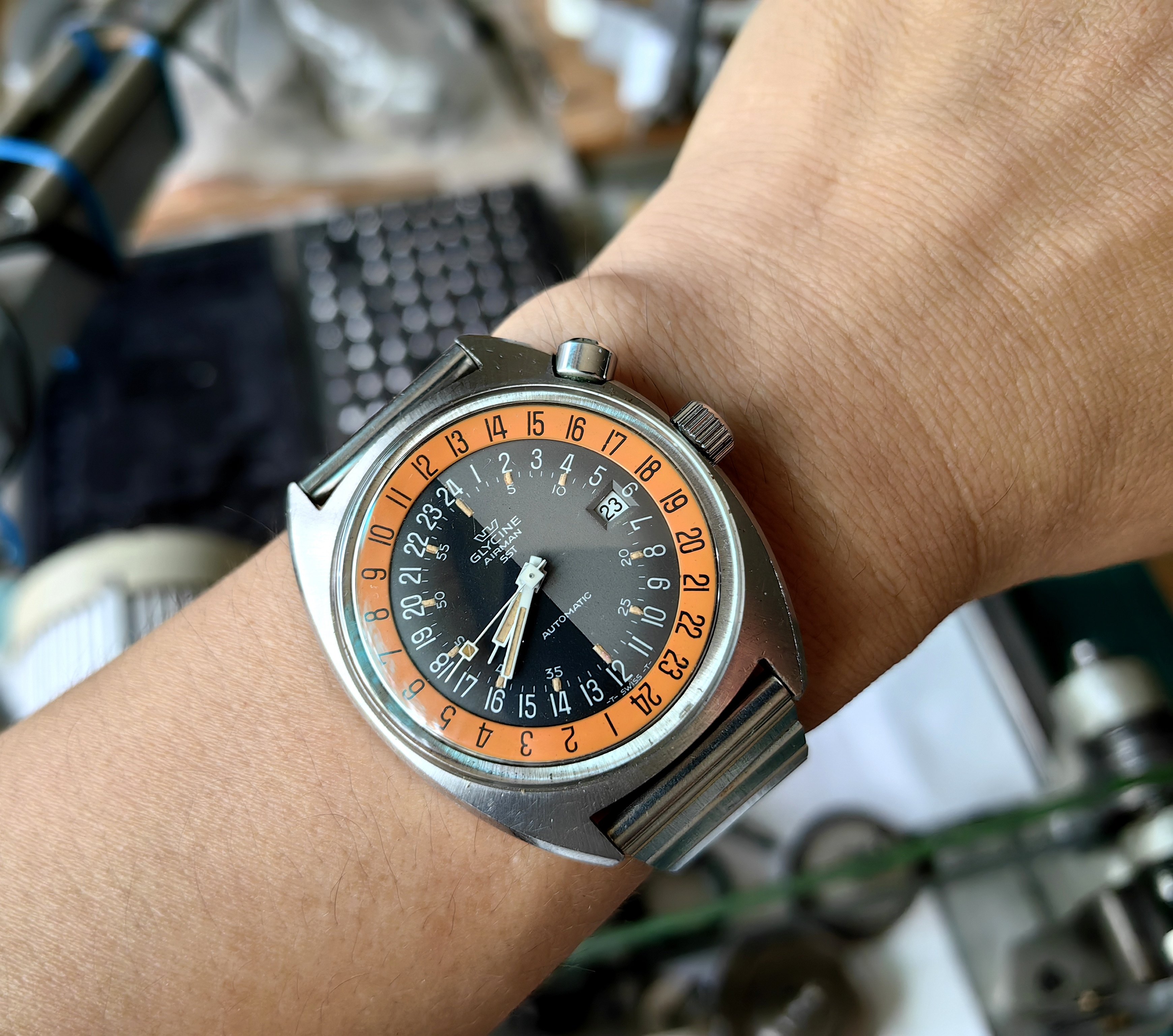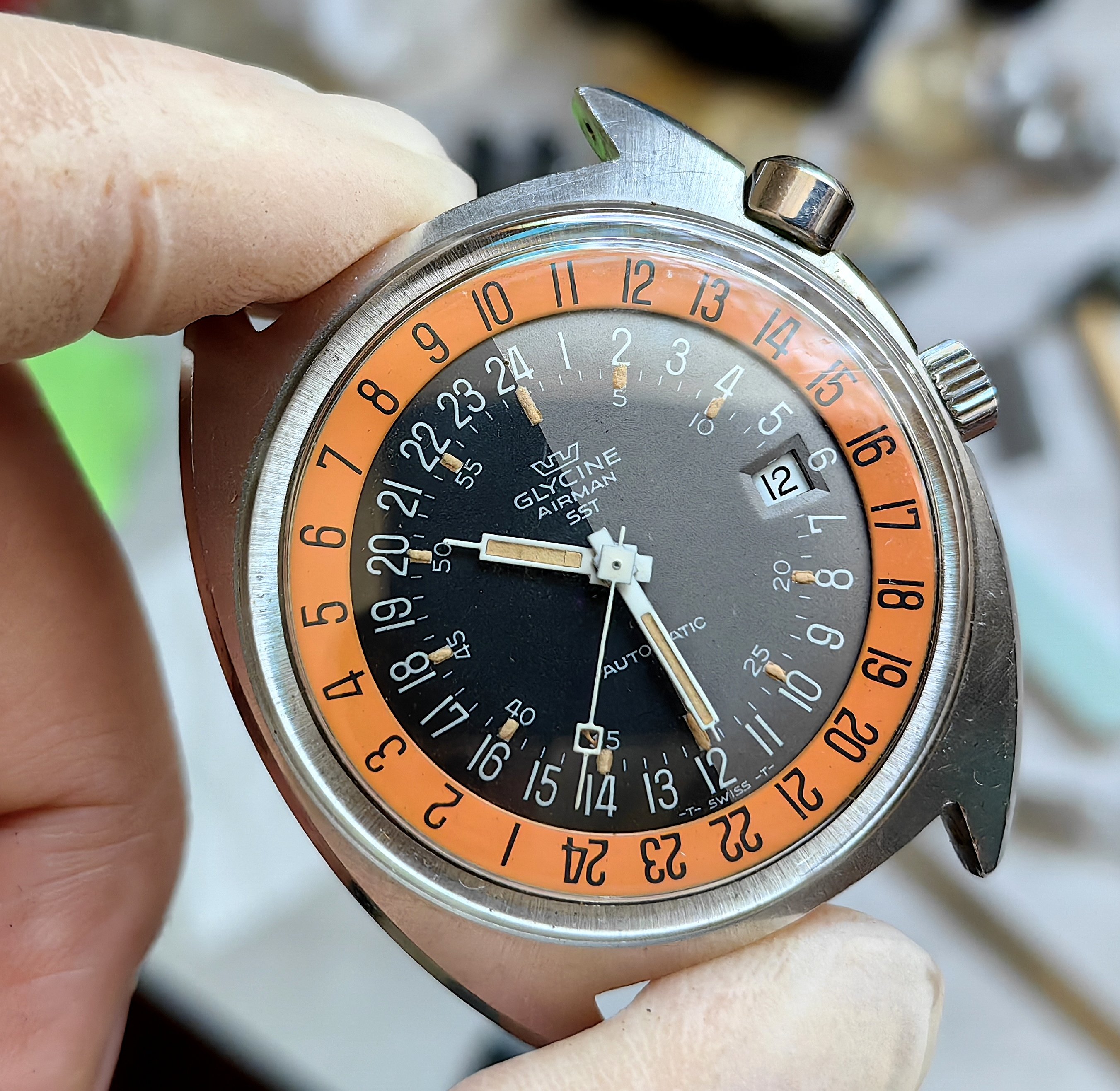Haven't worn this one in a few years. It's beat, but it's serviced and keeps suitable time and it has a neato swan logo on it.