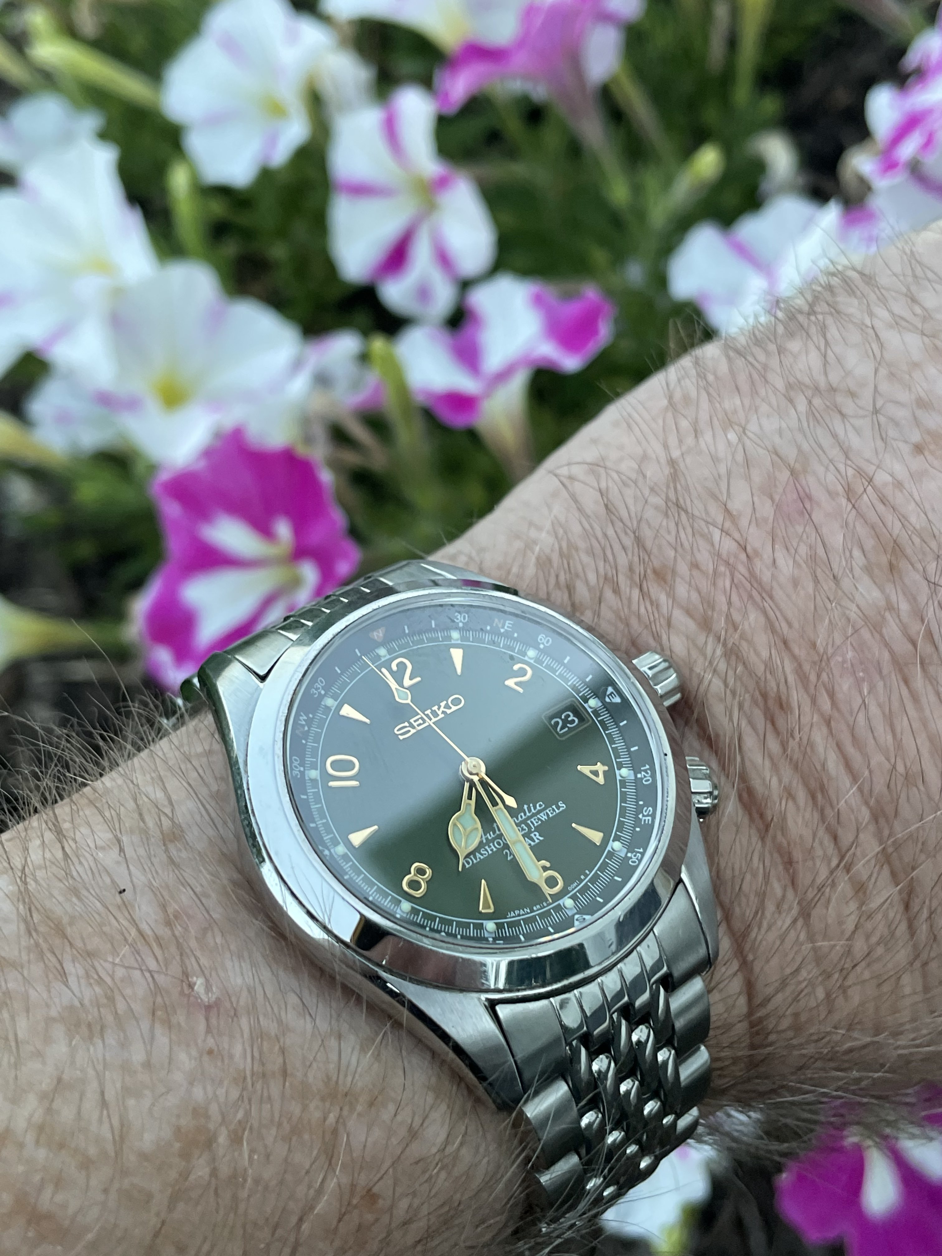 I notice the SARB017 prices coming back to earth. For a while they were selling crazy on Reddit. Although I keep it on a bracelet I think a good leather band makes the dial pop. Cool clouds over yonder