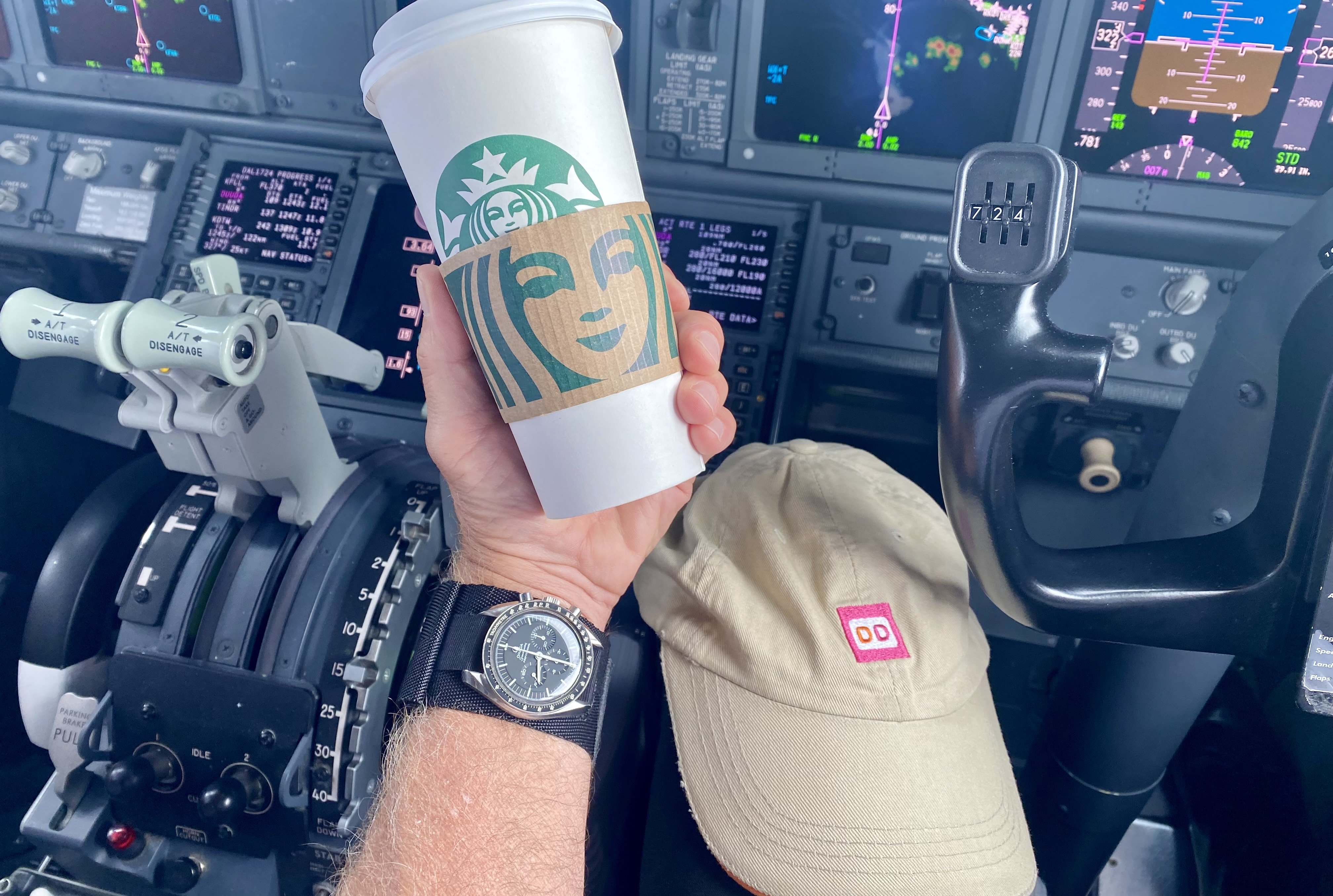 Digging the total chaos in the cockpit…Starbucks coffee and my Dunkin’ hat…still sporting my -71 on a Rothco protective band (protective flap retracted for pic)…