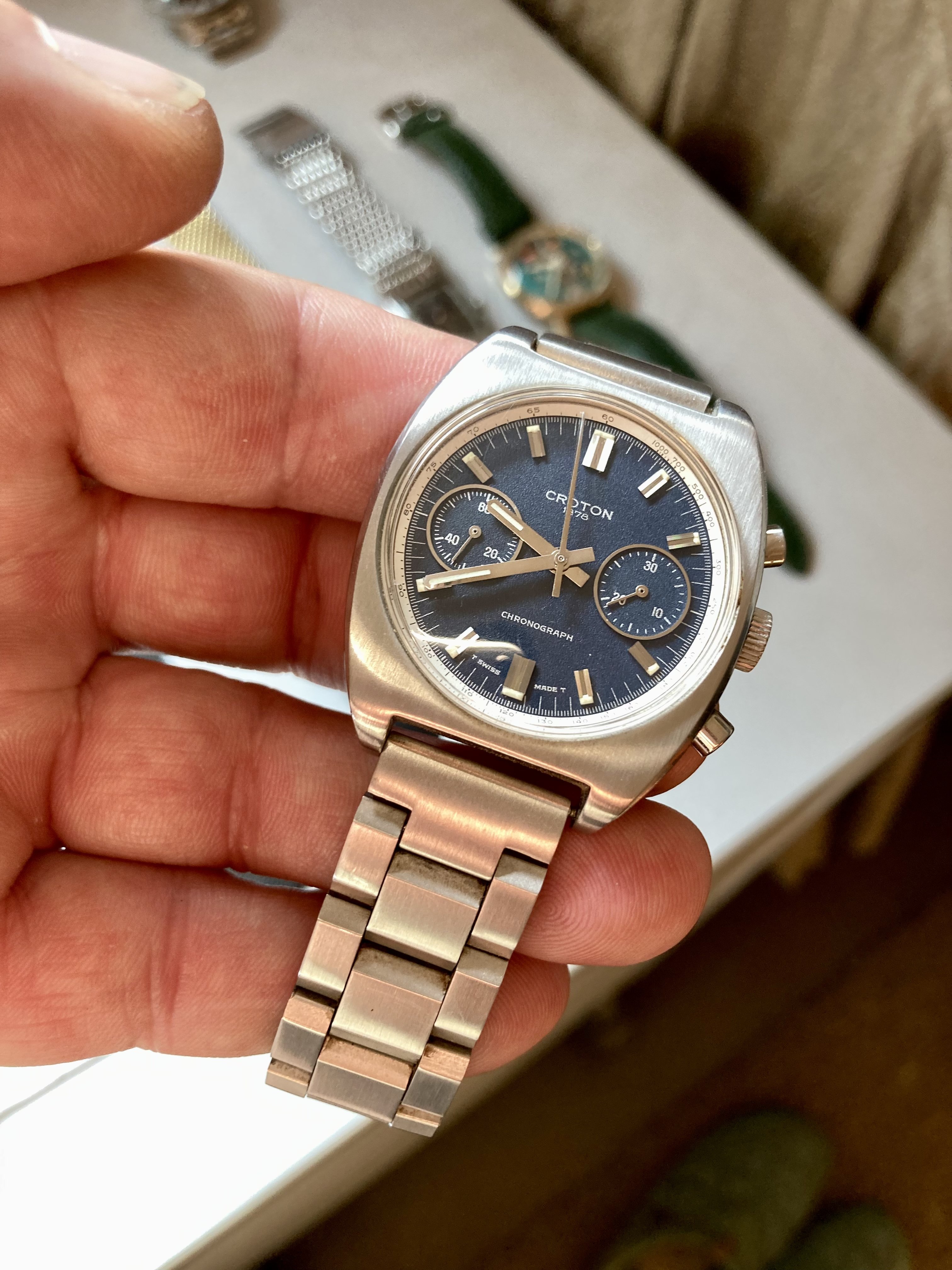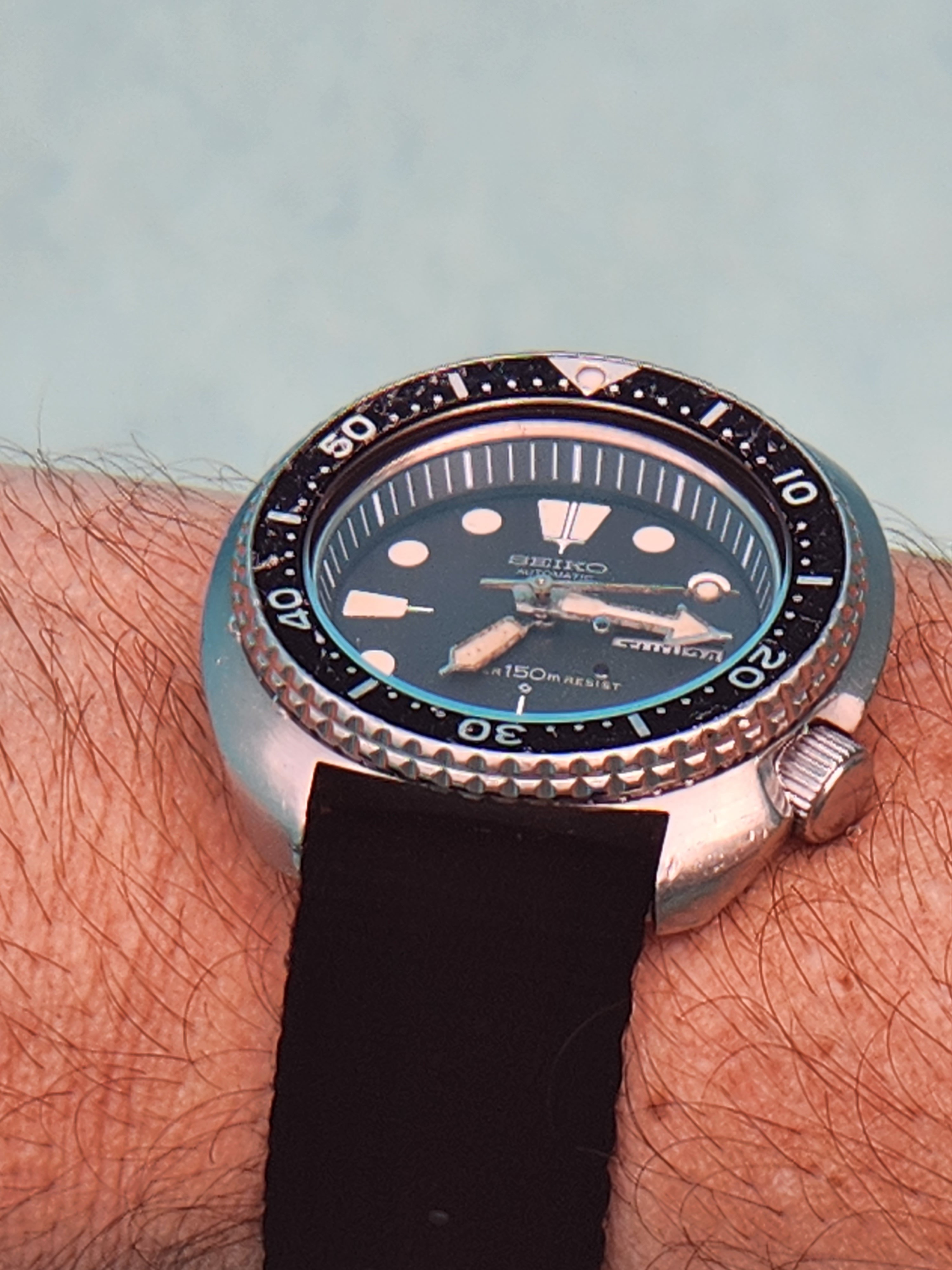 Posts 213 Likes 669 Bing813 ·Aug 25, 2023 In the pool after a new crystal and gasket set….. 1977 with no service marks. Still running strong