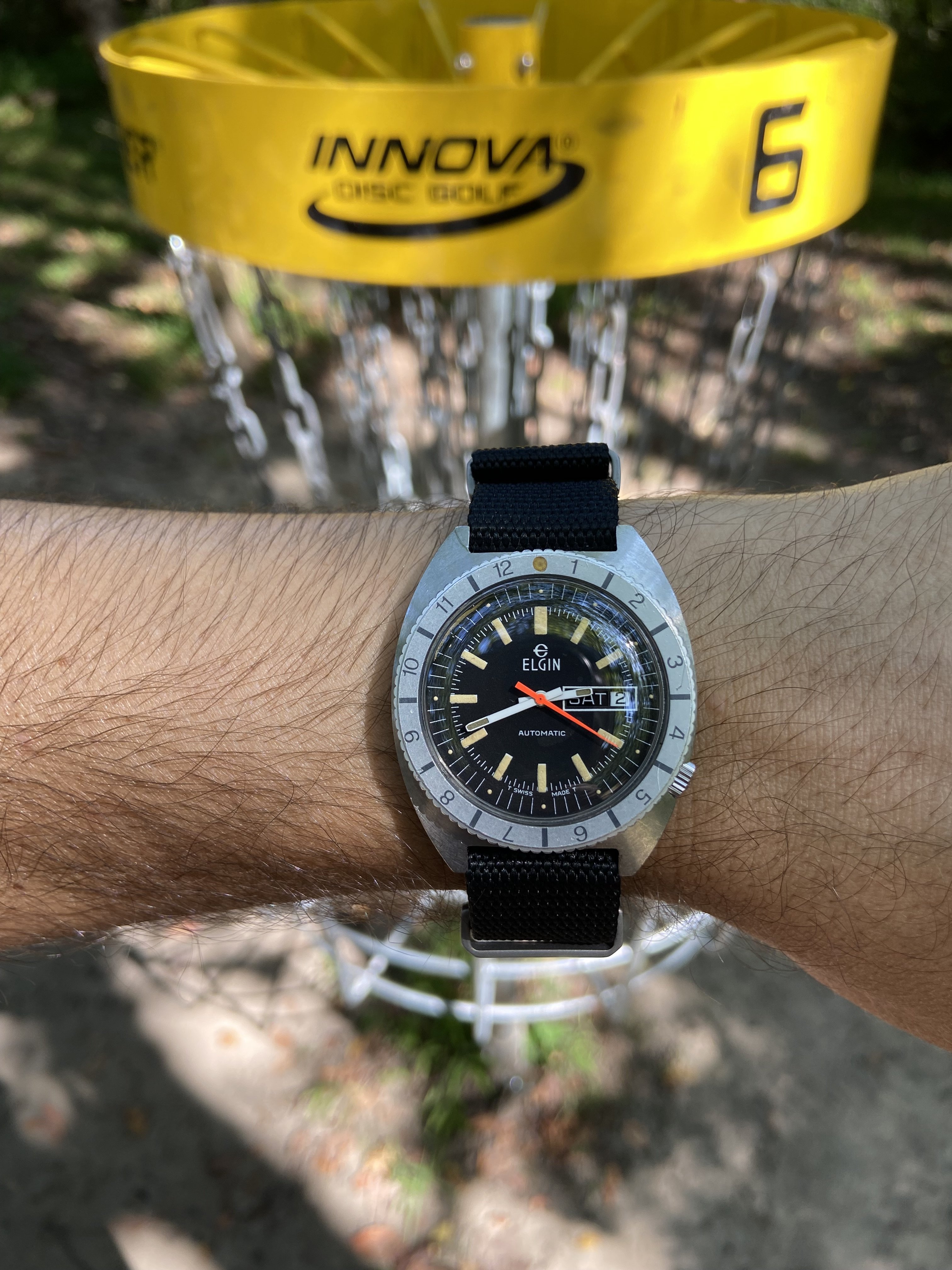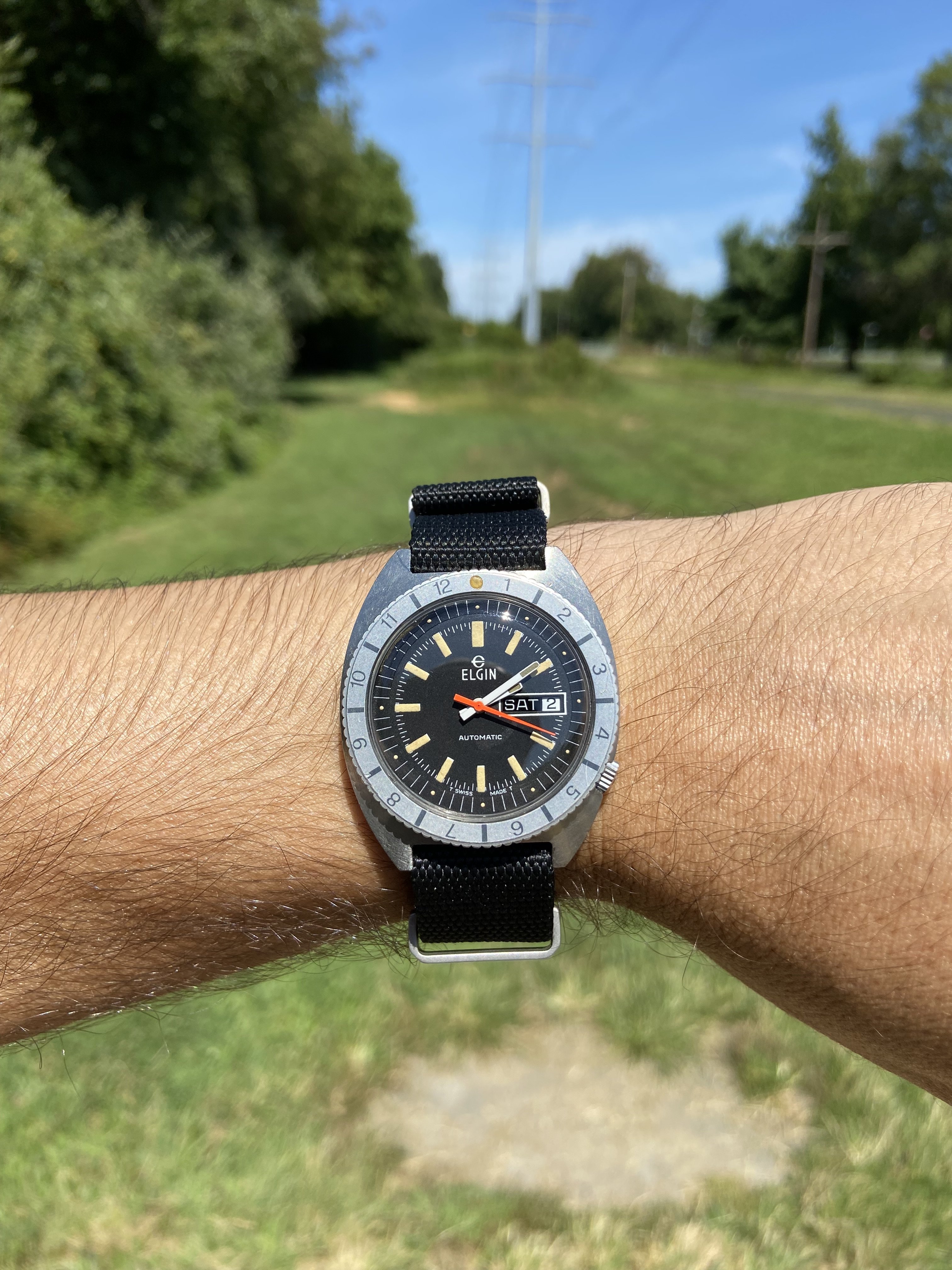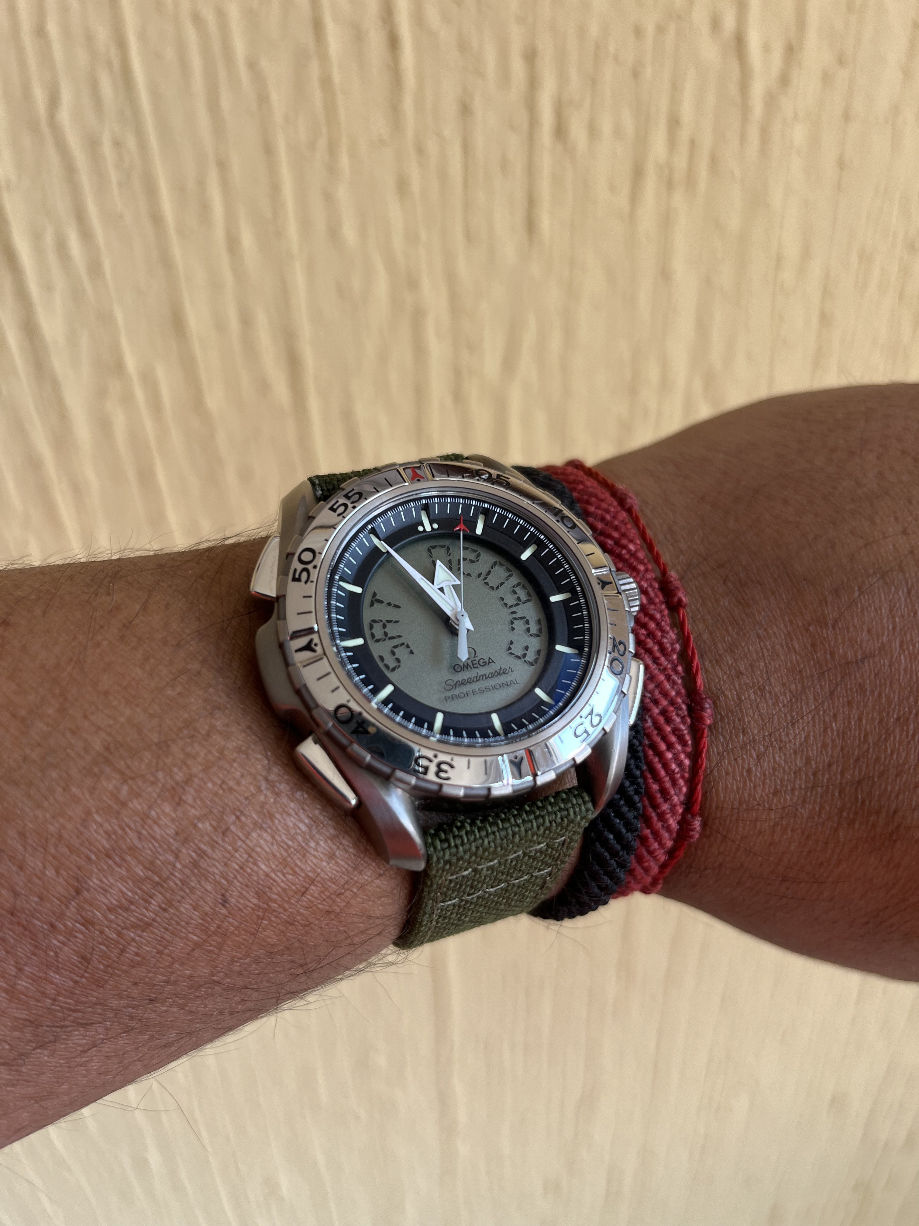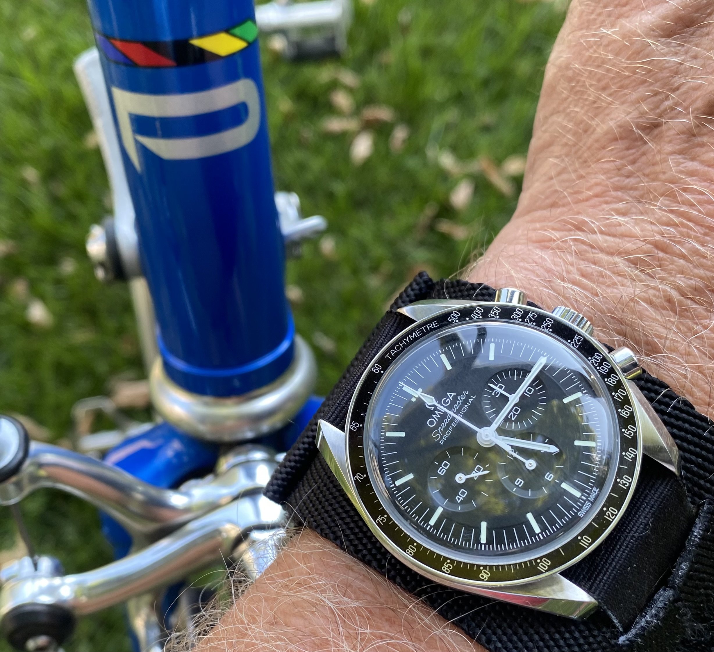 For today…3861 on a Rothco protective band [protective flap retracted for pic] for recording seat time while riding my 1989 Schwinn Waterford Paramount road racing bike…