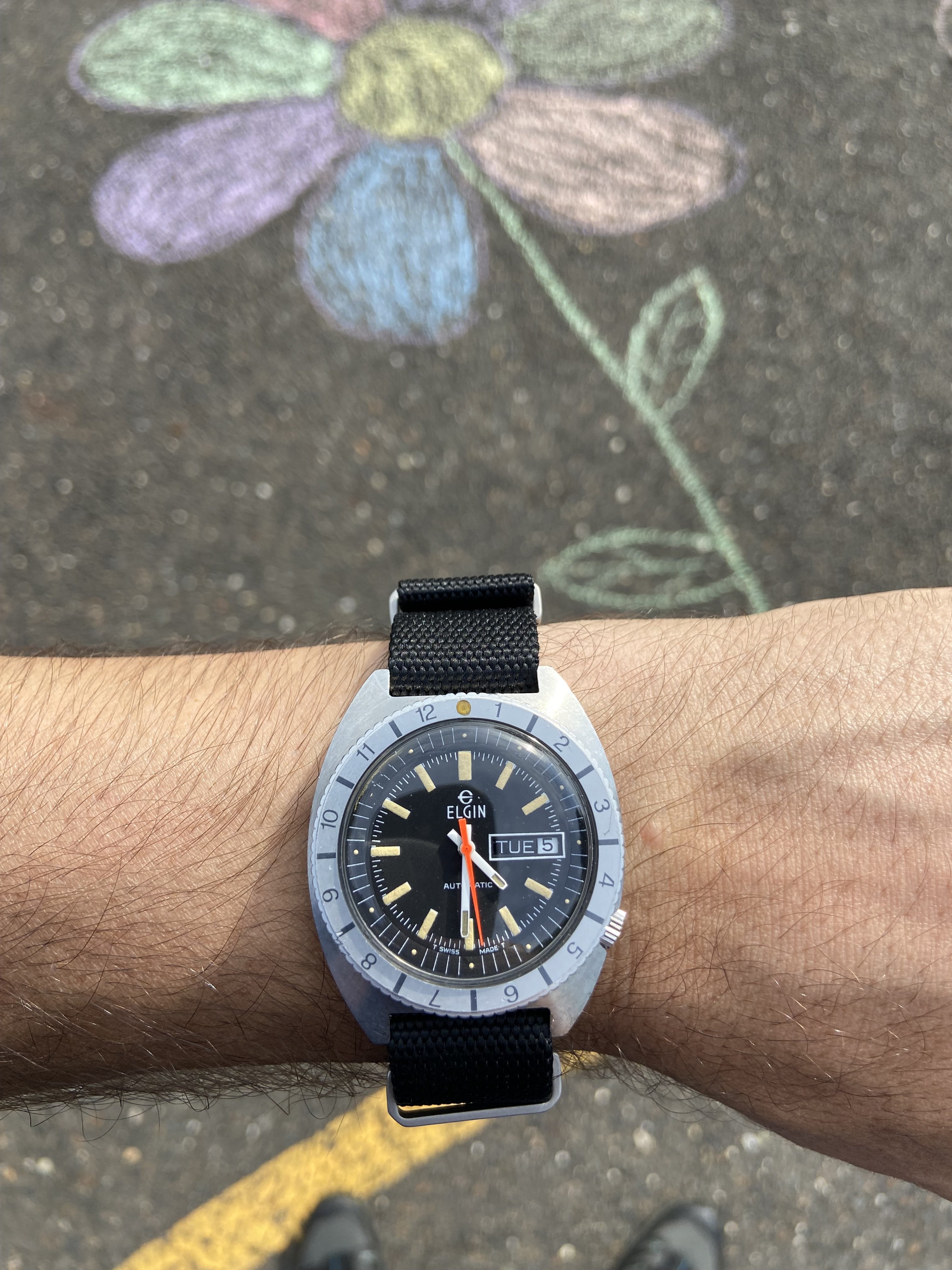 I have no clue where I got this watch from. I was trying to find a small watch as I did battle with some yellow jackets the other day and the little bastard got me right where a watch sits. Better than the time they got me on the lip.