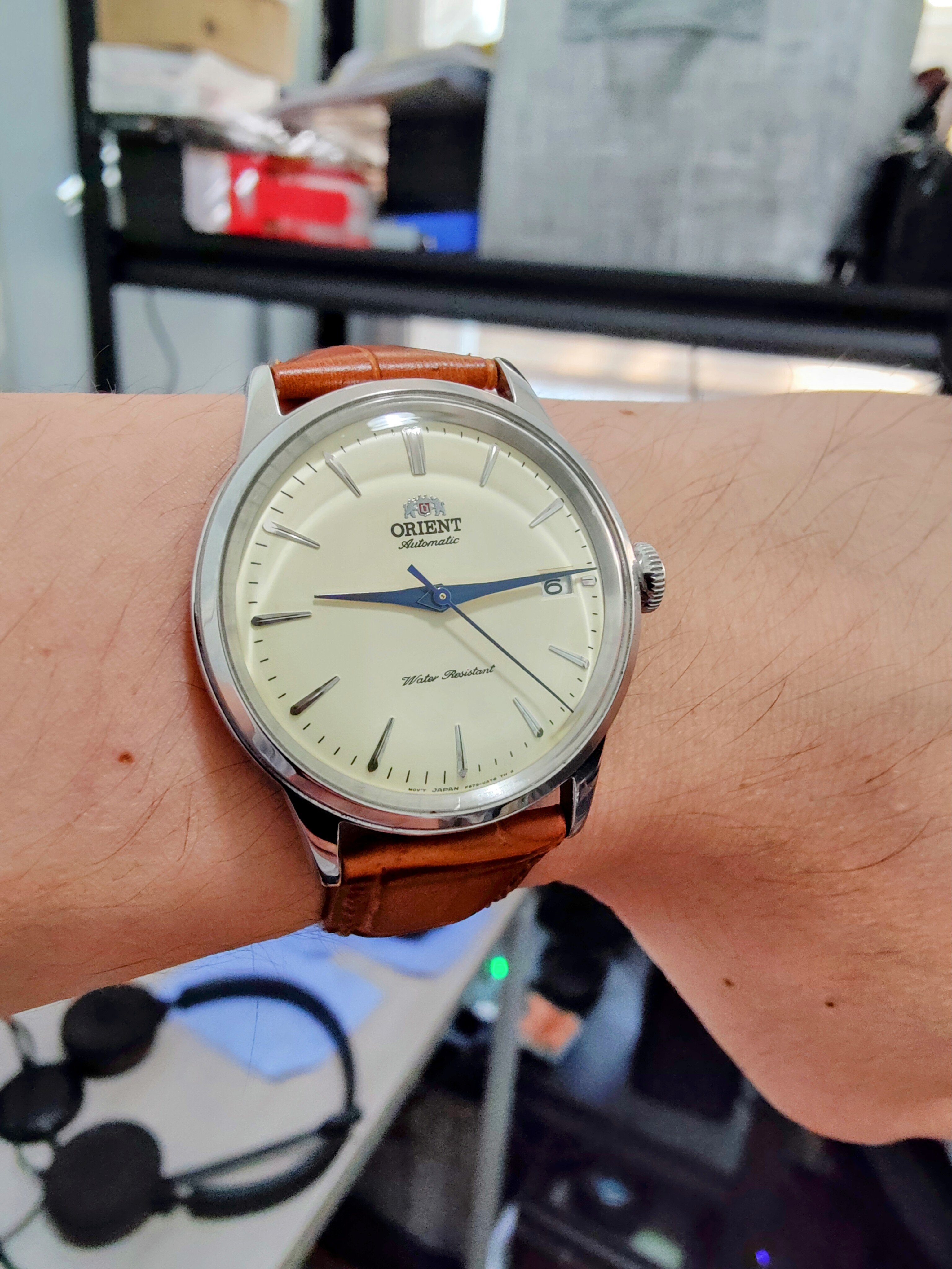 Posts 787 Likes 6,745 Zman4eva ·Sep 6, 2023 Working from home. That means I can wear a dress watch. Orient Bambino Gen II.