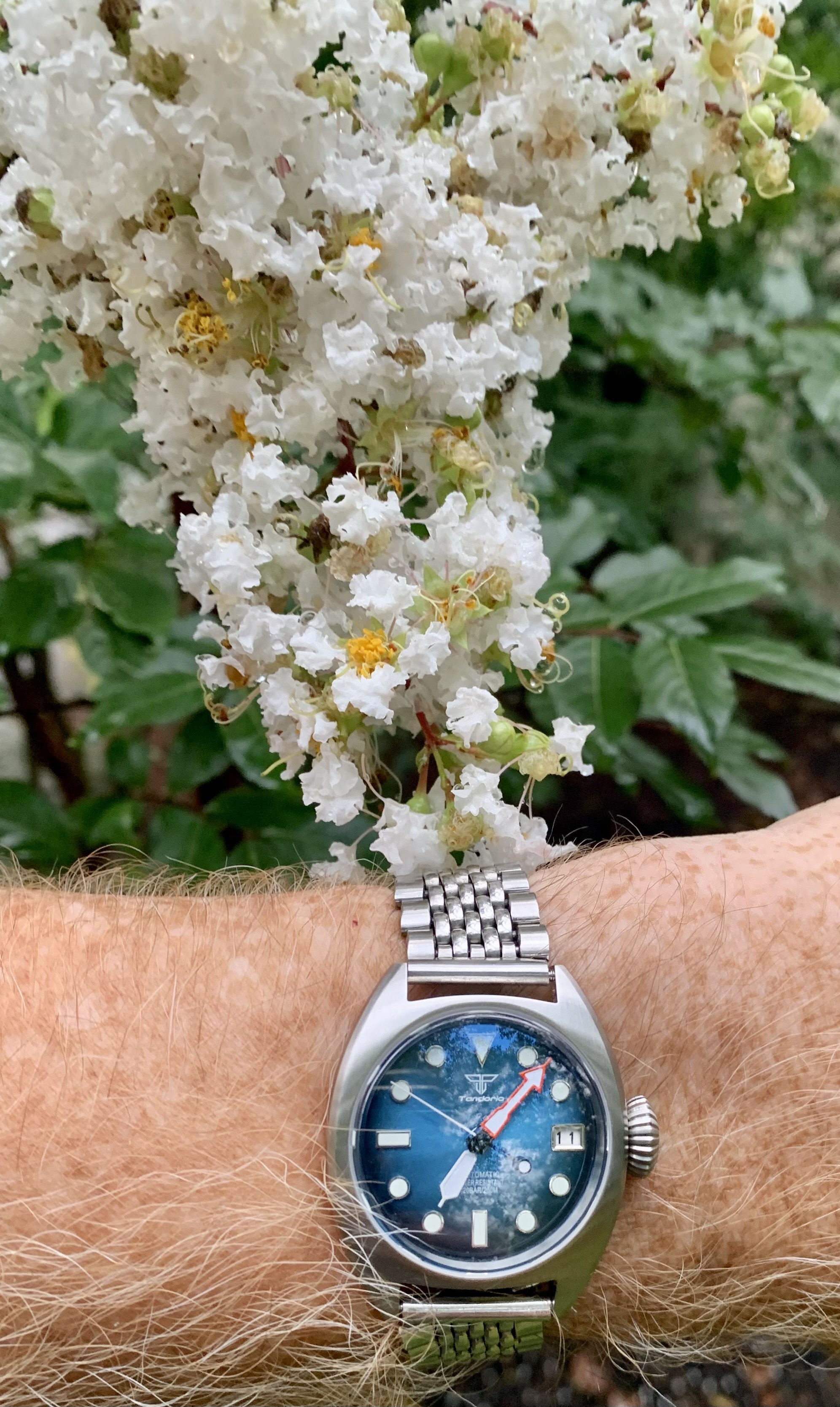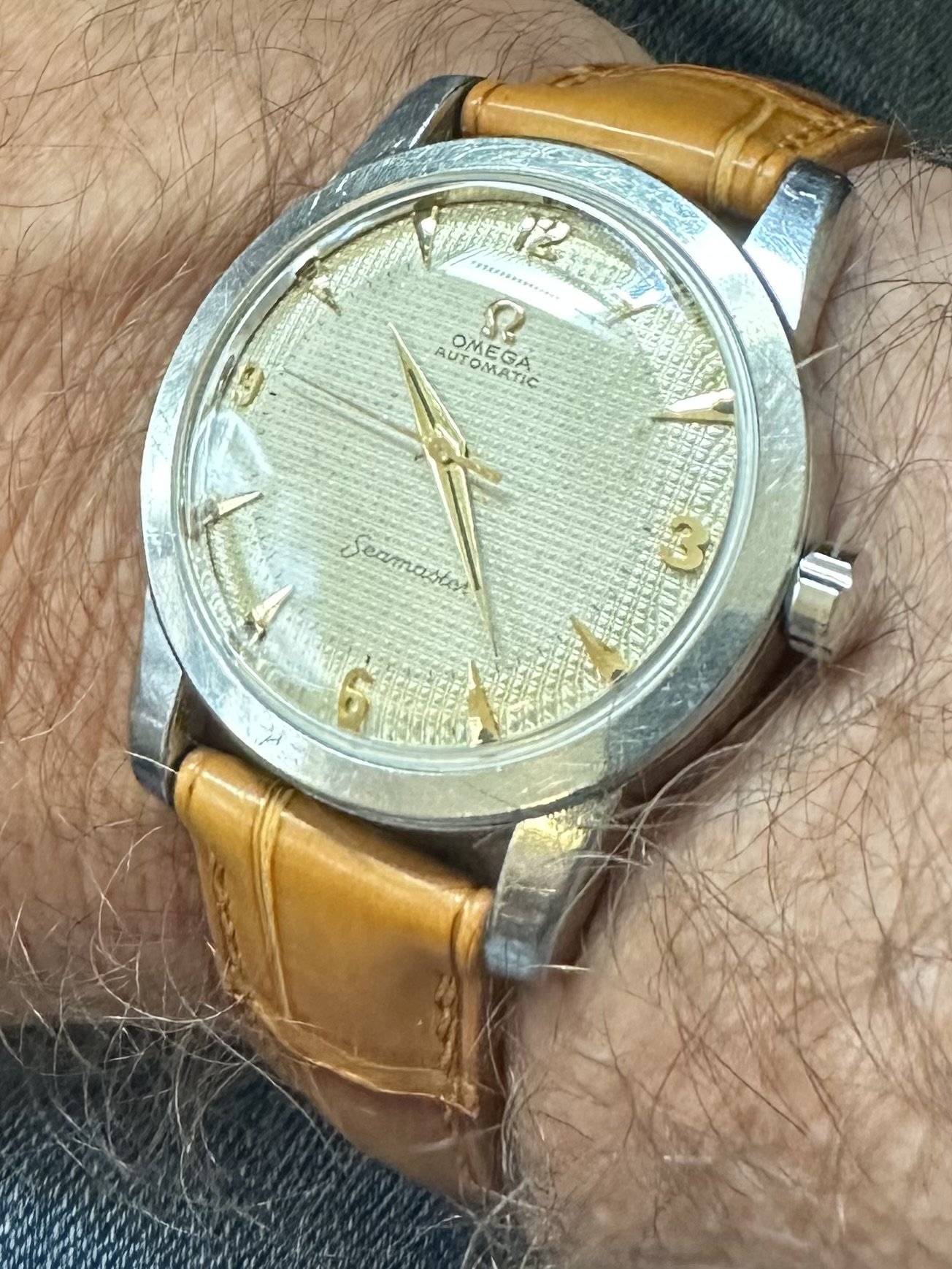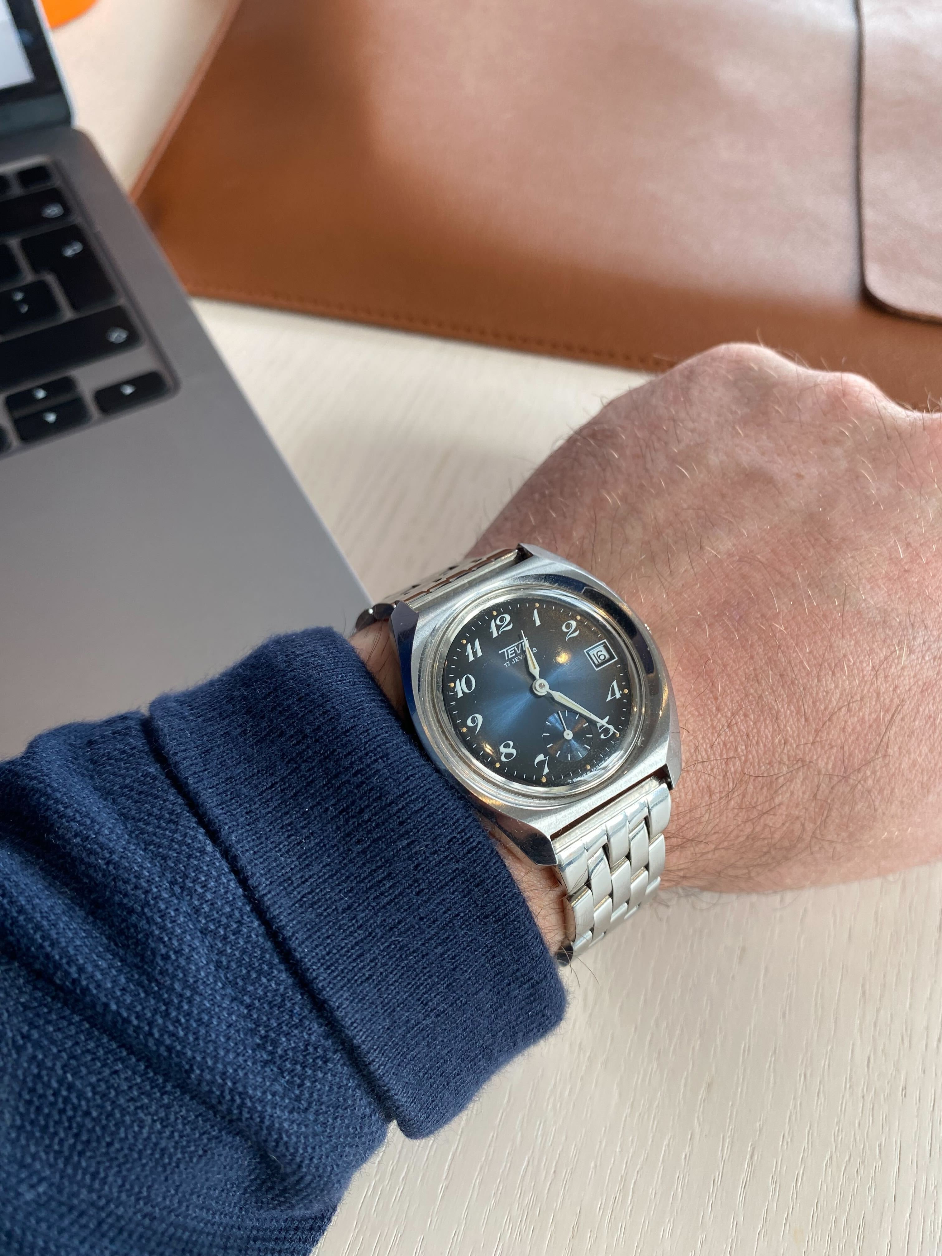here she is admiring our latest arrival, my Baltic TriCompax: