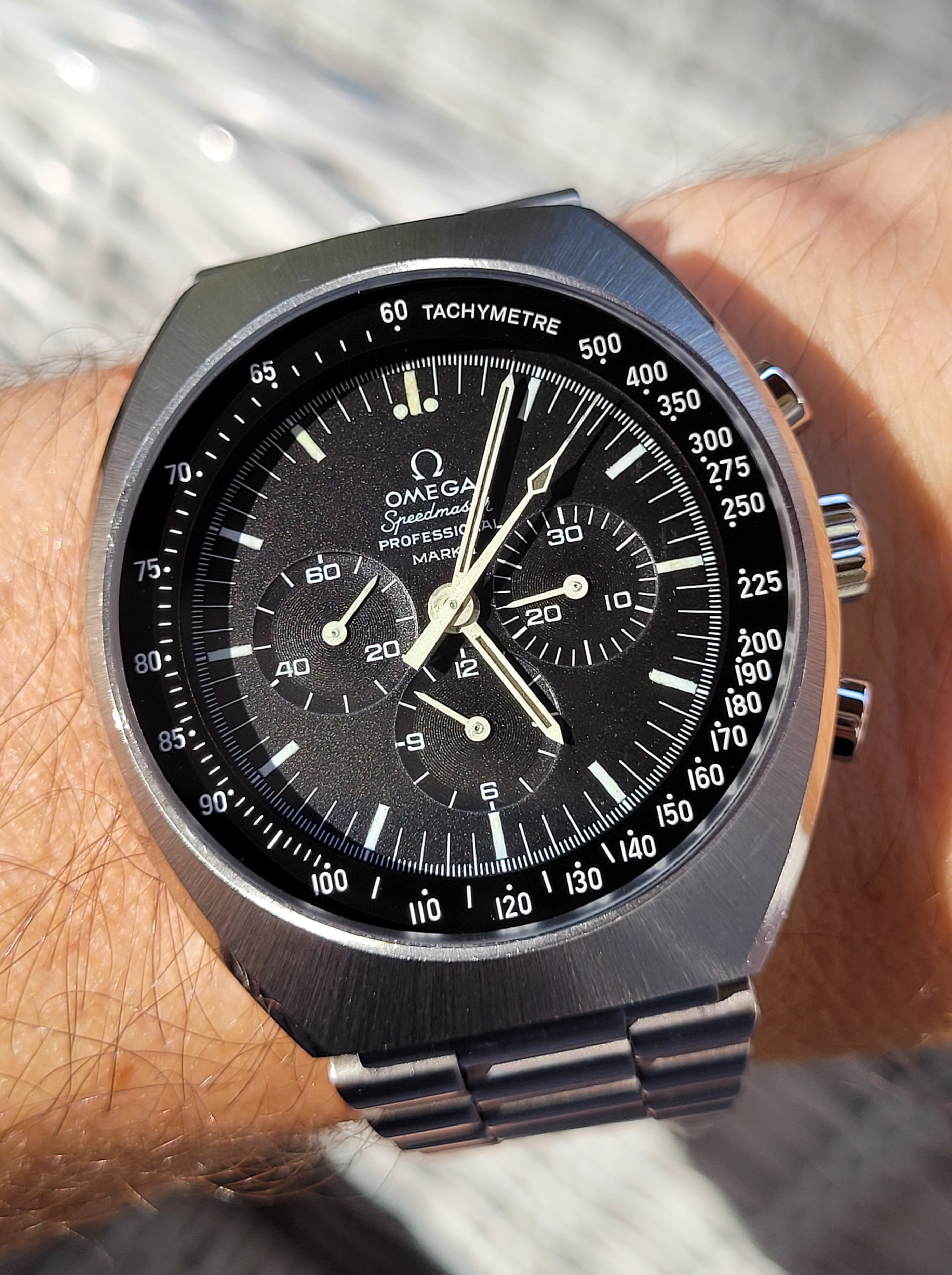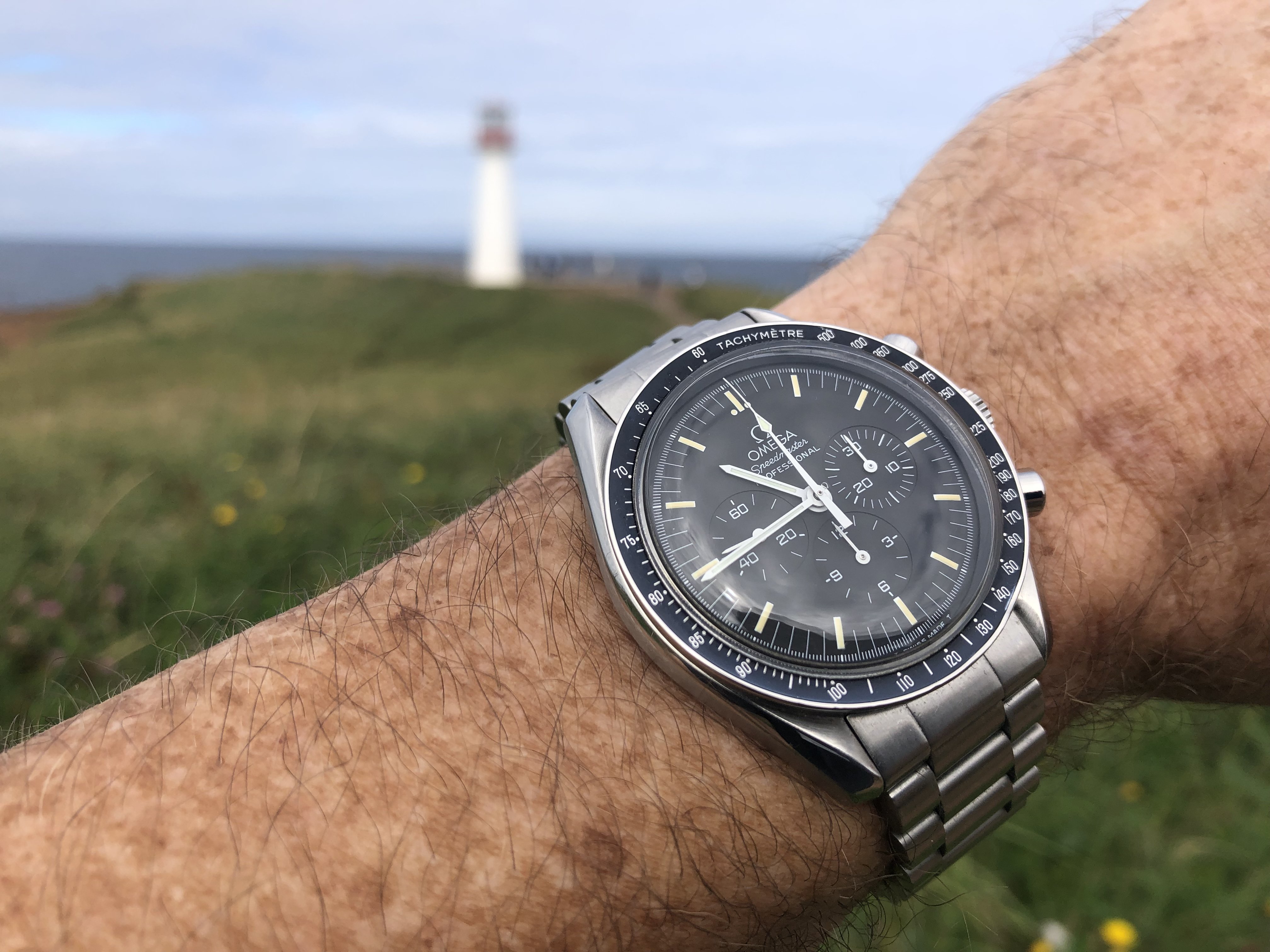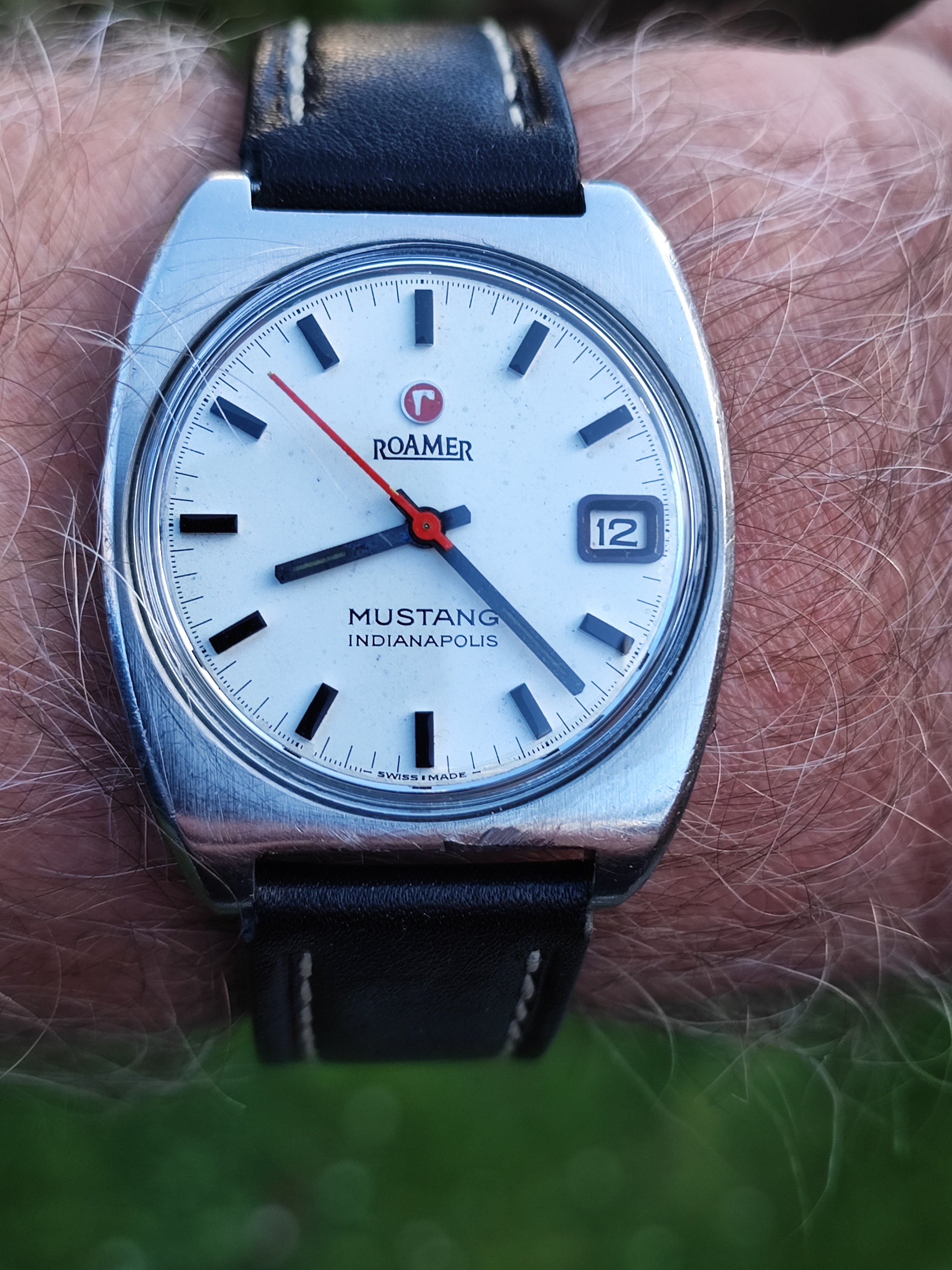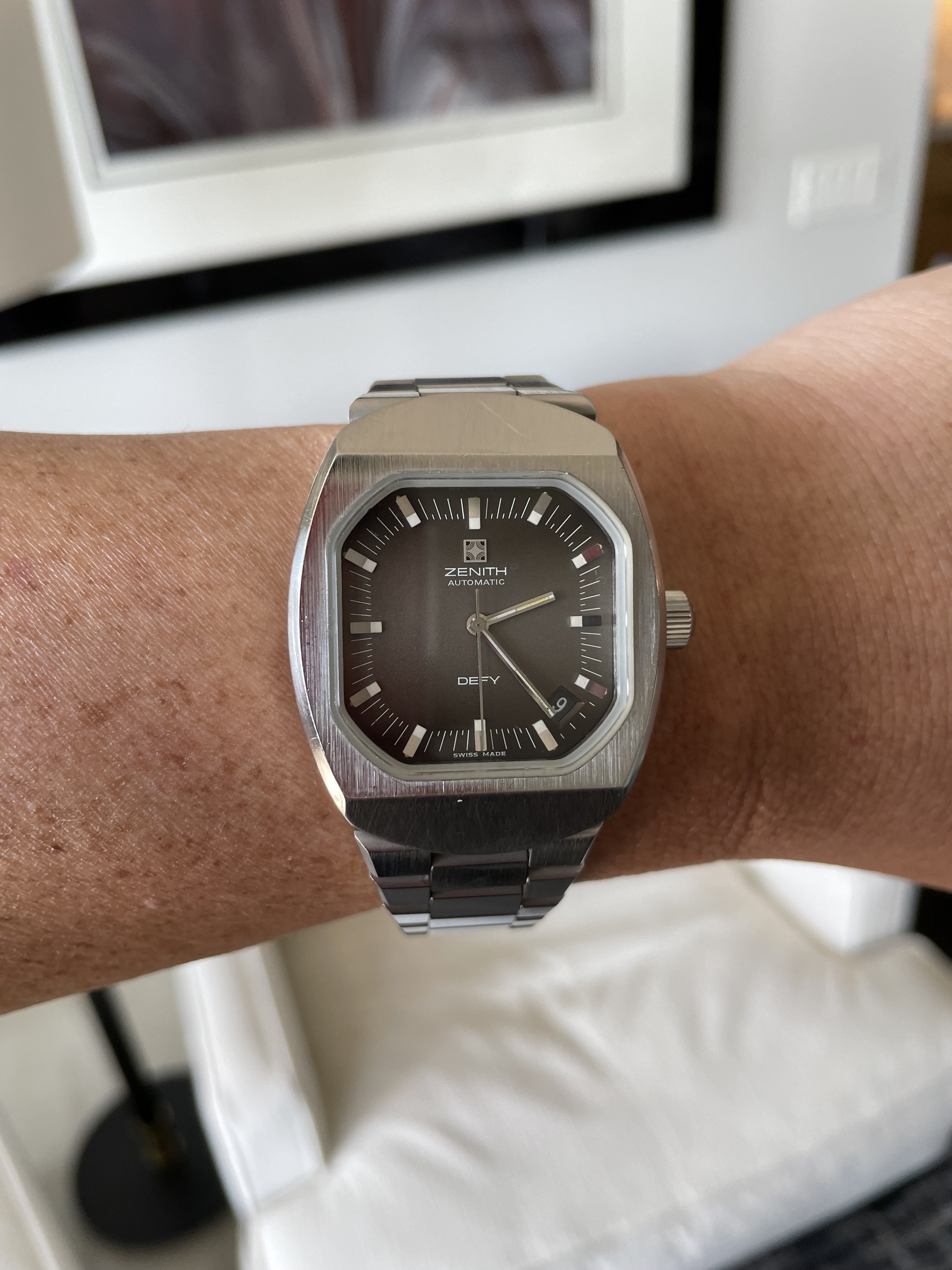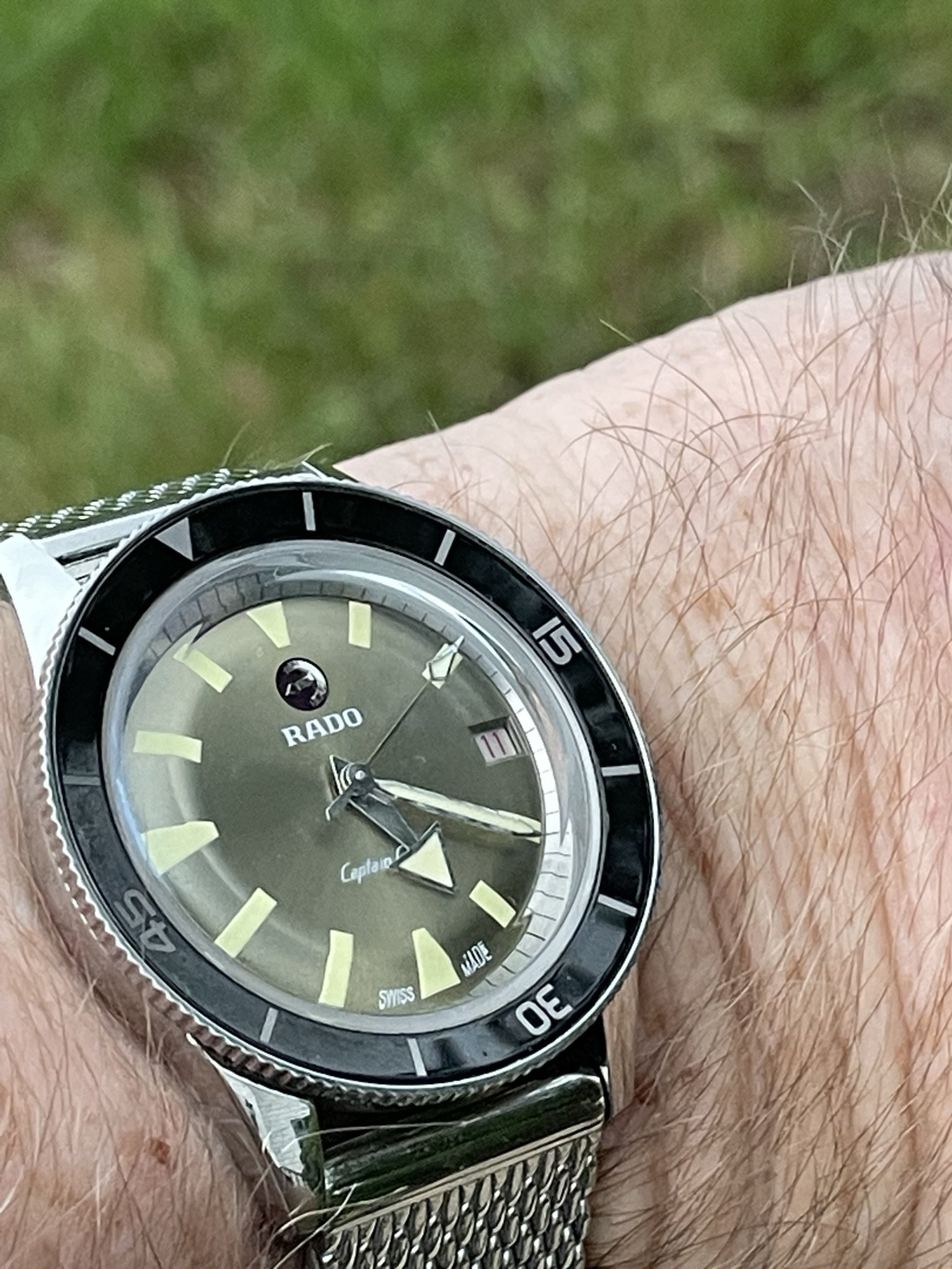 A watch with a story. It came to me as a result of a barter deal. I repaired a couple watches for a friend, and ended up with an Omega watch. Not this watch, exactly. The Omega came to me with a gold filled case that appeared to me as though someone had deliberately set out to destroy it! It had a horrible dial. But surprisingly, the bumper automatic movement was in good condition, it needed a mainspring and servicing. I had a donor Omega case on hand, a better dial, and I did the required service, including a generic crystal and crown. The bracelet in an after market clone with an Omega buckle that was too small for me. I built a 1/2 link to extend the bracelet. This would not be a grail watch for most people, but it is a good runner, and I like it. It will do for our upcoming jaunt in the trailer, for 5 days. Circa 1952-53.