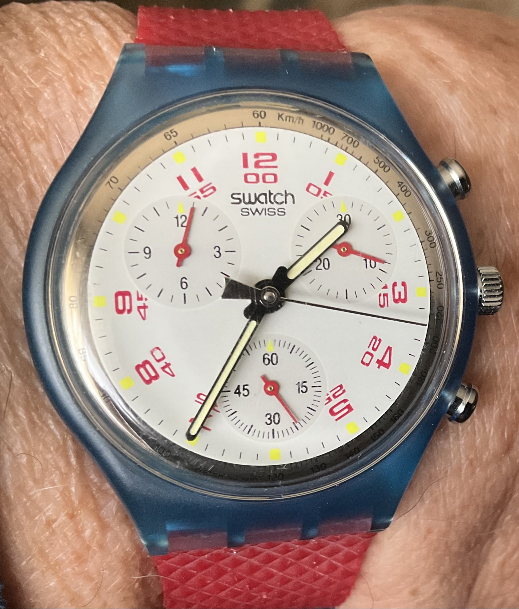 Posts 15,389 Likes 45,450 Canuck 路Sep 18, 2023 Just for kicks, today. My 32-year old Swatch JFK limited edition. It hasn鈥檛 run for likely about 10 years, but it started right up with a new cell.