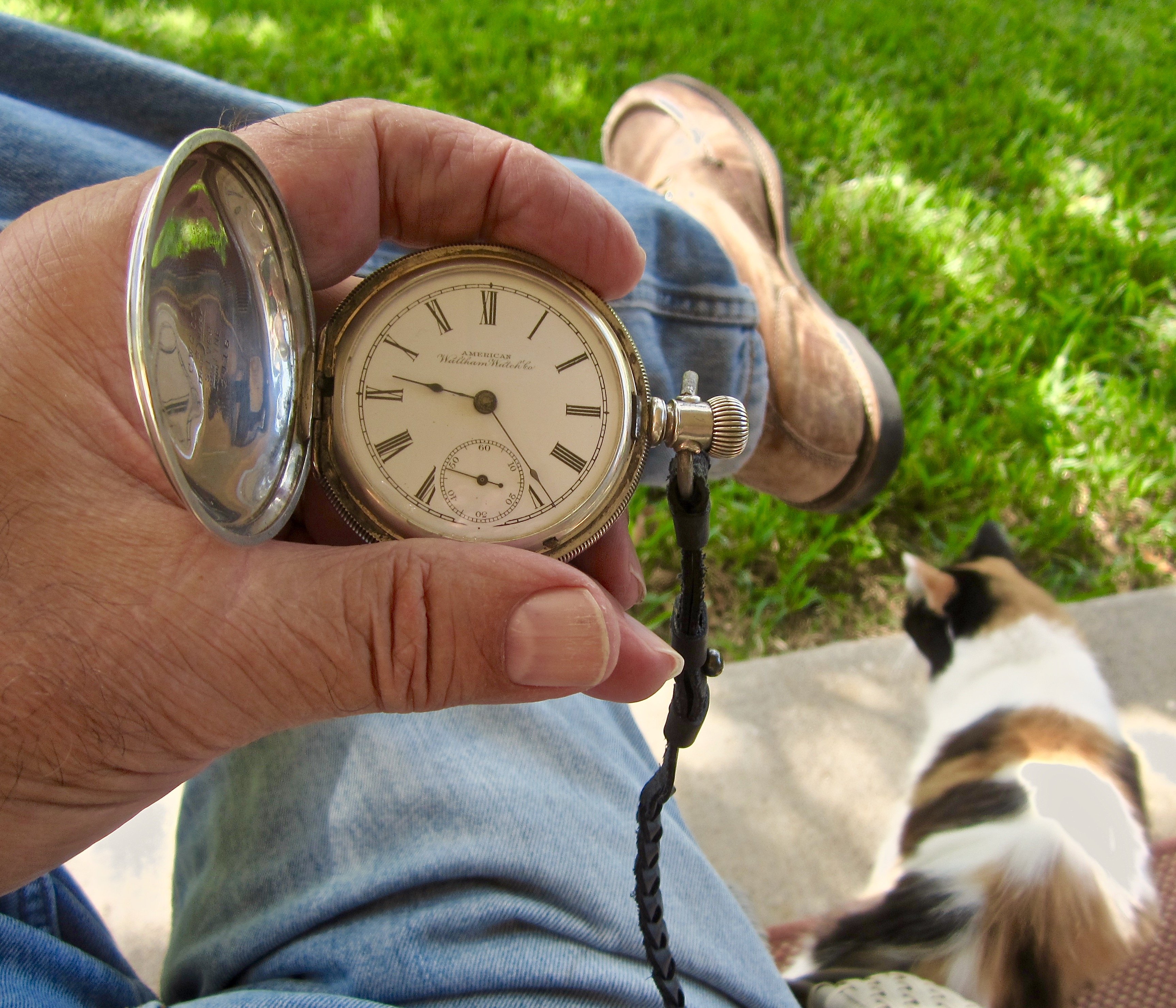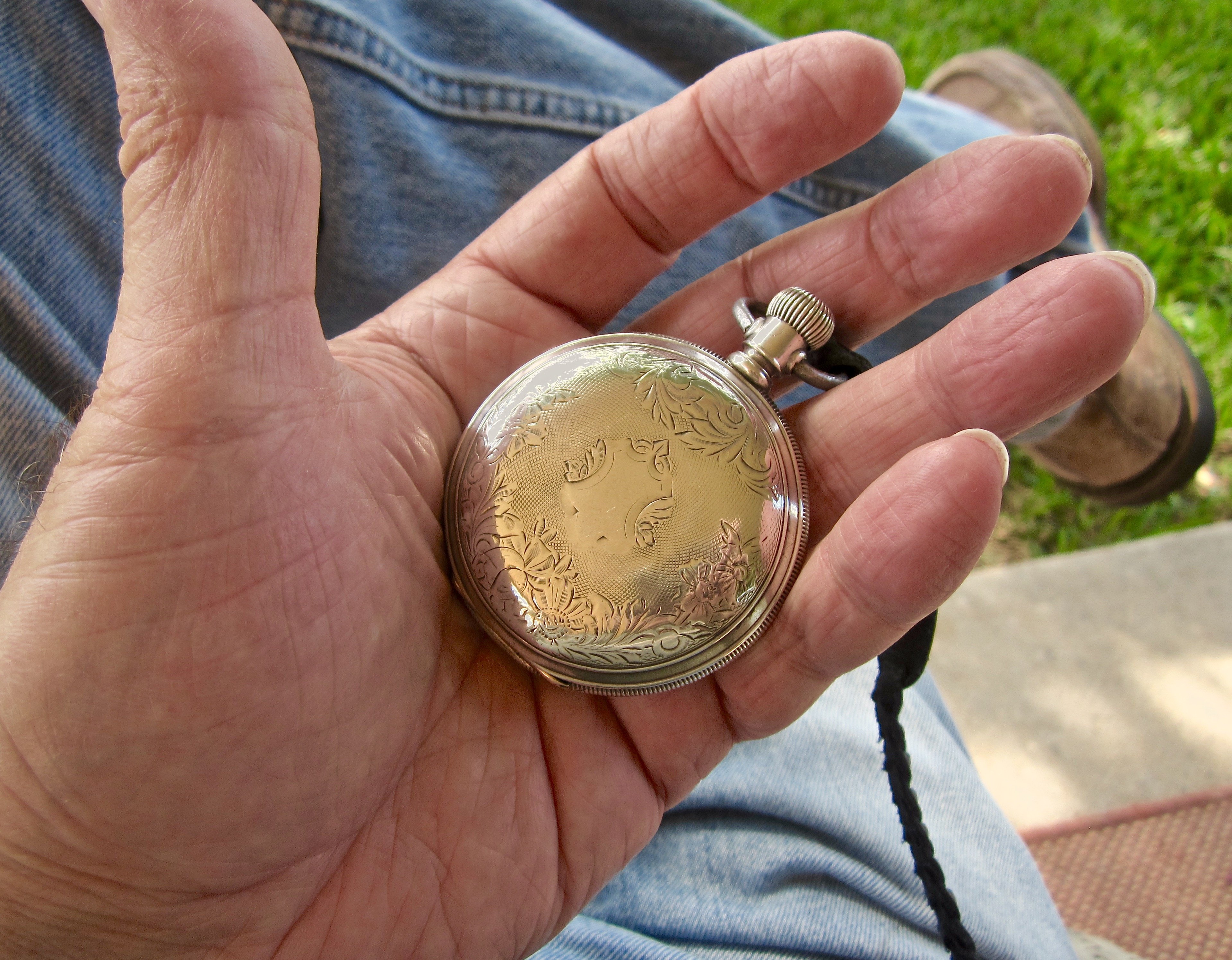Gay '90's (1897) choice for a short road trip out to our old place on the lake, land originally purchased by my great grandfather in the gay '90s (1899). The oldest watch on the place here and was courtesy our own TexOmega (pocket watch enabler).