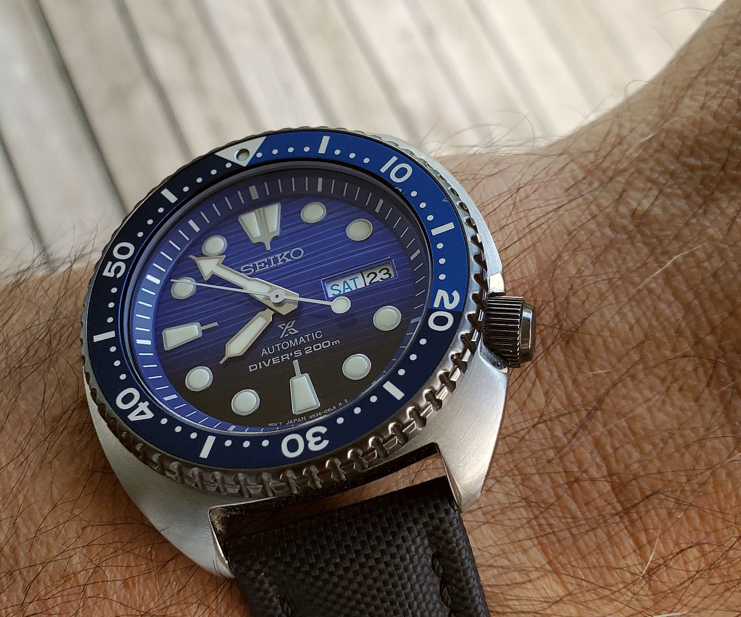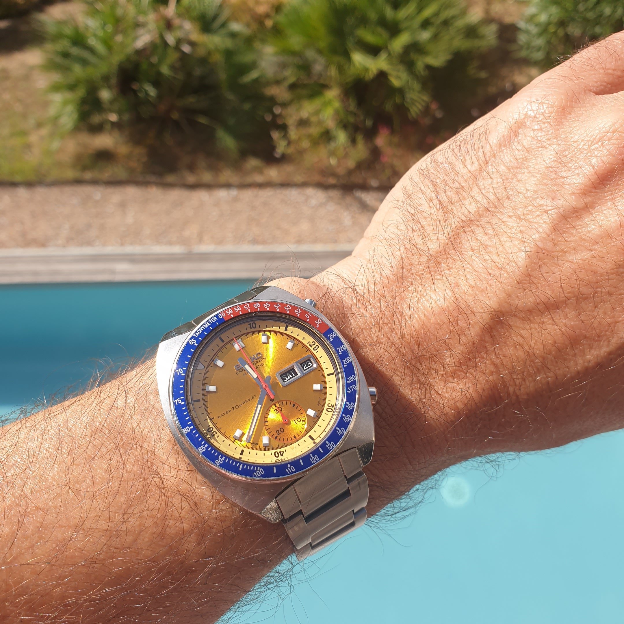 Posts 1,029 Likes 7,849 BAJJ ·Sep 23, 2023 Getting a lot of wrist time, seems like the perfect evening watch on a sun holiday. Glad I brought it with me.