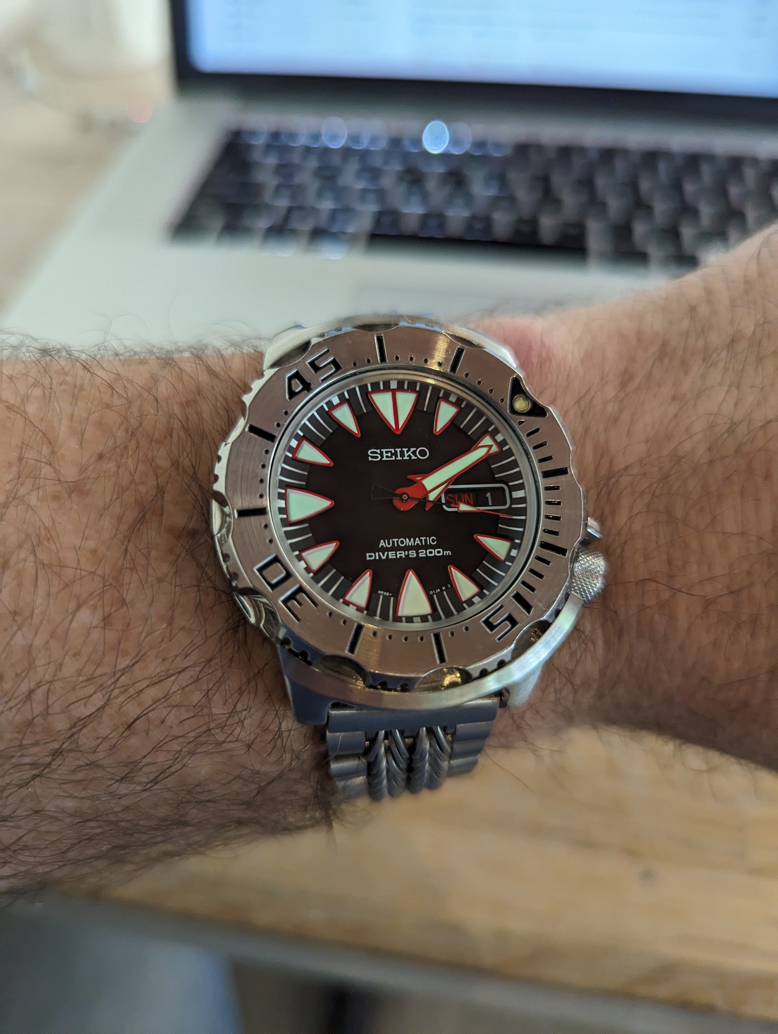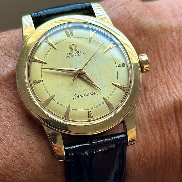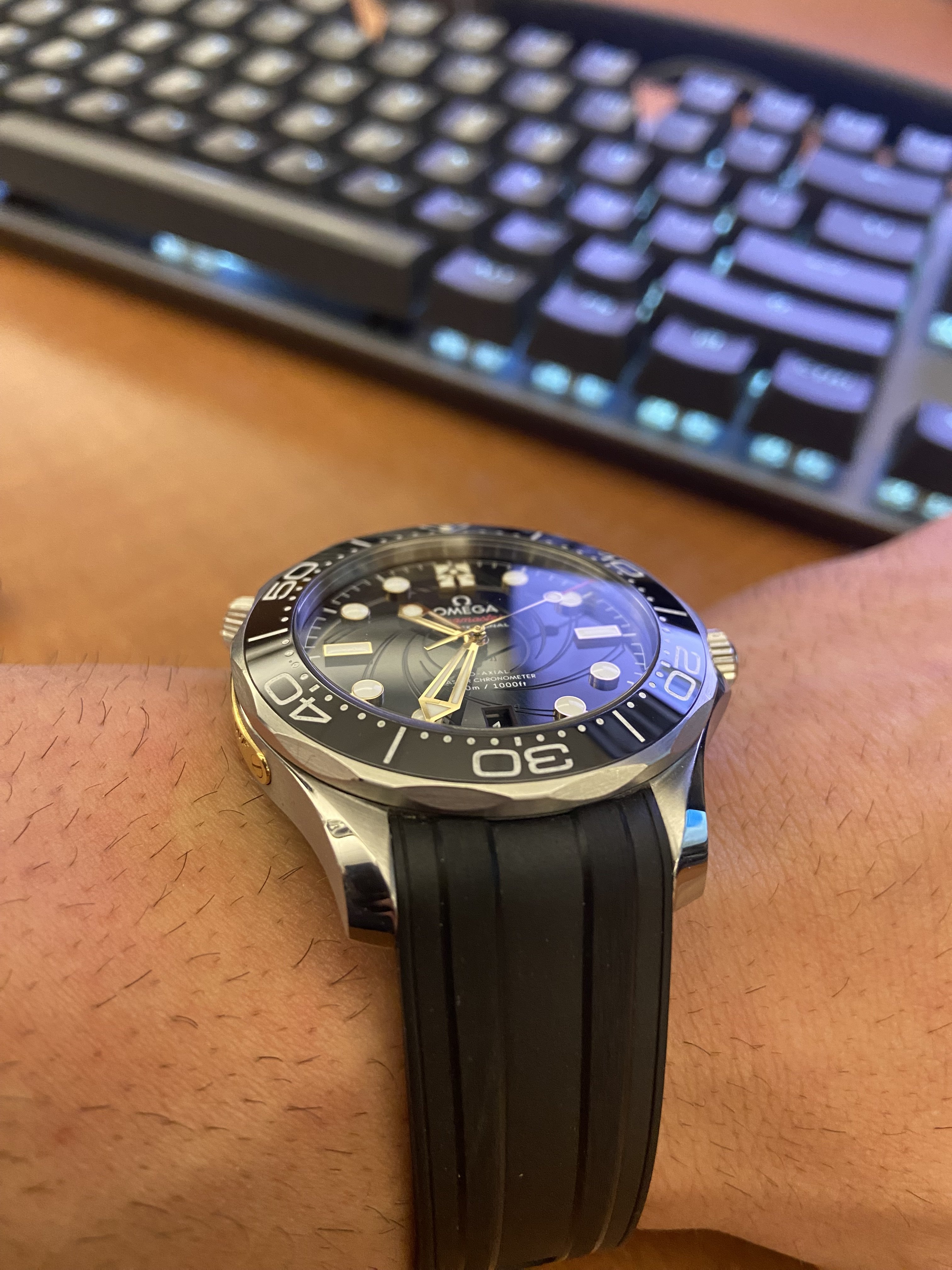Sporting my 50th Anniversary Seamaster 300M OHMSS tonight. This was actually my first diver. Albeit controversial, I love the rifling and gilt hands/indices on this one.