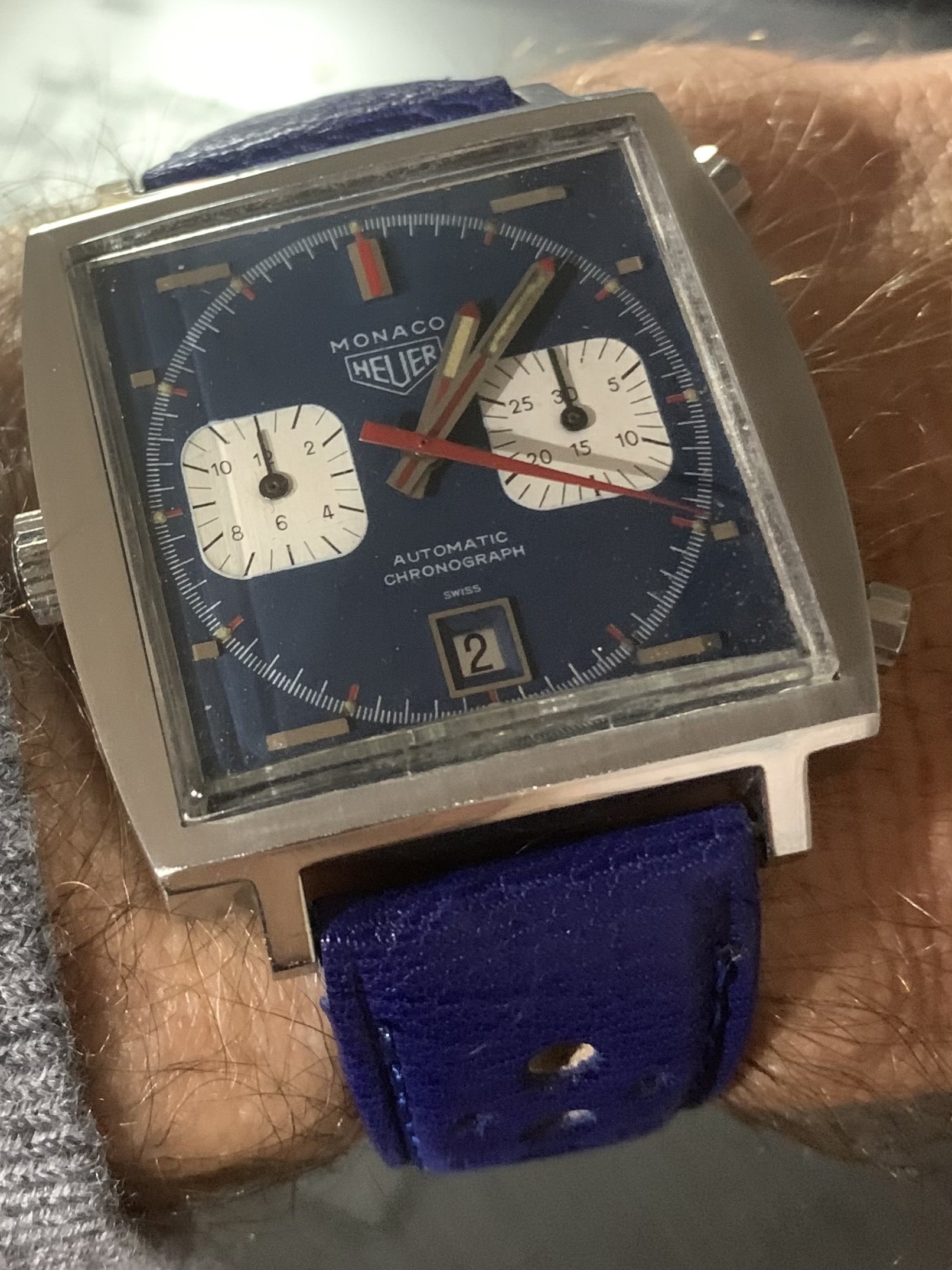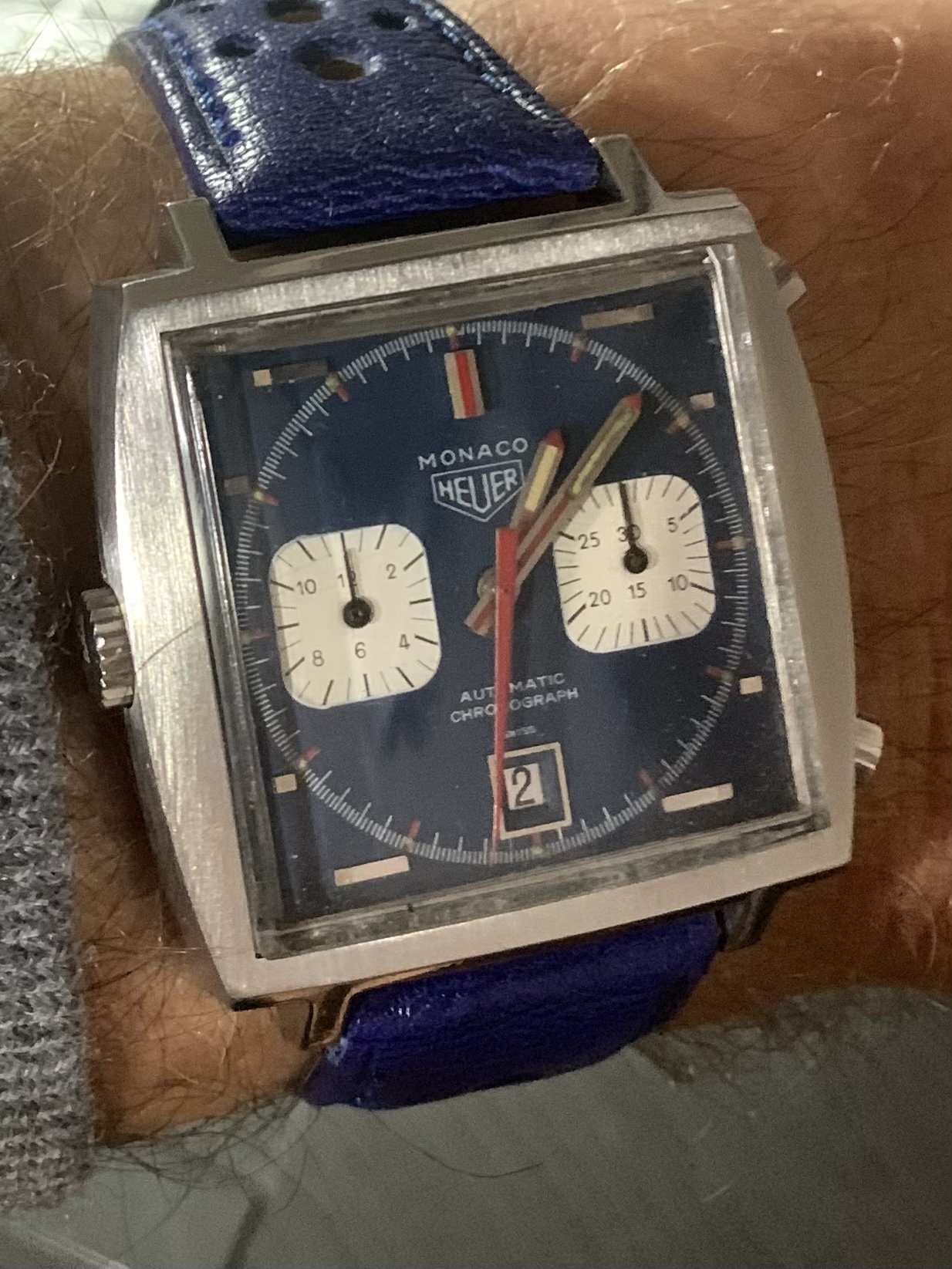 1969 Monaco today. All original. With a special blue strap I got made by @ralstrastraps. See them here Www.rallystraps.com.