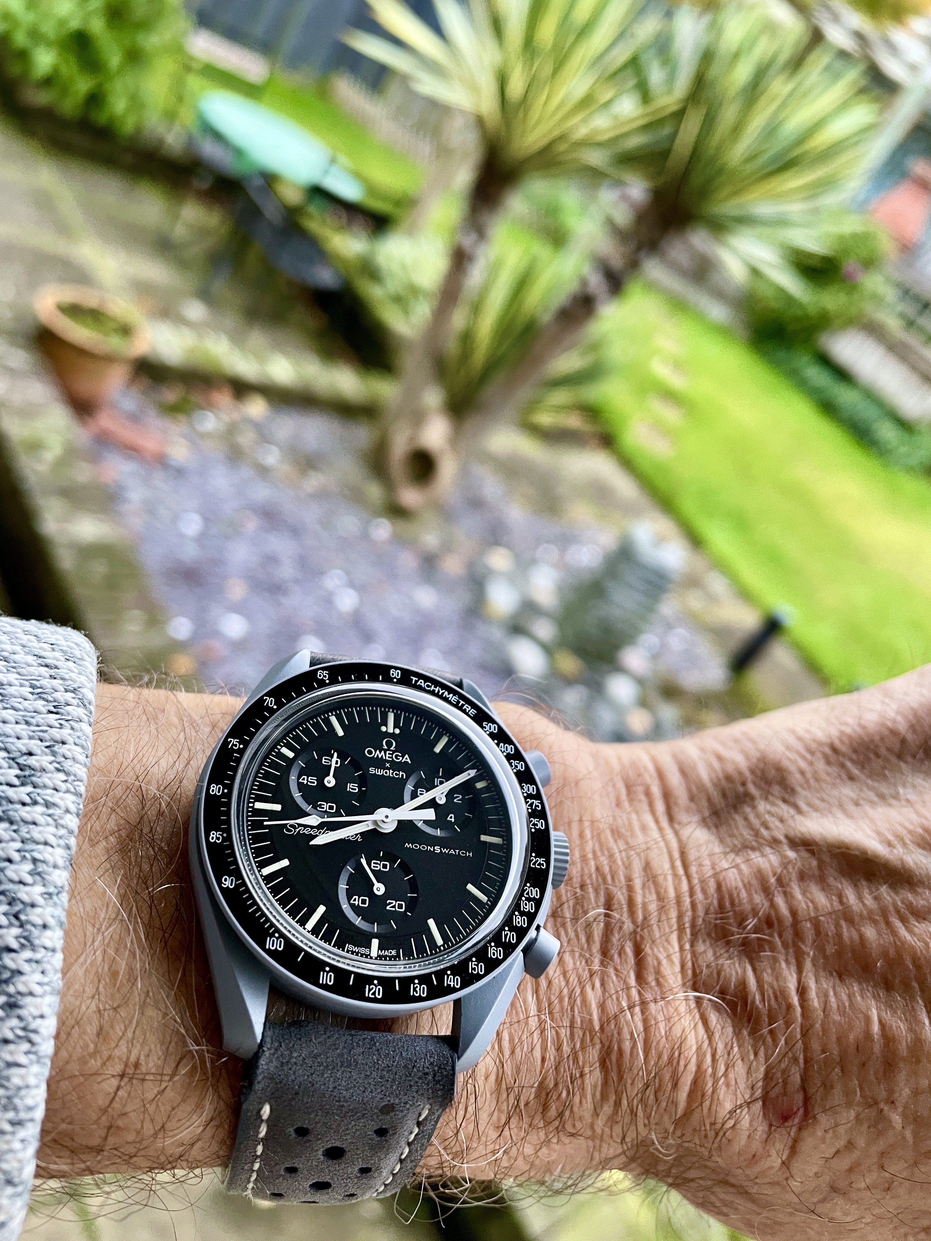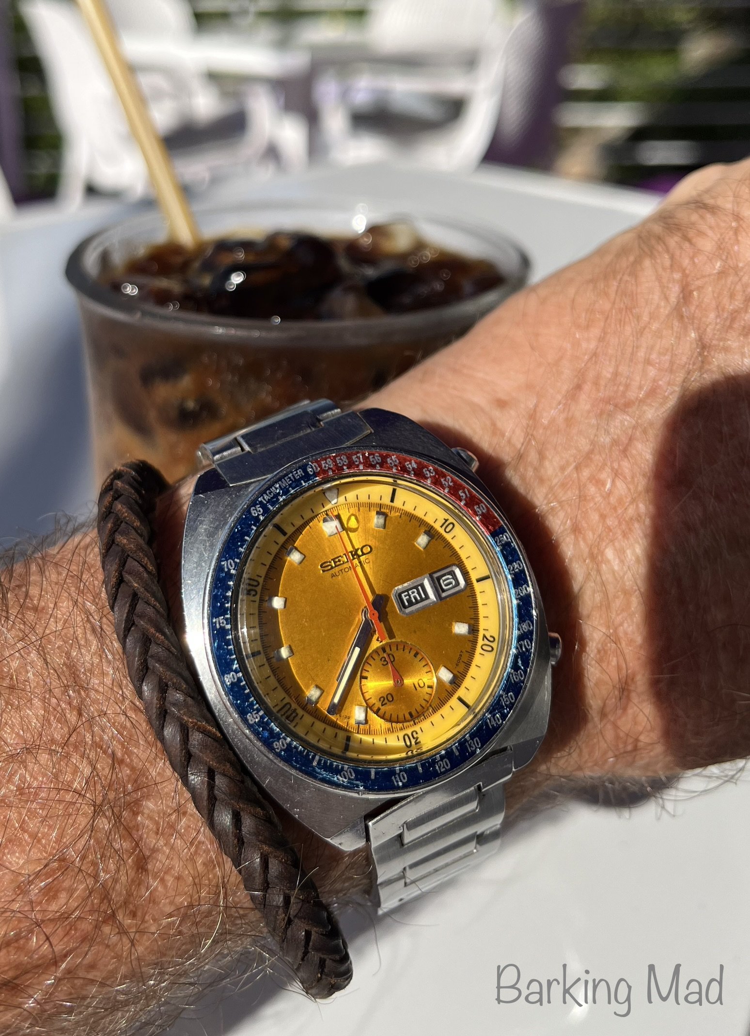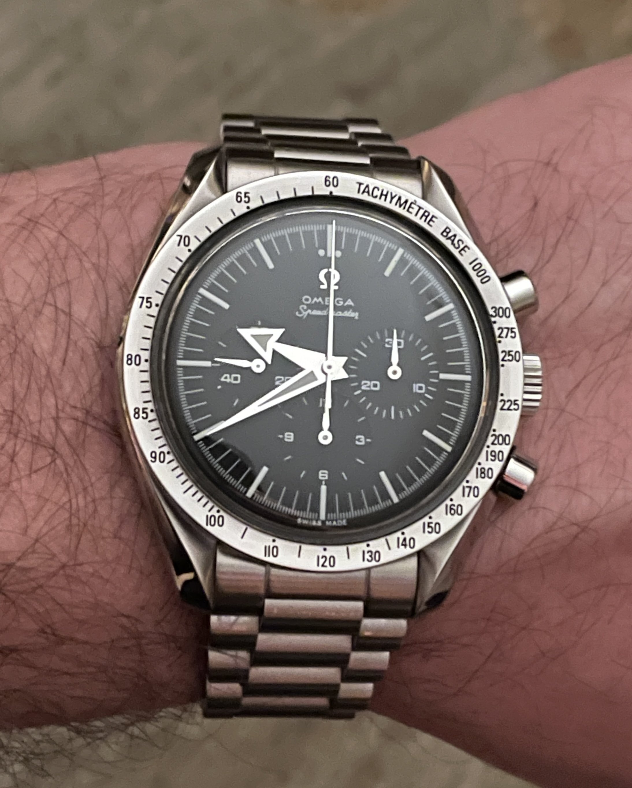 Despite the bold angles, at 34.5mm, it's not a large watch and the barcode pattern is quite fine to the naked eye. Here next to this morning's 62MAS...YaY!