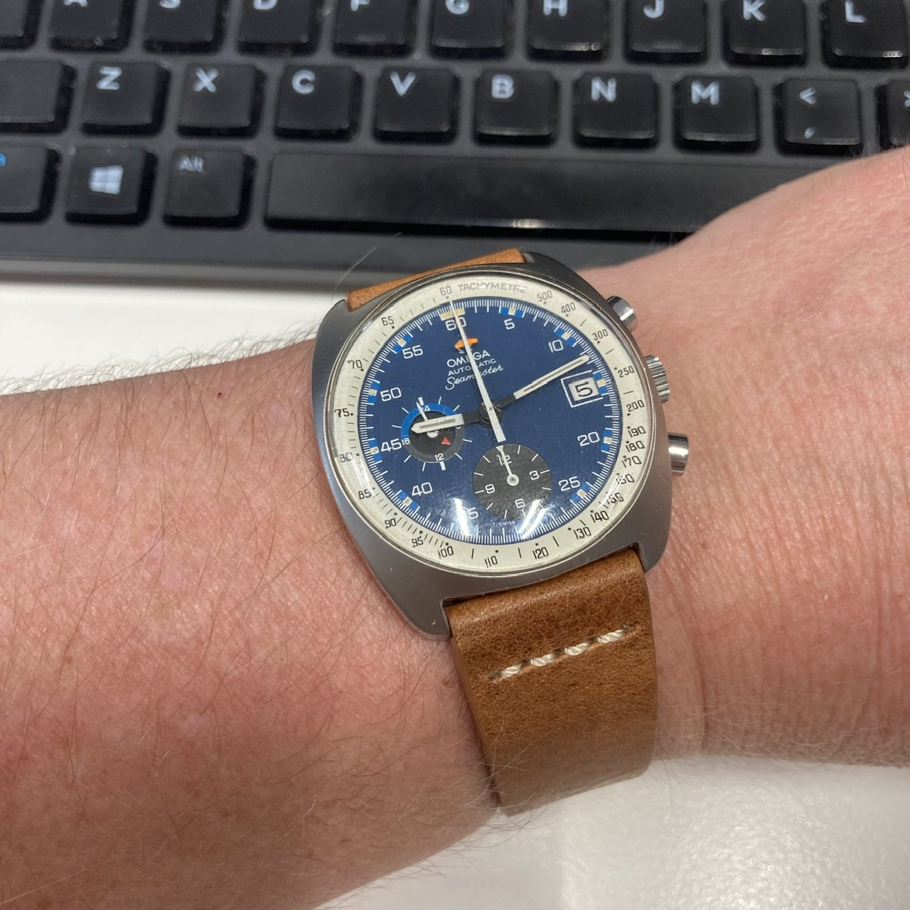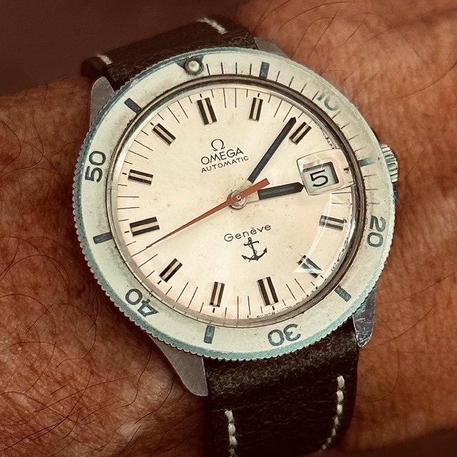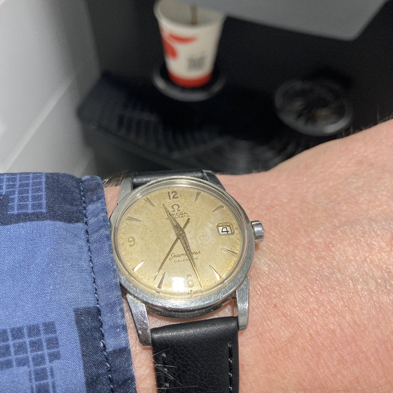 New arrival! A barcode dial 166.0141 recommended by Ash on the Recommended Vintage OMEGA WATCHES On EBAY thread. Just a Polywatch job so far.