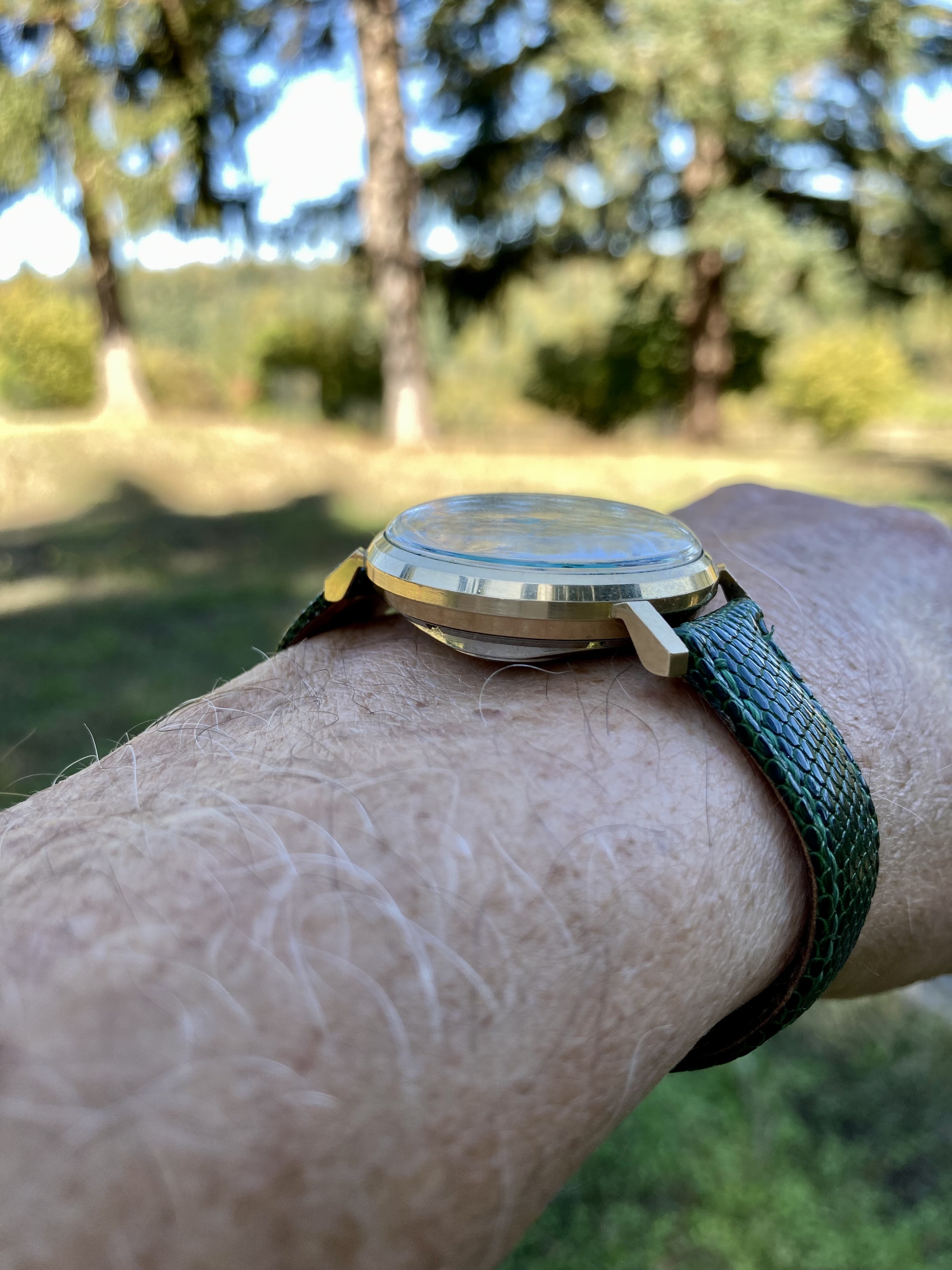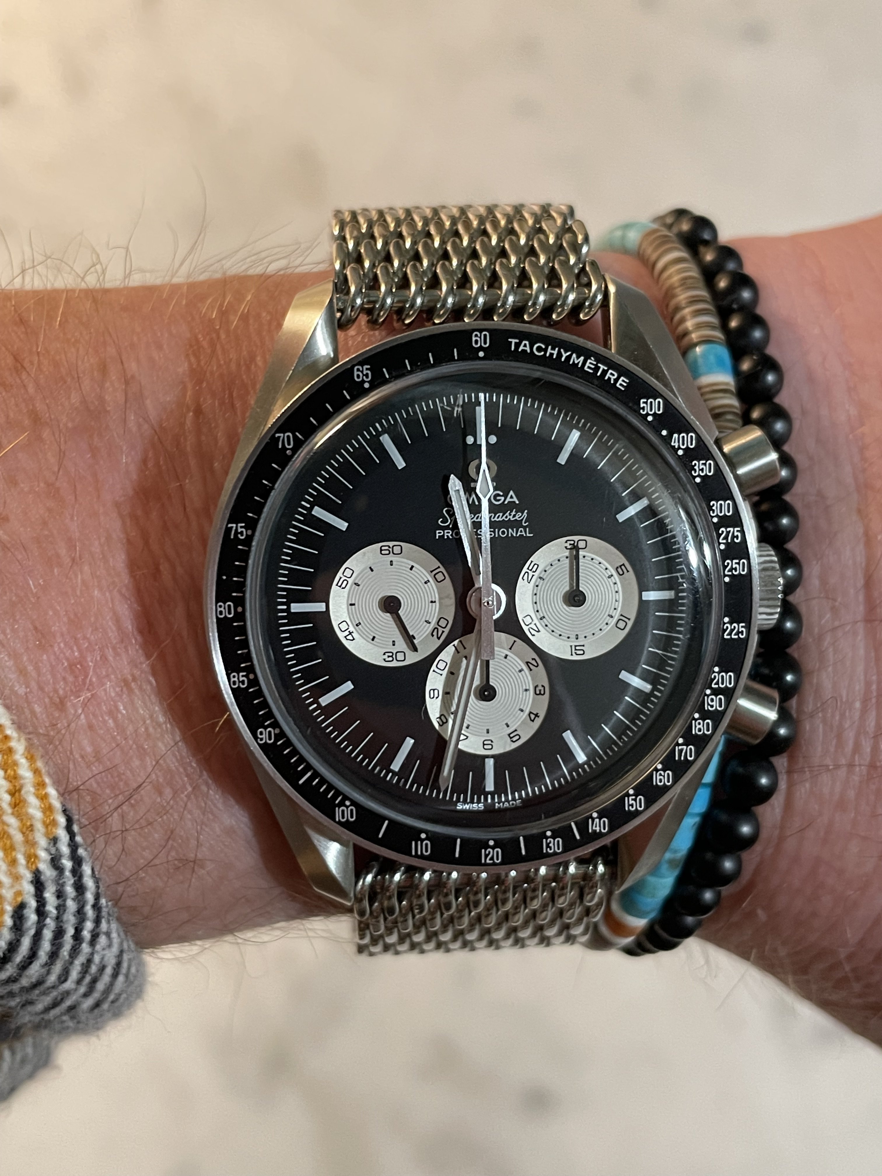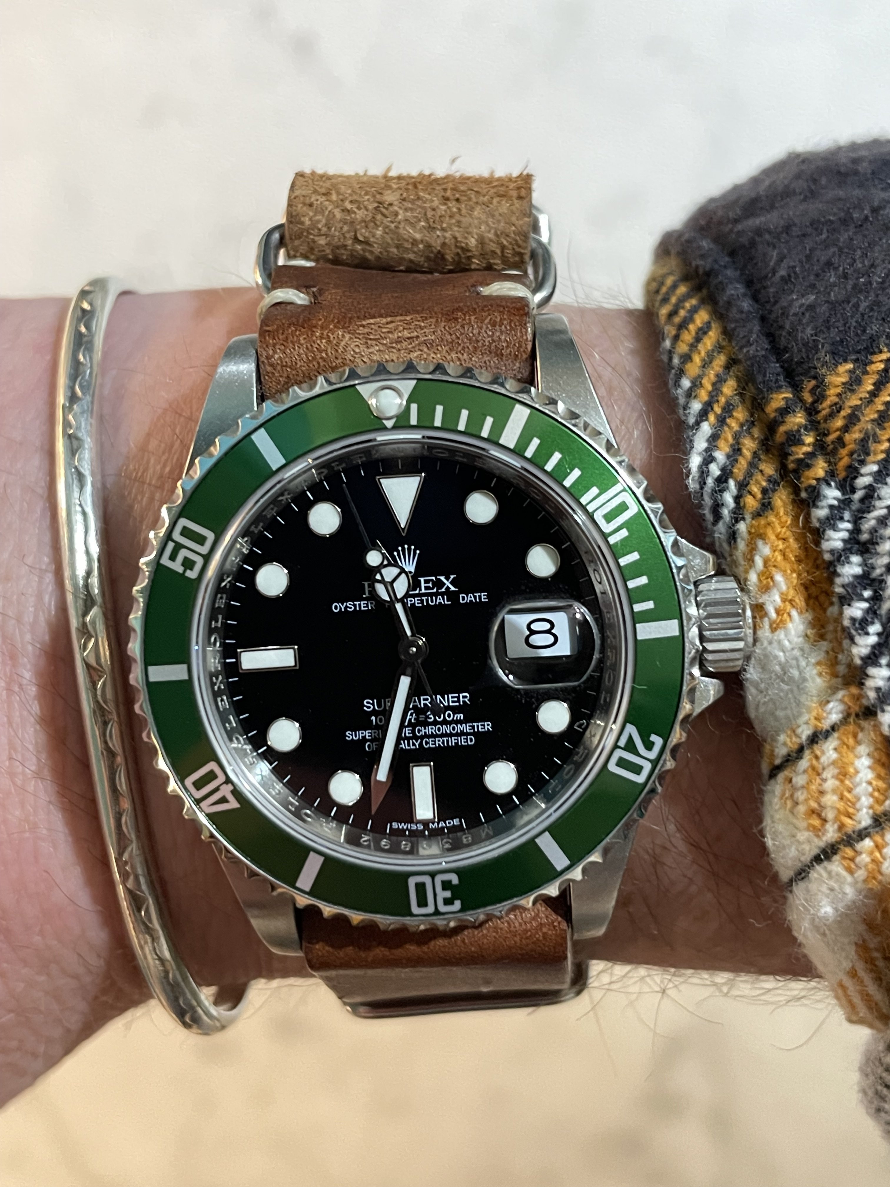 Late nite kitchen cleaning so my future morning self can drink coffee and watch the birds free of dirty dishes and other daily debris. I happen to be wearing a couple of watches while I clean. I’m trying to figure out how I want to wear the Kermit; the bracelet is fantastic, but I feel like I’m looking for something I haven’t found yet. There’s an Artem nato headed my way for the Kermit. The Artem seems to have a floating keeper like the Omega natos, and I love that feature of the Omega nato straps. Also really love the shark mesh and ST1. Have a great day/nite, Forum! Only four more minutes, and I get to watch the date change on the Submariner!