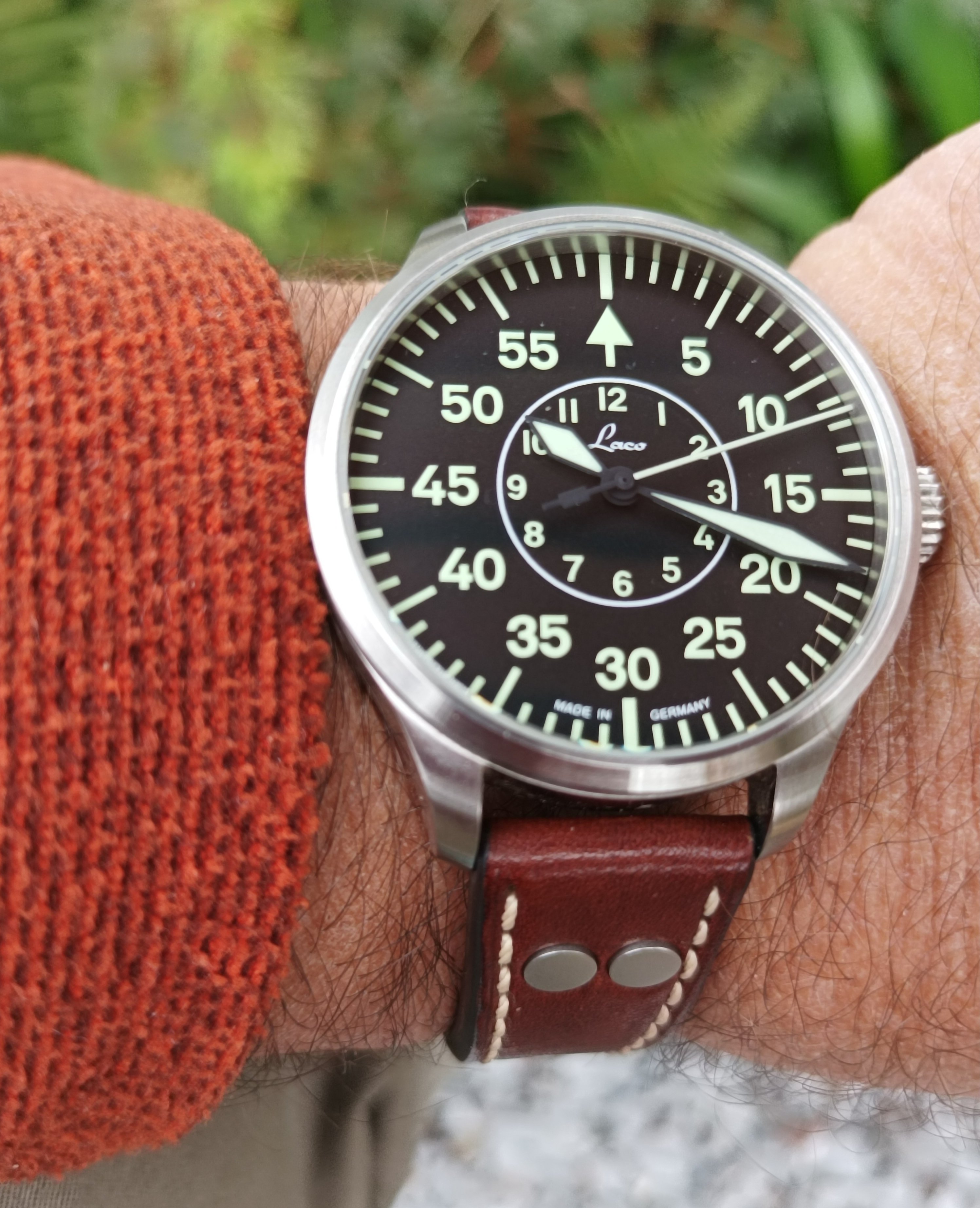 My Laco says Hello. This one is likely from the late 1940s or thereabouts. Lacher & Co. (later Laco) started out with Swiss, movements, but changed to German movements. This one has a German-made Durowe movement in it. You might notice that the movement is marked FOREIGN, rather than Germany. This was in reaction to bitter feelings toward Germany after WWII. Laco were major suppliers to the German military during WWII.